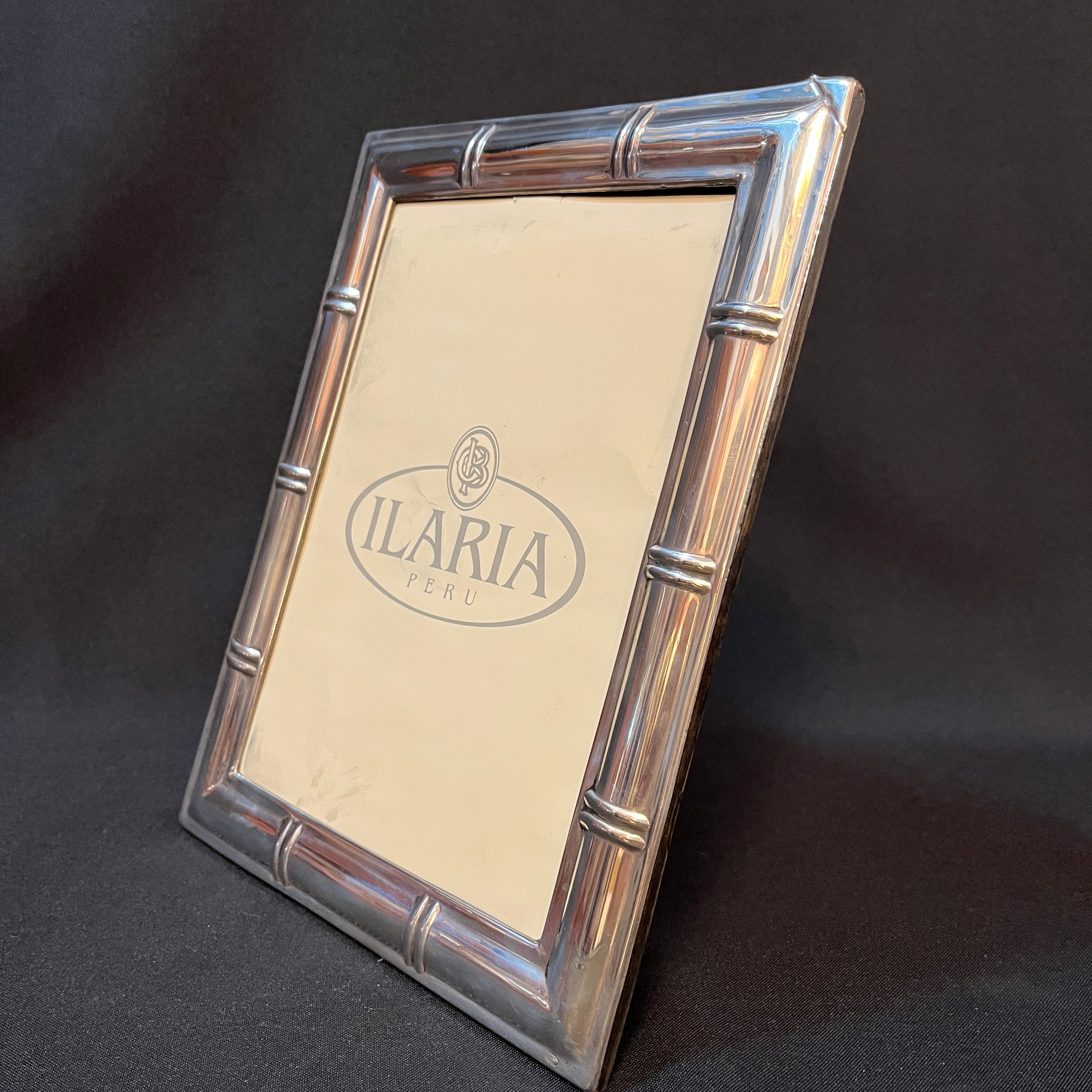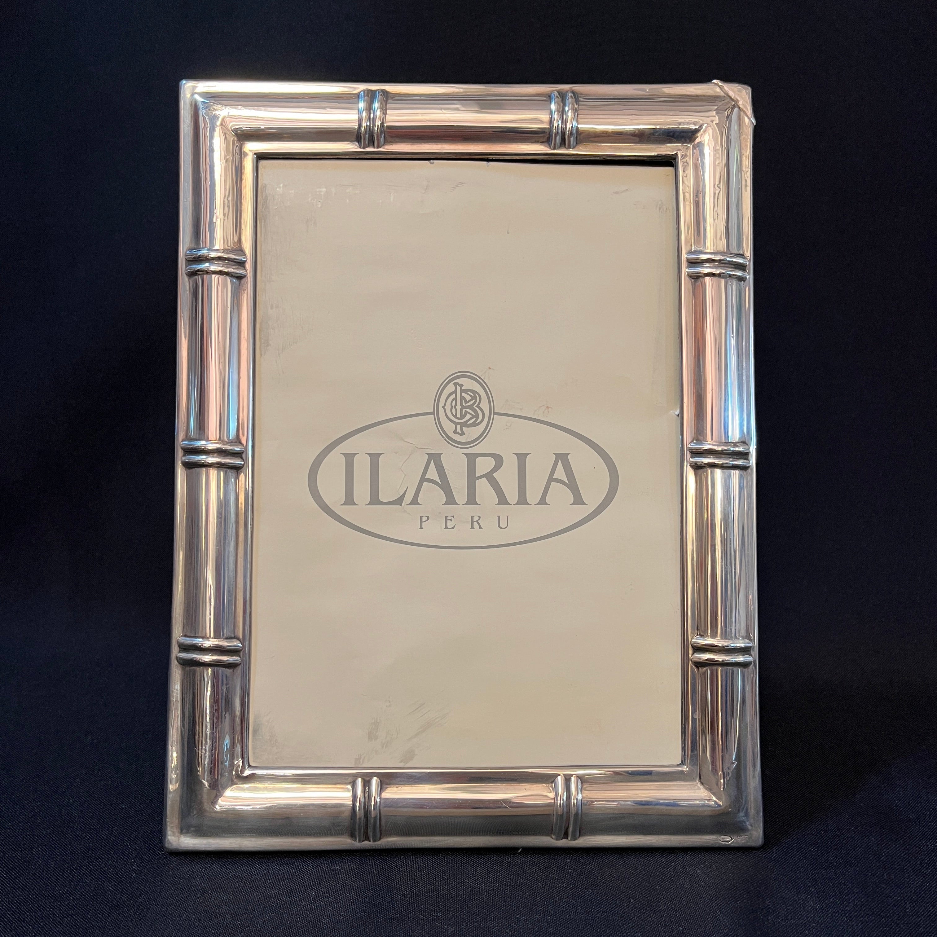 Portarretratos en plata 925 de origen peruano. Este portarretratos es una de las primeras ediciones del famoso 'Modelo Bambú' de la reconocida marca de platería peruana Ilaria Decor. Con un delicado trabajo hecho a mano, imita la forma de un bambú, entregando un toque rústico a la elegancia de la plata. La pieza tiene un pequenño detalle en una de sus esquinas.