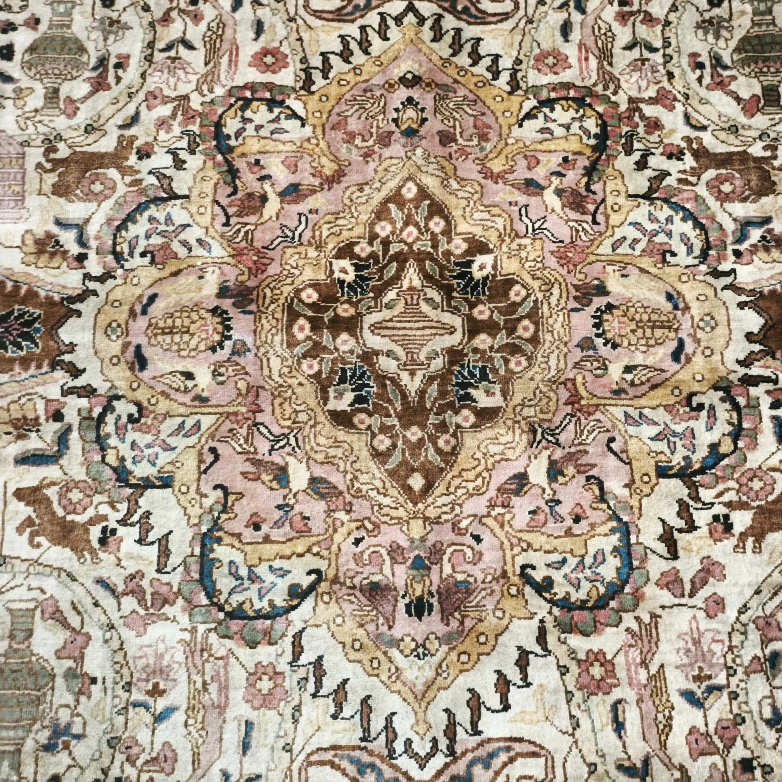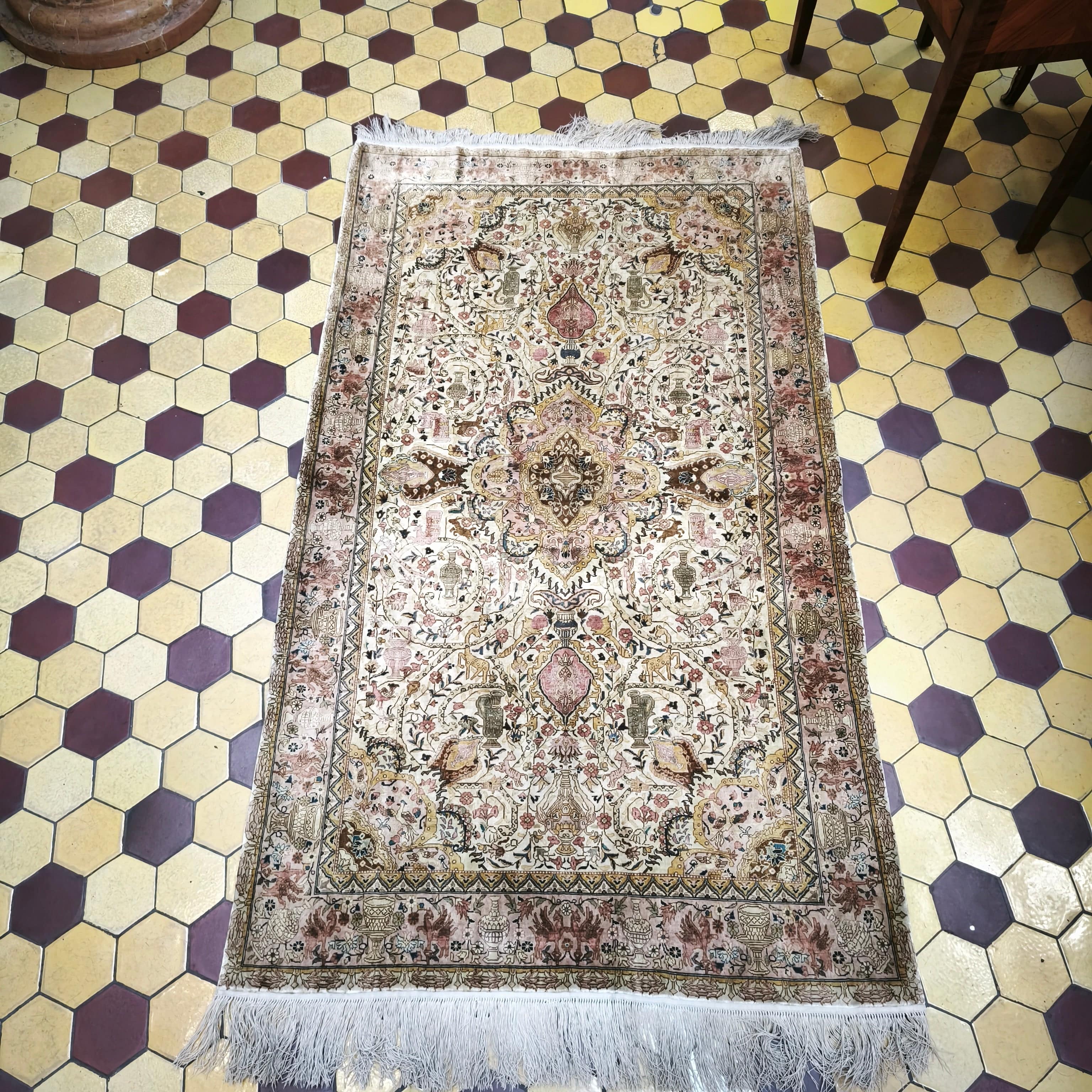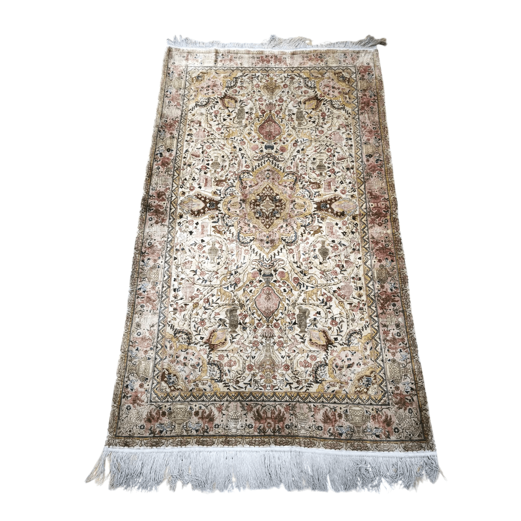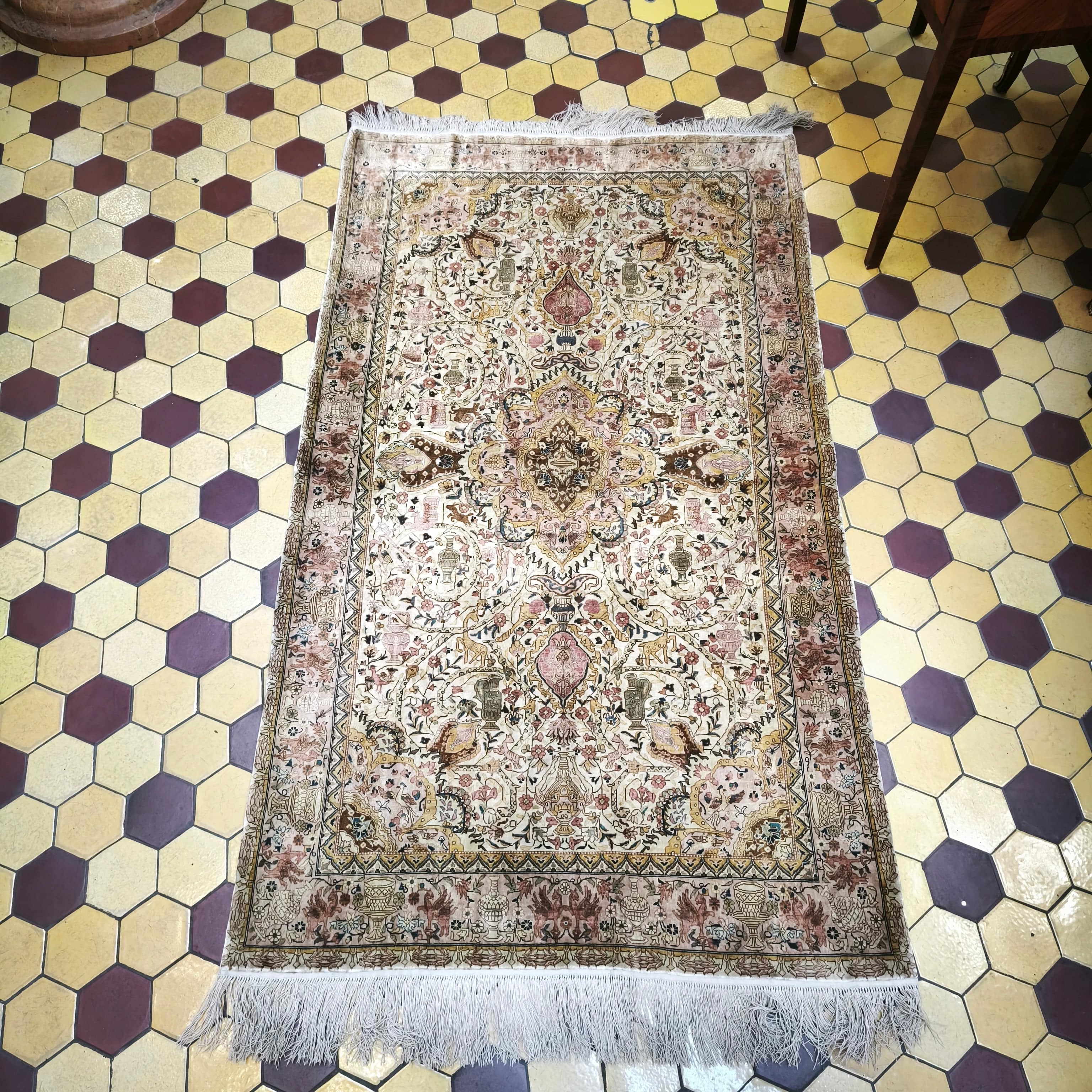 Pakistani silk and wool rug in yellow and pink tones 90x140