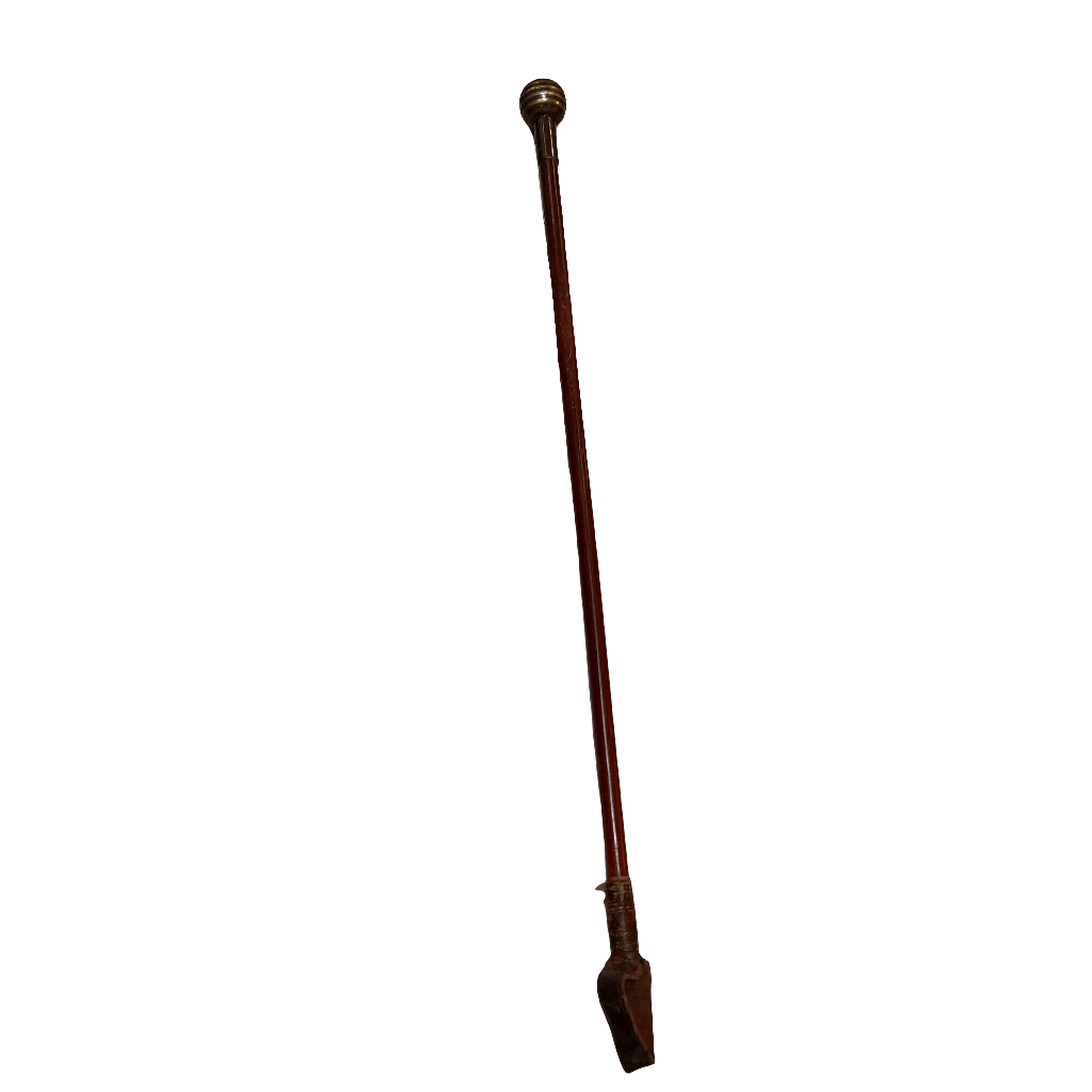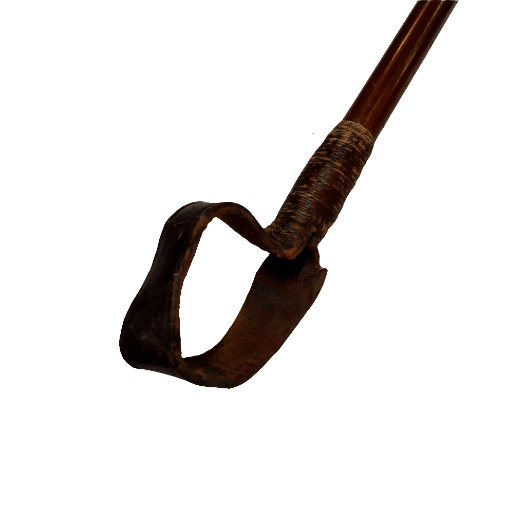 Beautiful riding cane made of malacca wood, with a leather whip and an elegant two-tone bronze handle, with the number 5 inscribed on its top.