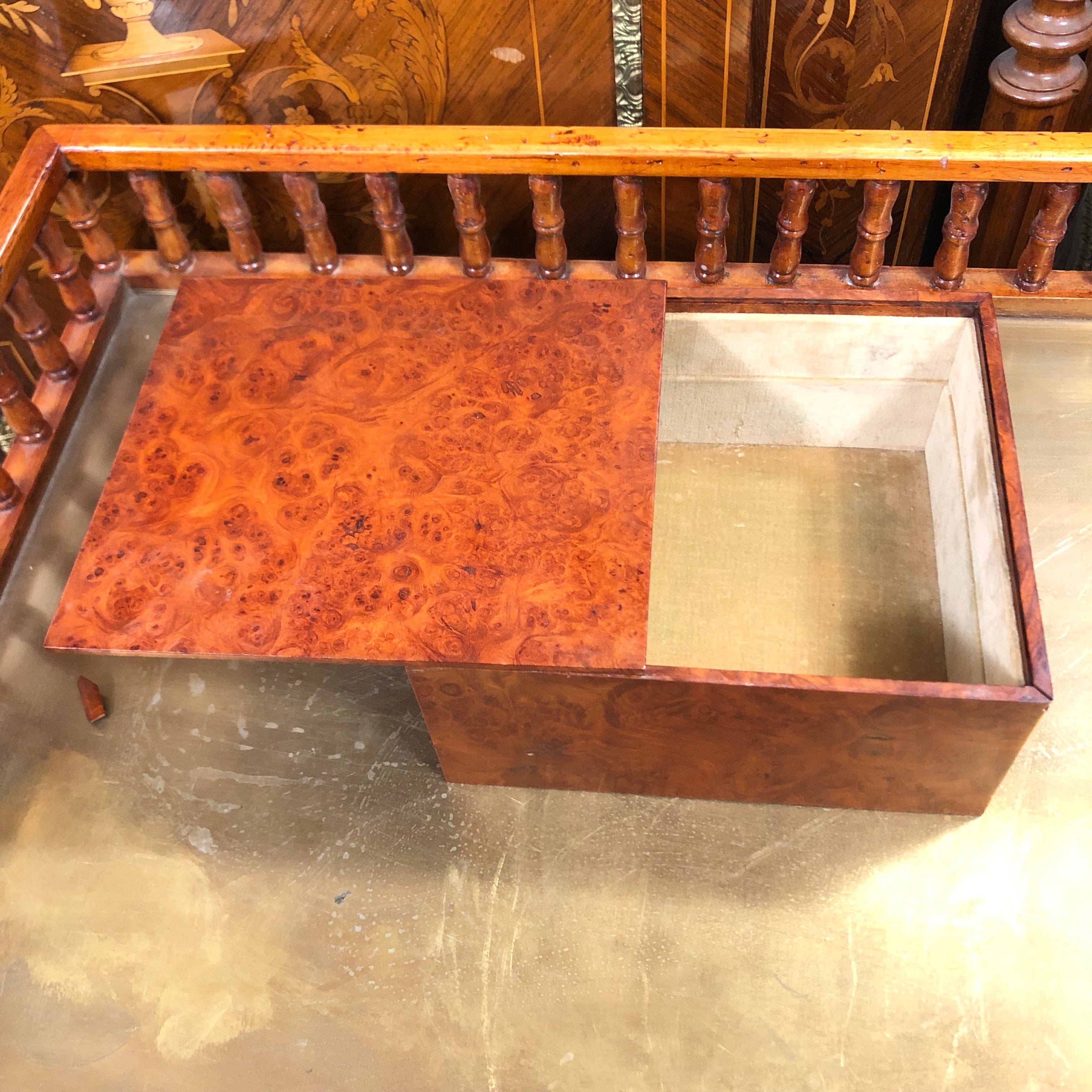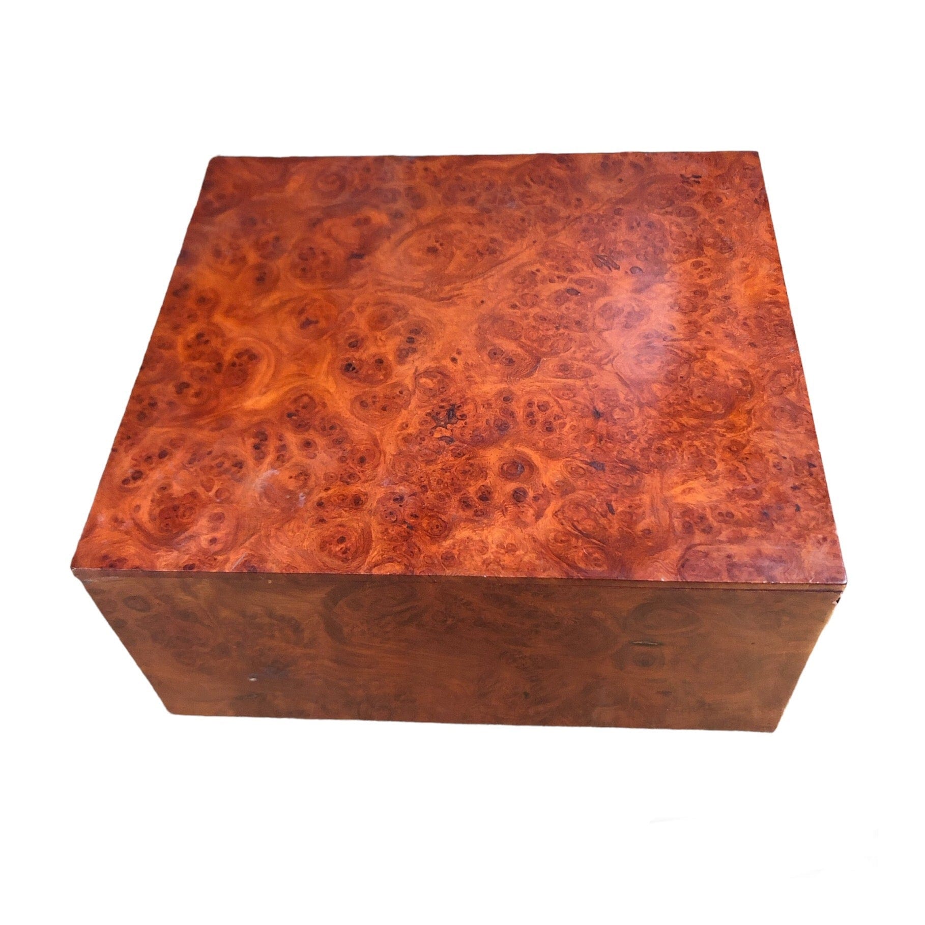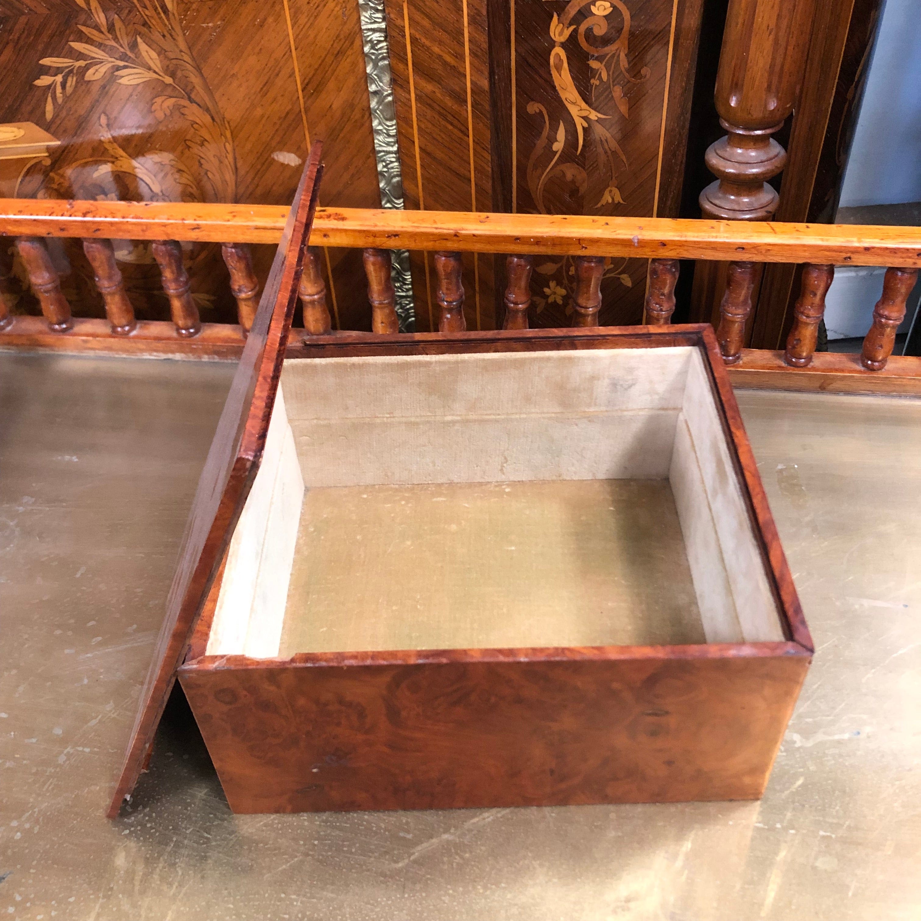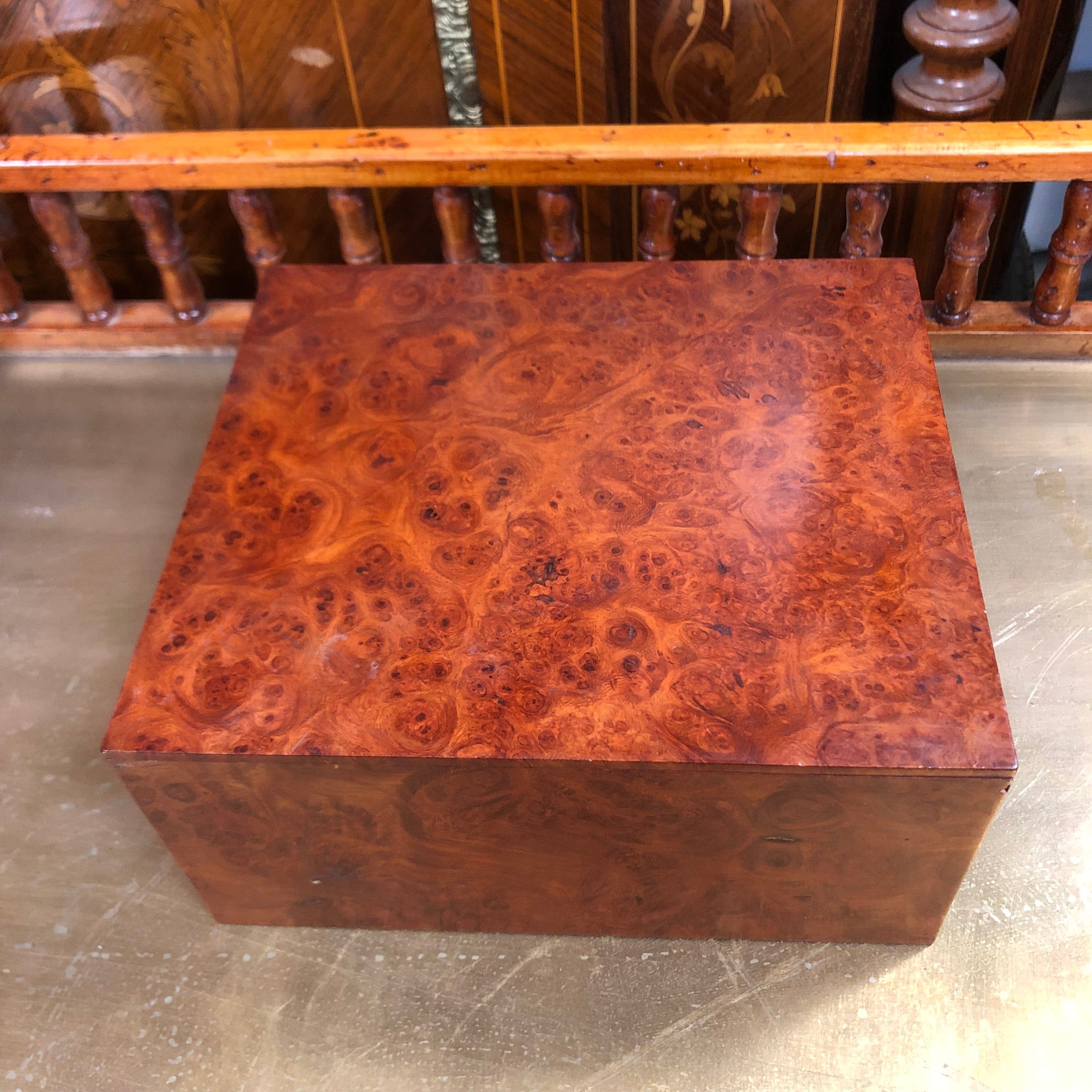 Beautiful walnut burr wood box with sliding lid for storage.