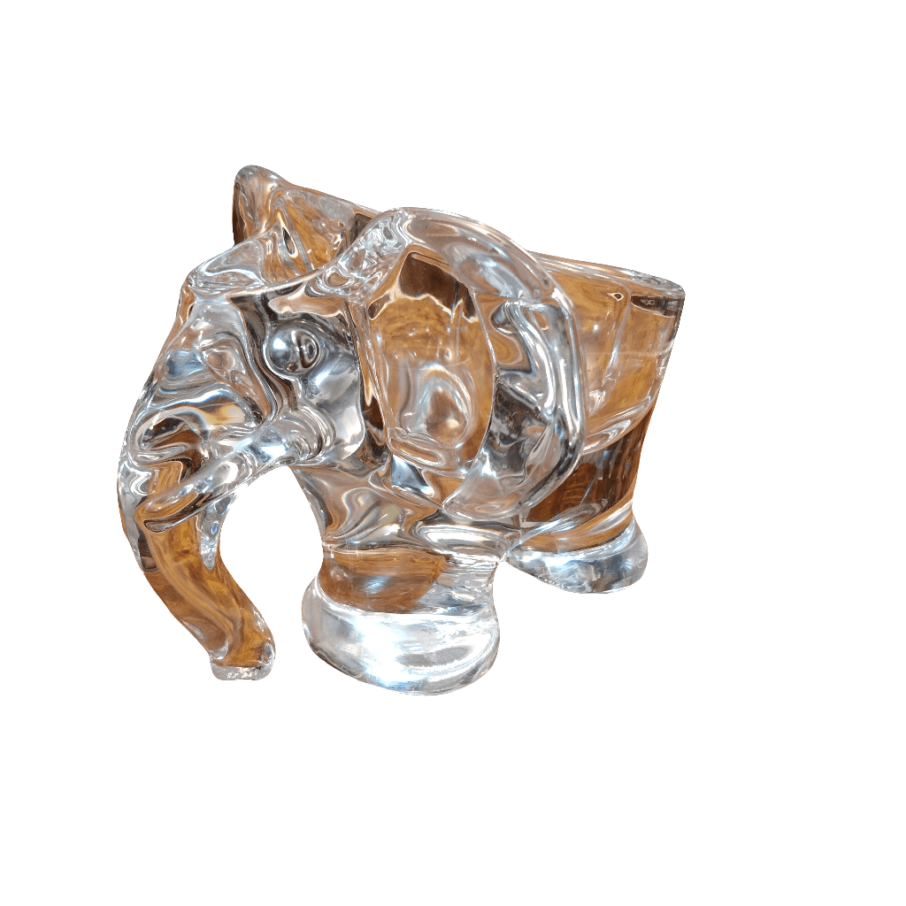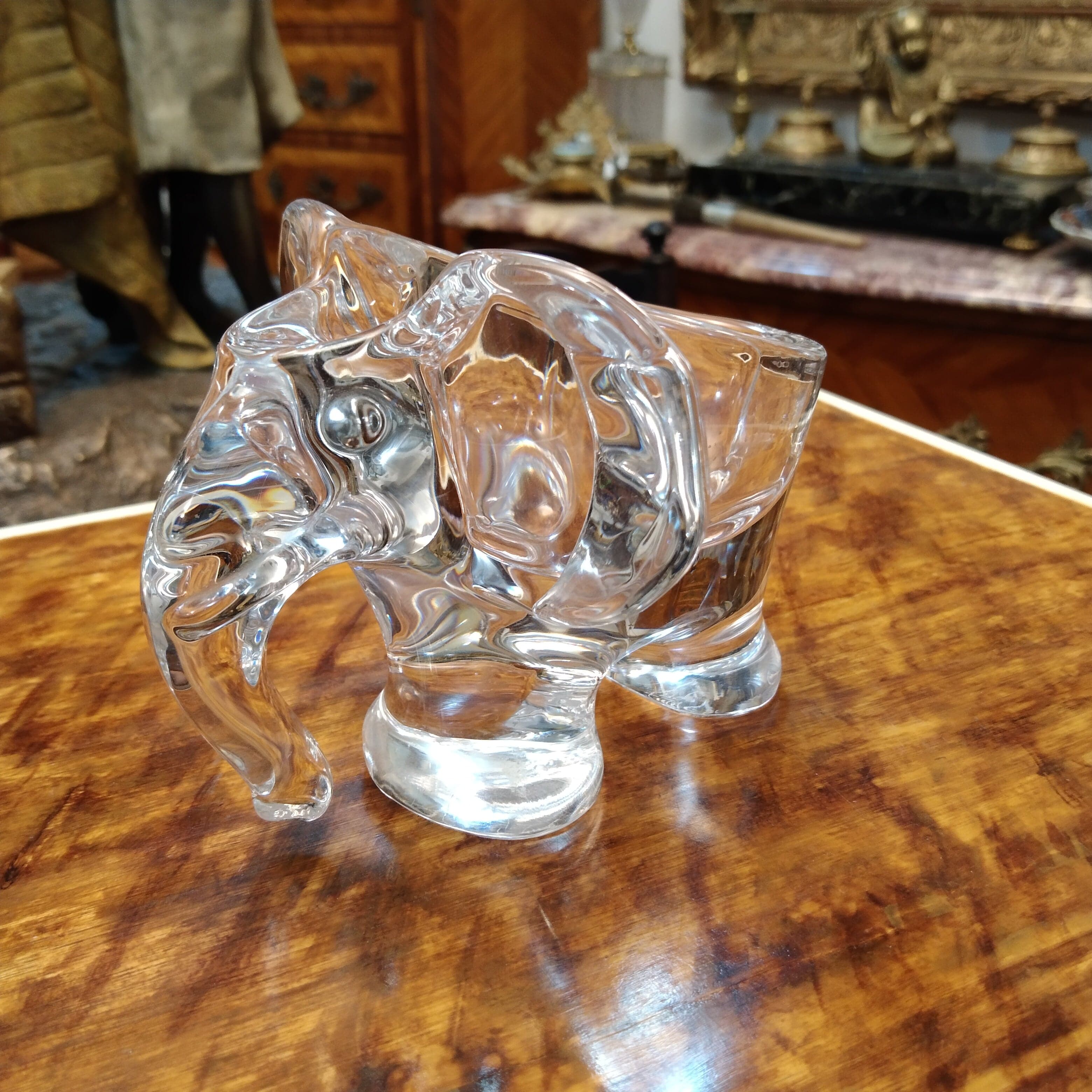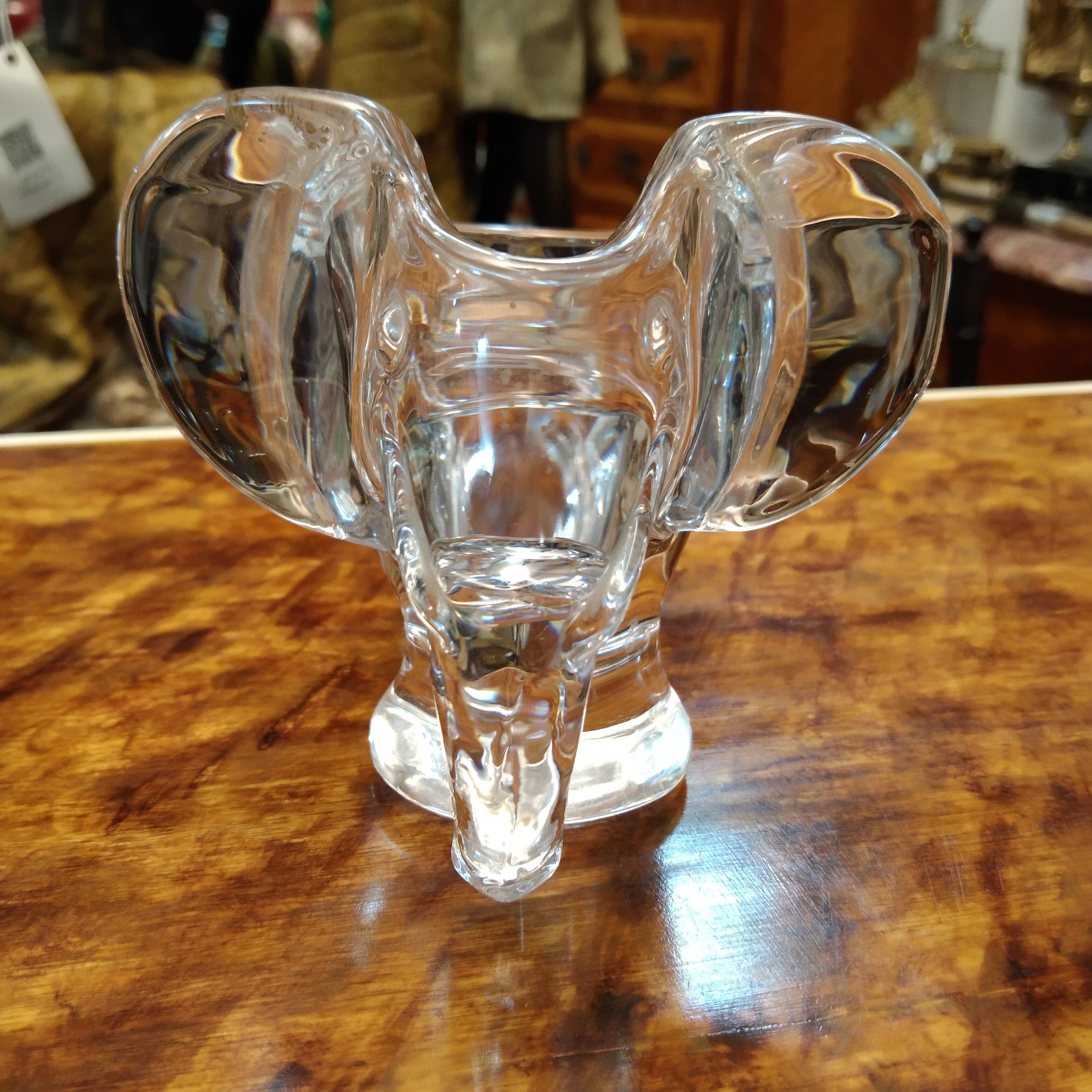 Beautiful small ashtray in the shape of a European crystal elephant, with a space to rest a cigar or cigarette.