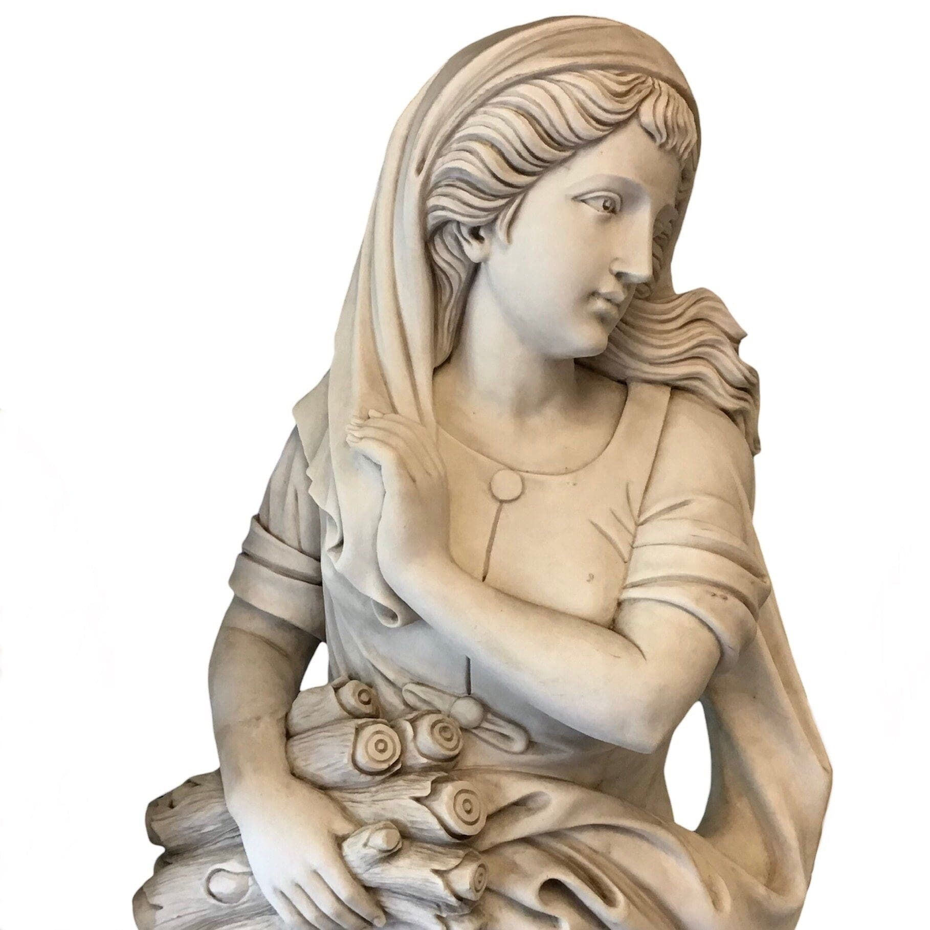 A Greek-inspired marble sculpture. In "The Four Seasons," this piece represents winter, the season in which firewood is gathered to protect us from the cold and maintain the warmth of our homes.
