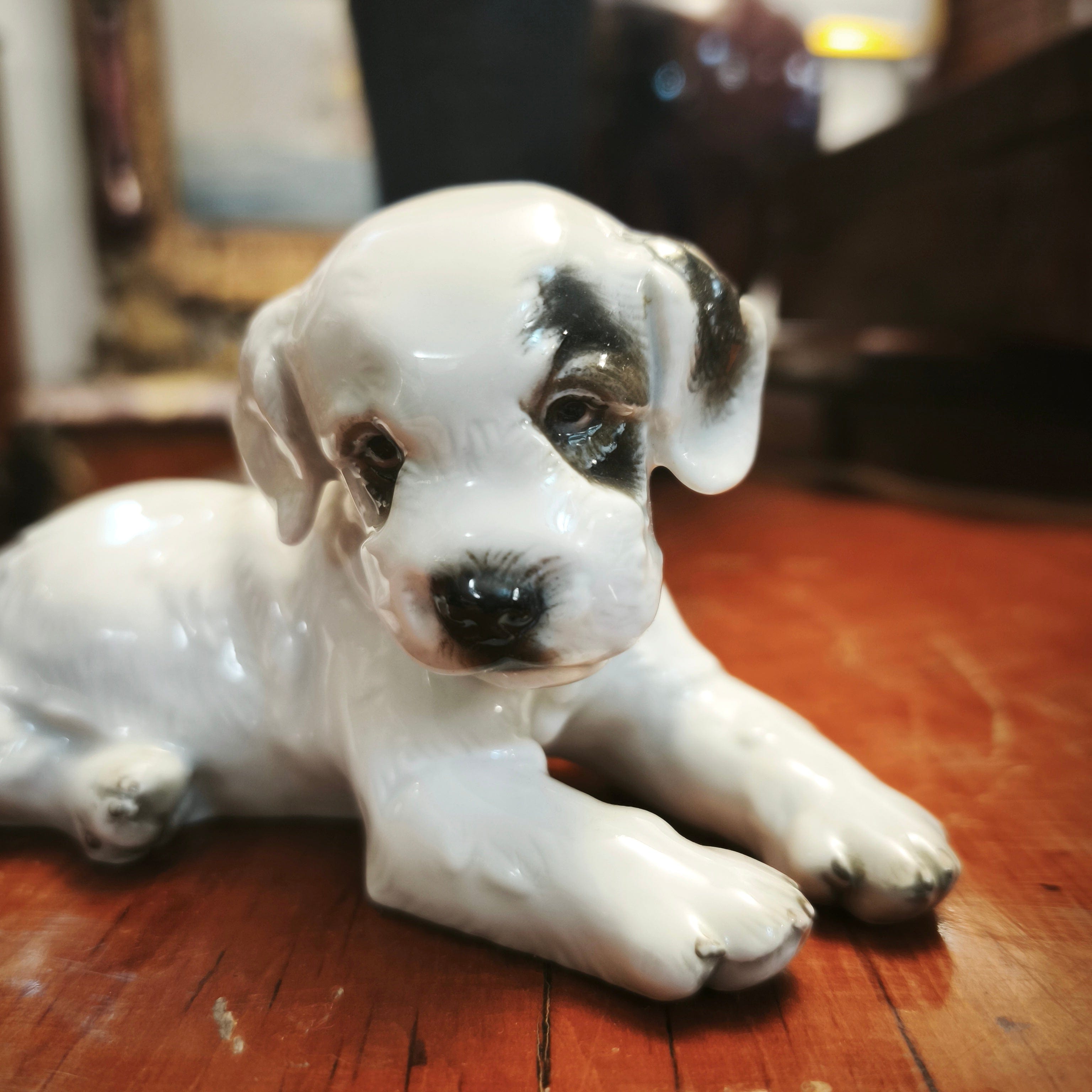 Beautiful porcelain figurine, of German origin, manufactured by the renowned Rosenthal brand. The piece depicts a tender, reclining puppy.