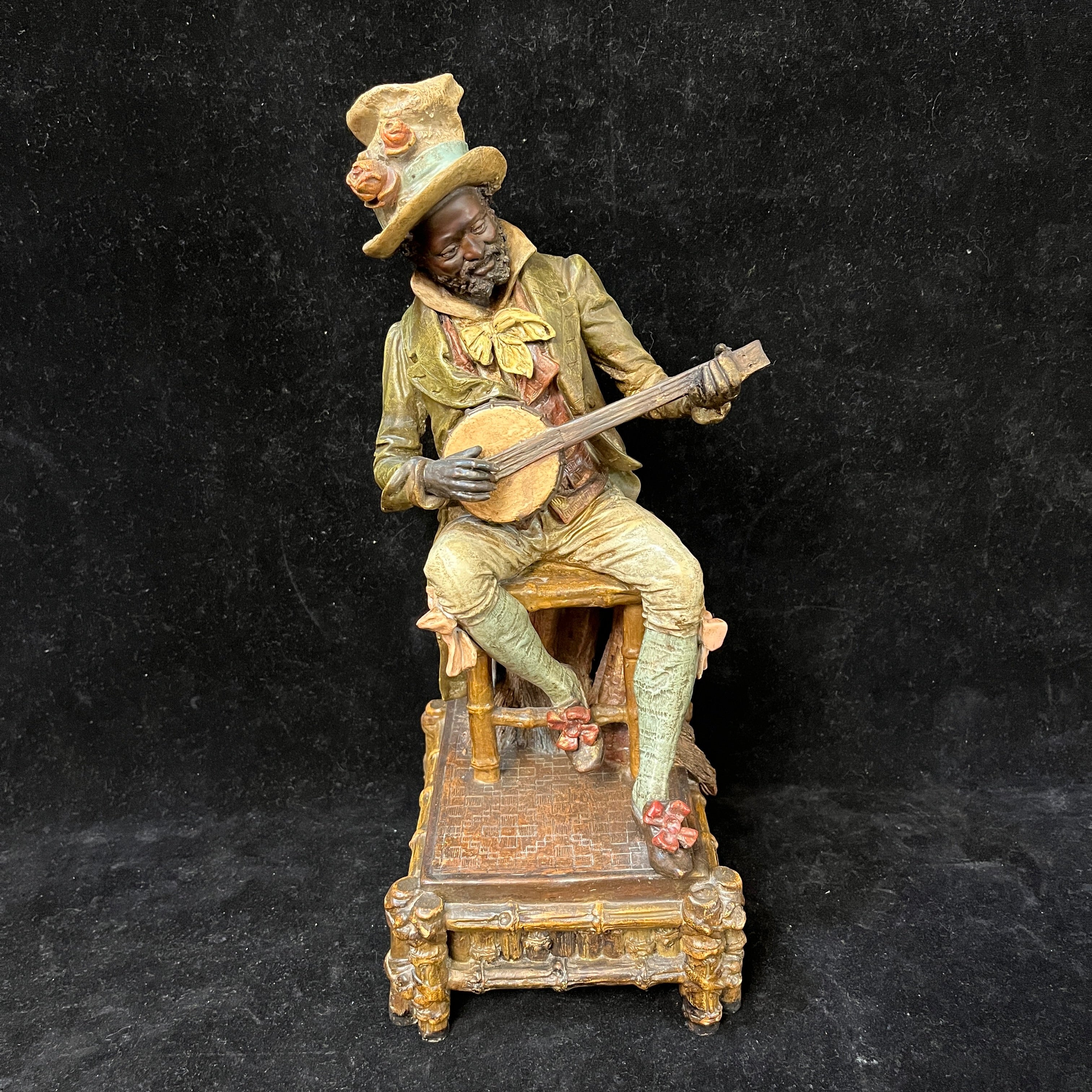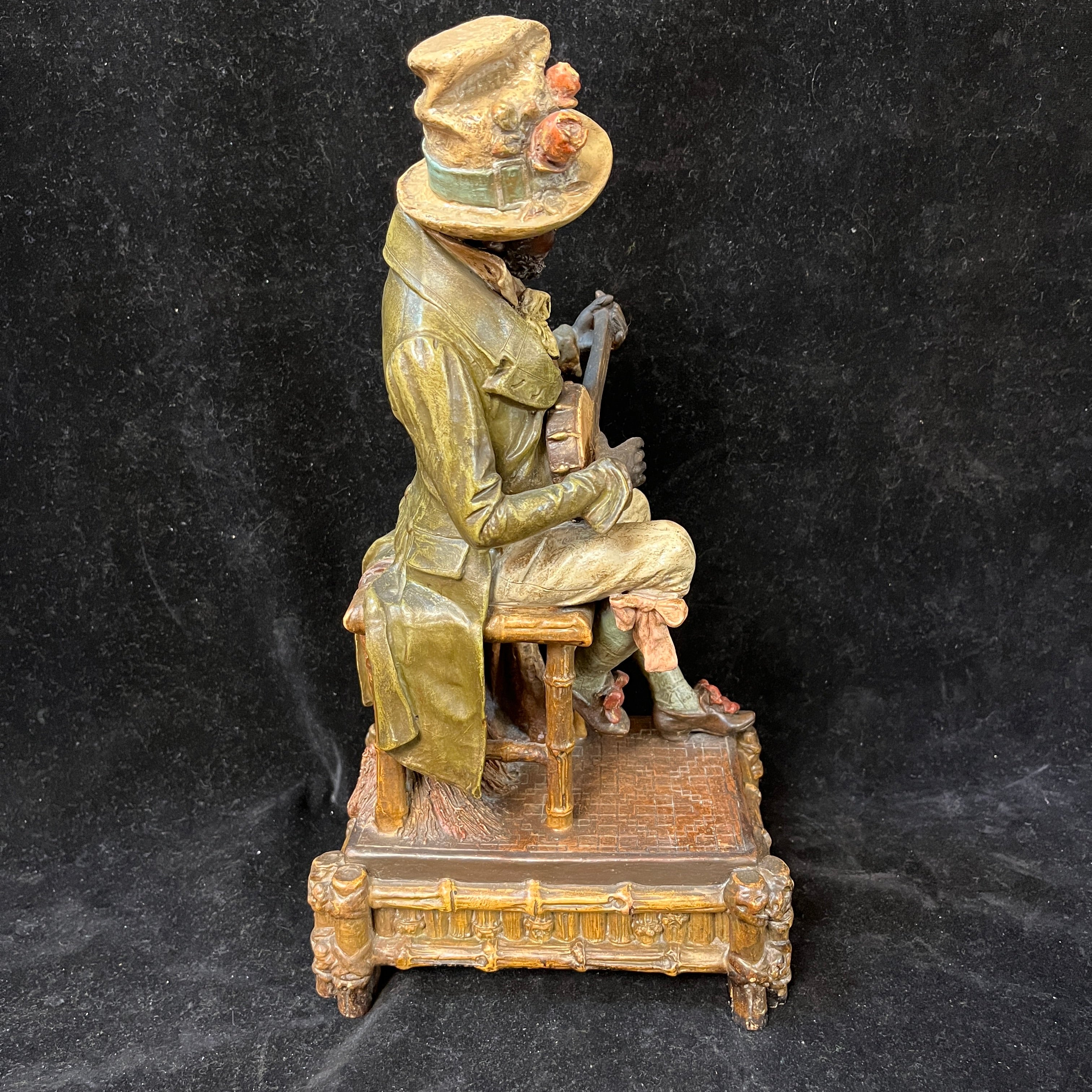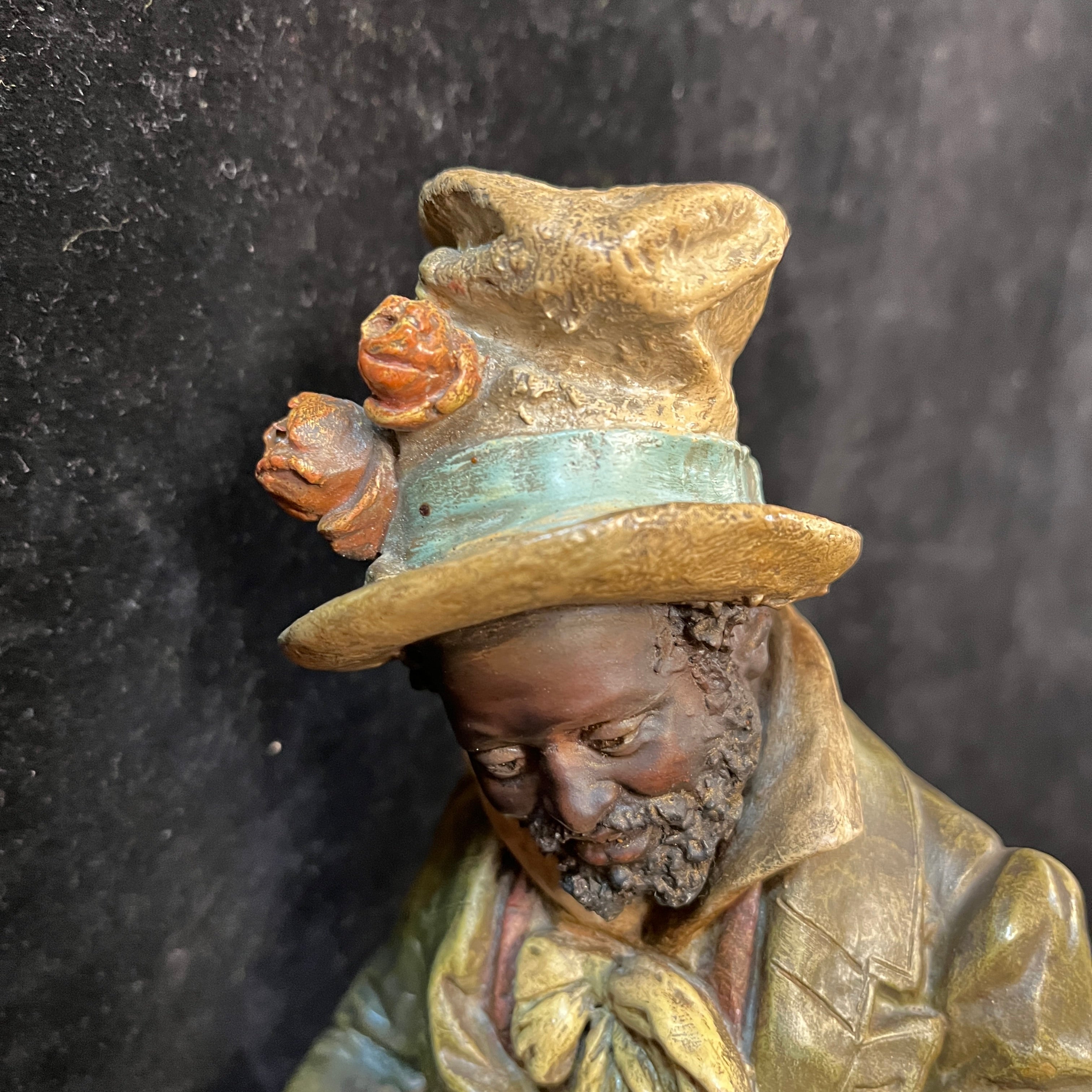 Polychrome patinated terracotta figure. Height: 35.5 cm.