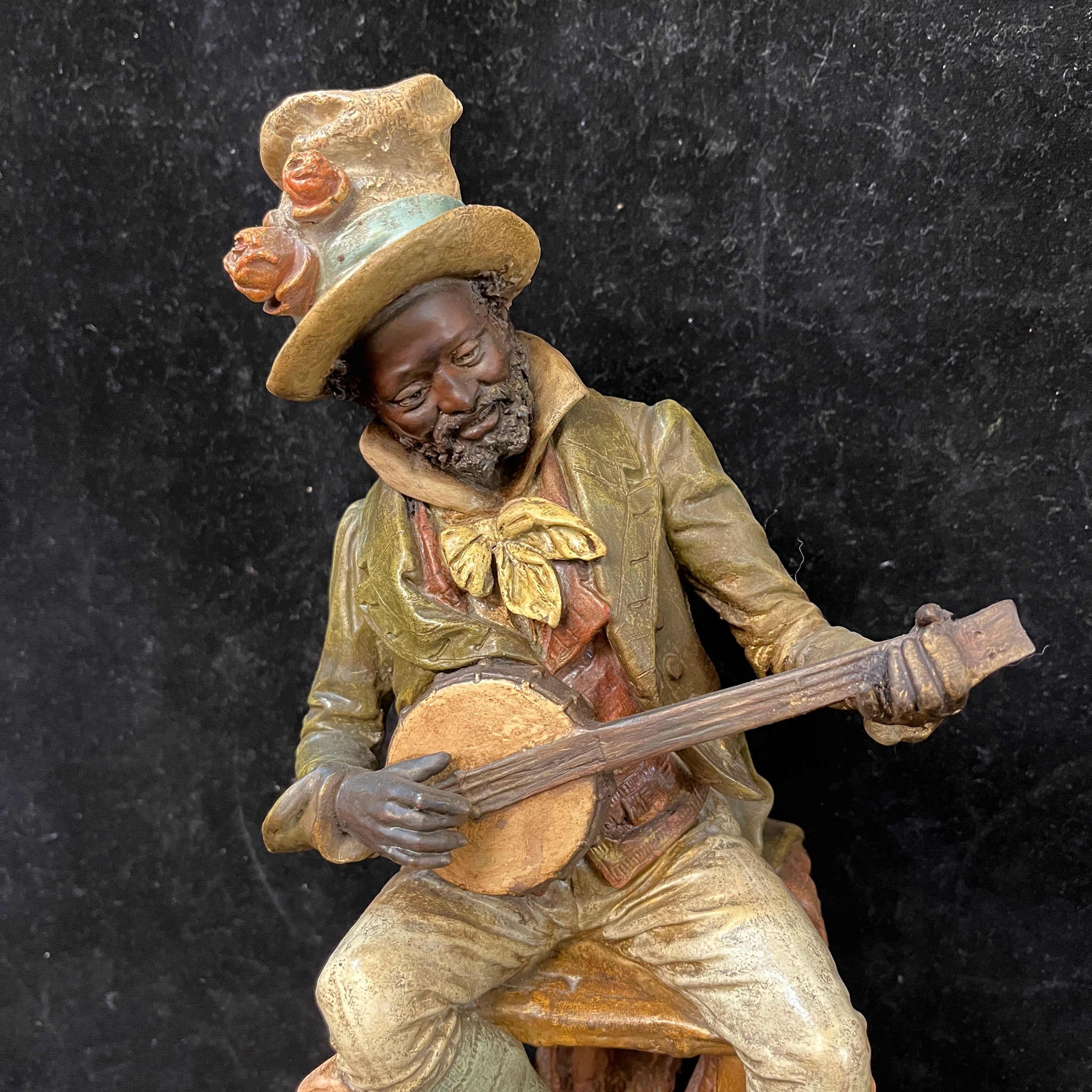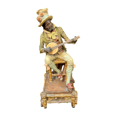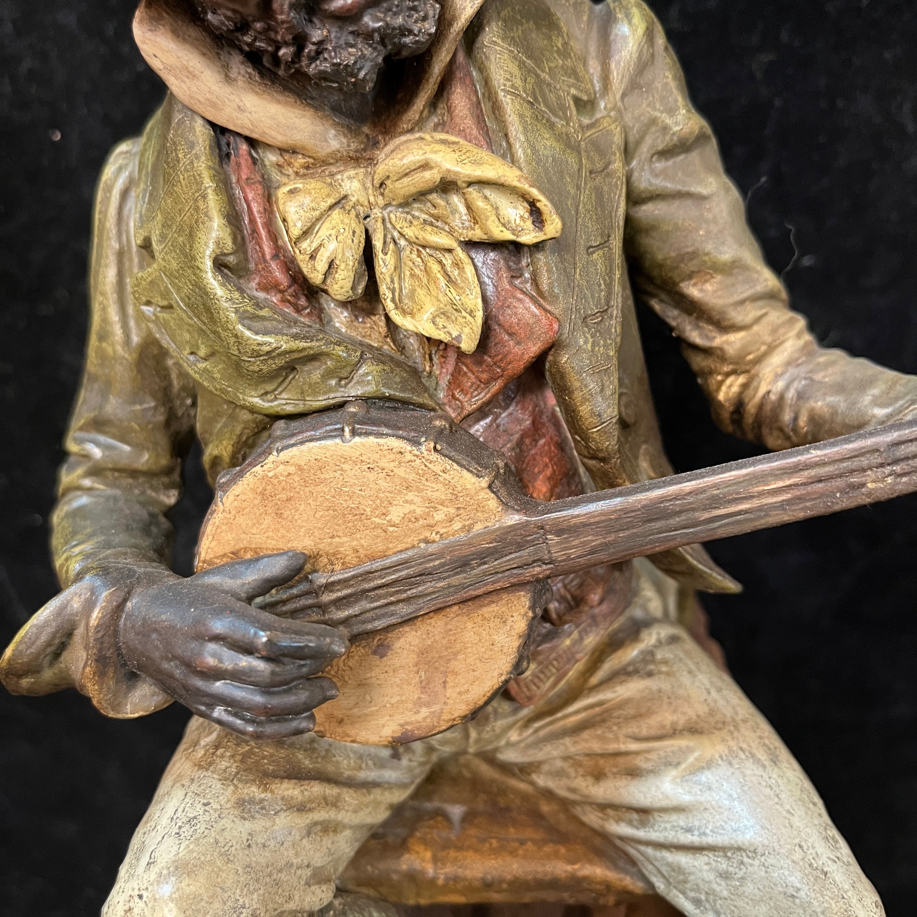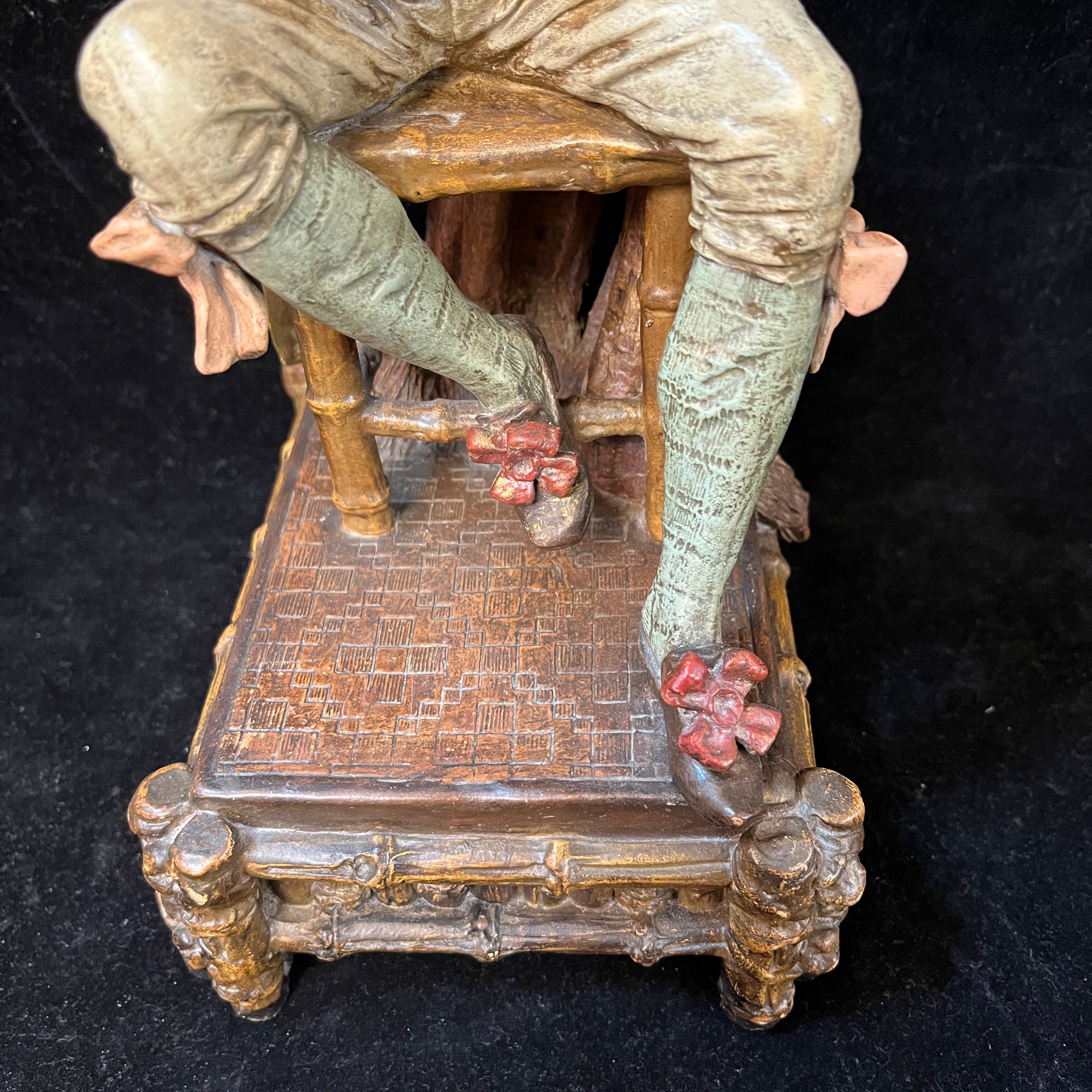 Polychrome patinated terracotta figure. Height: 35.5 cm.
