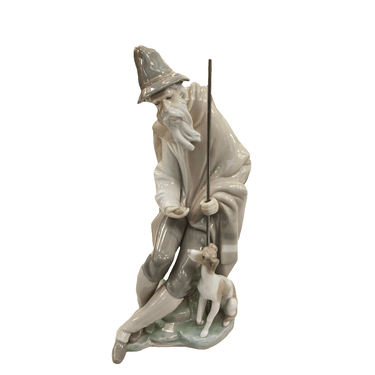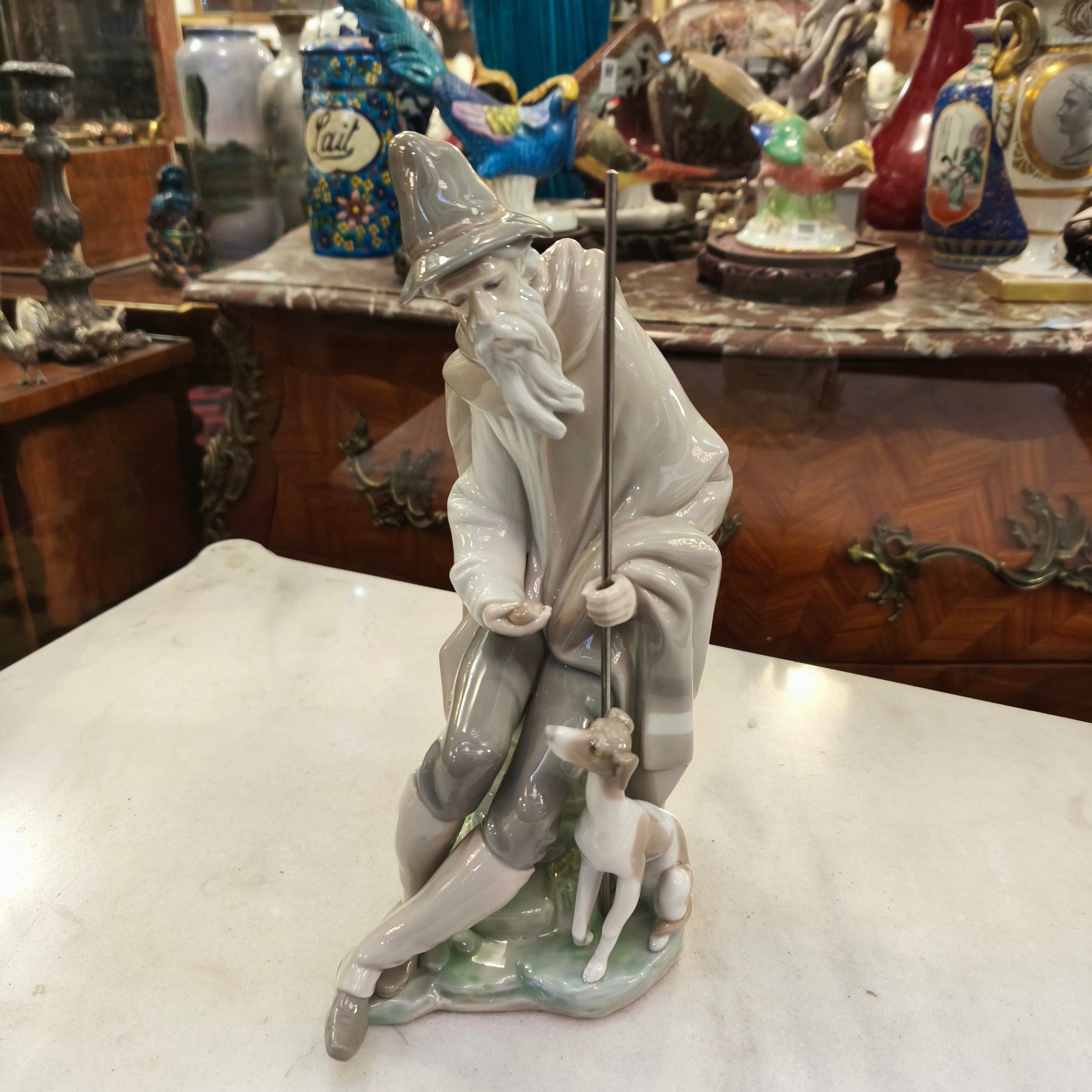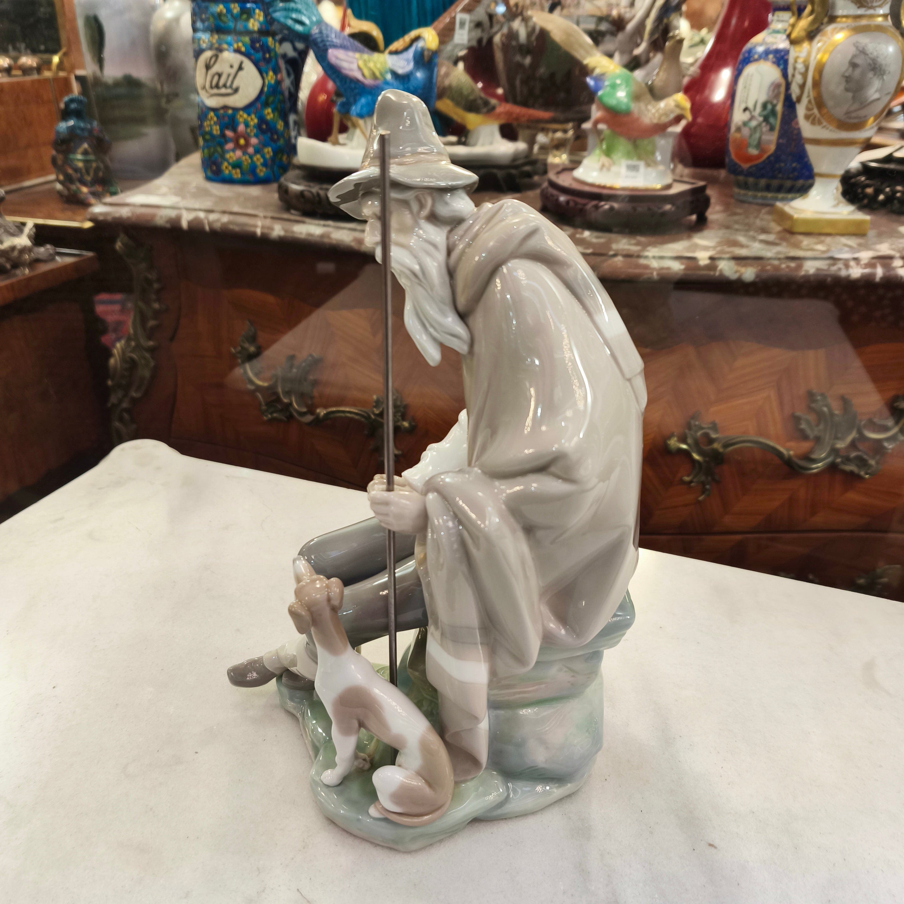 Beautiful porcelain figure from the Spanish brand Lladró, in which we can see an old man sitting next to his dog.
