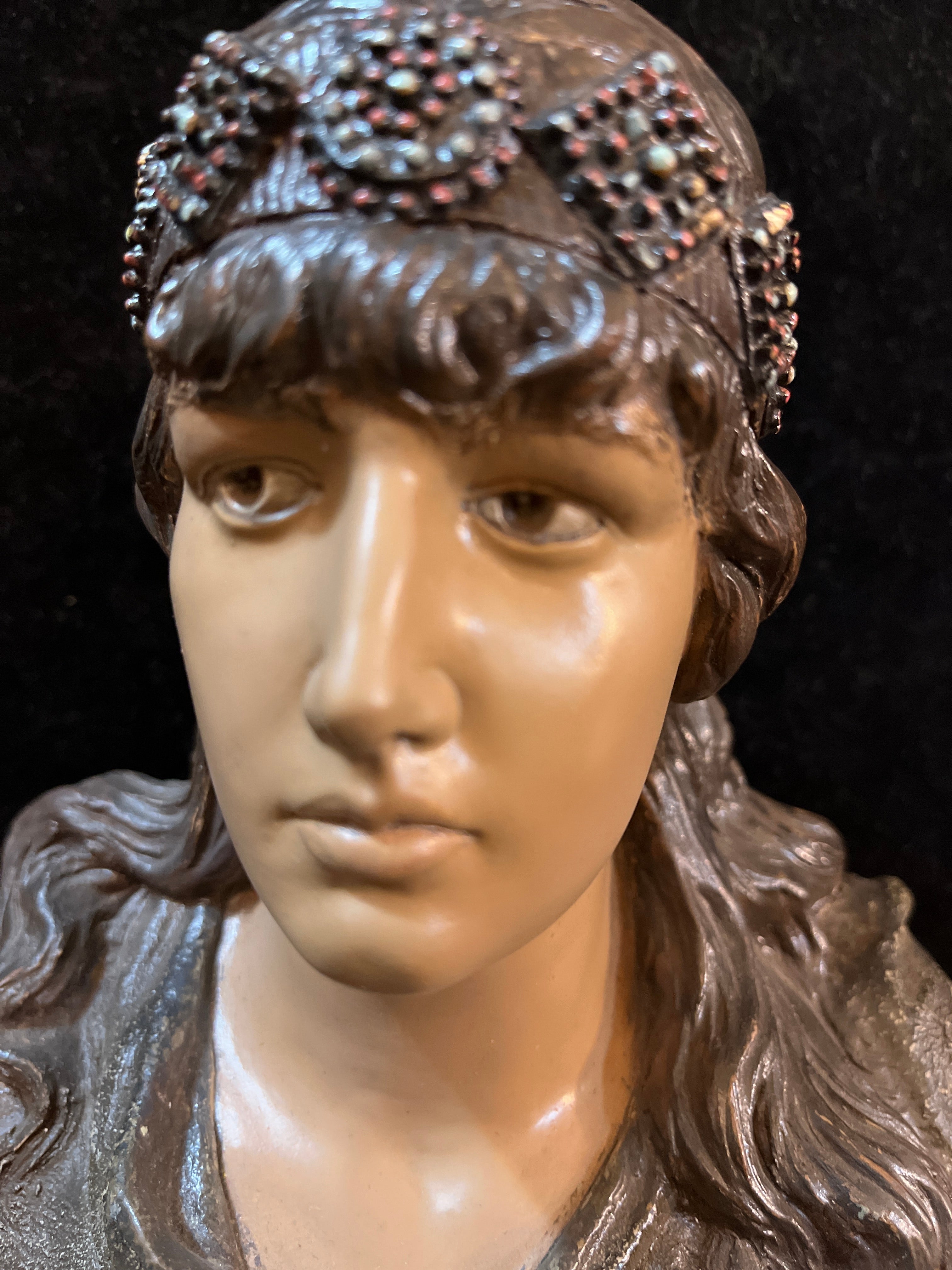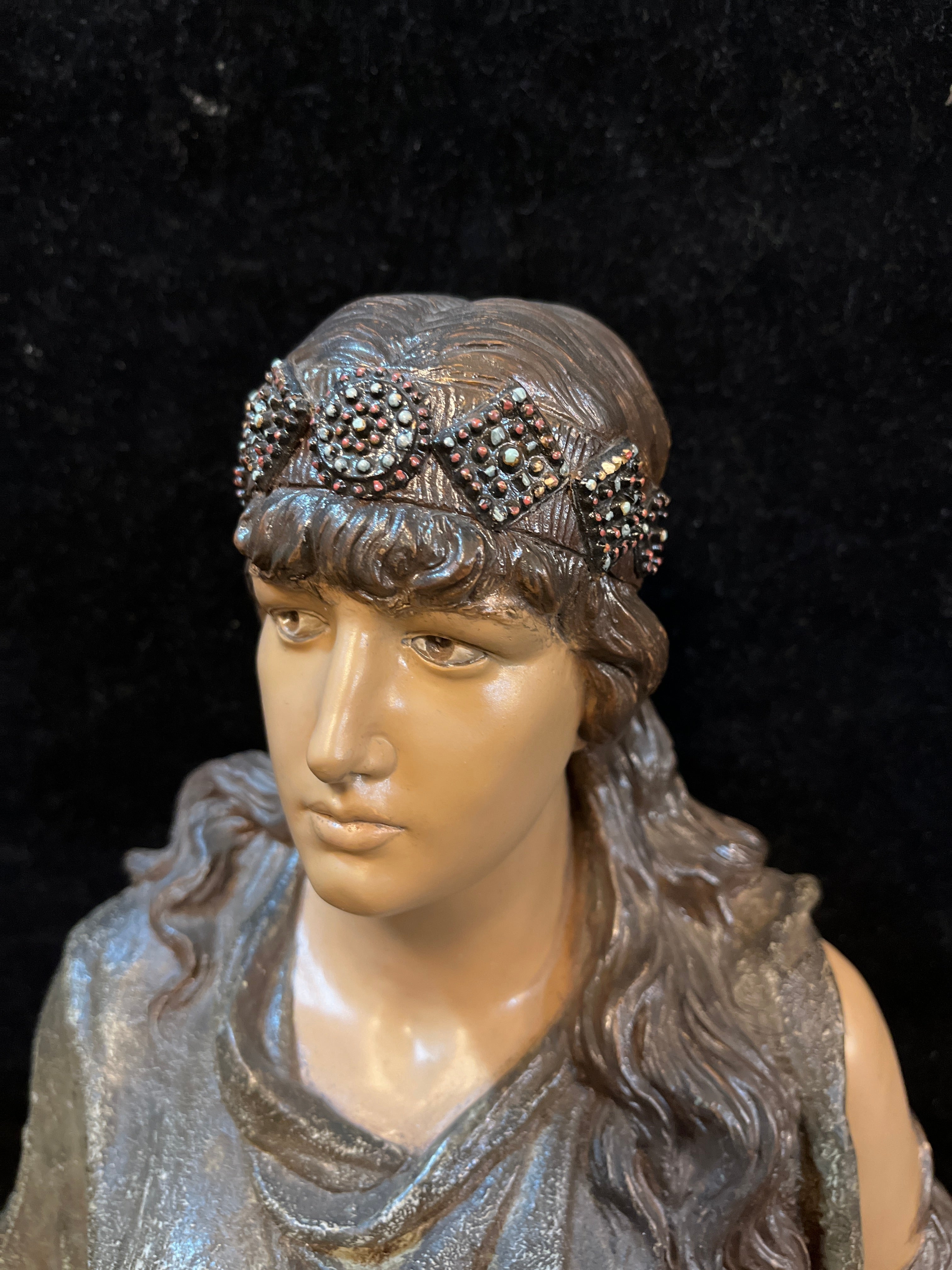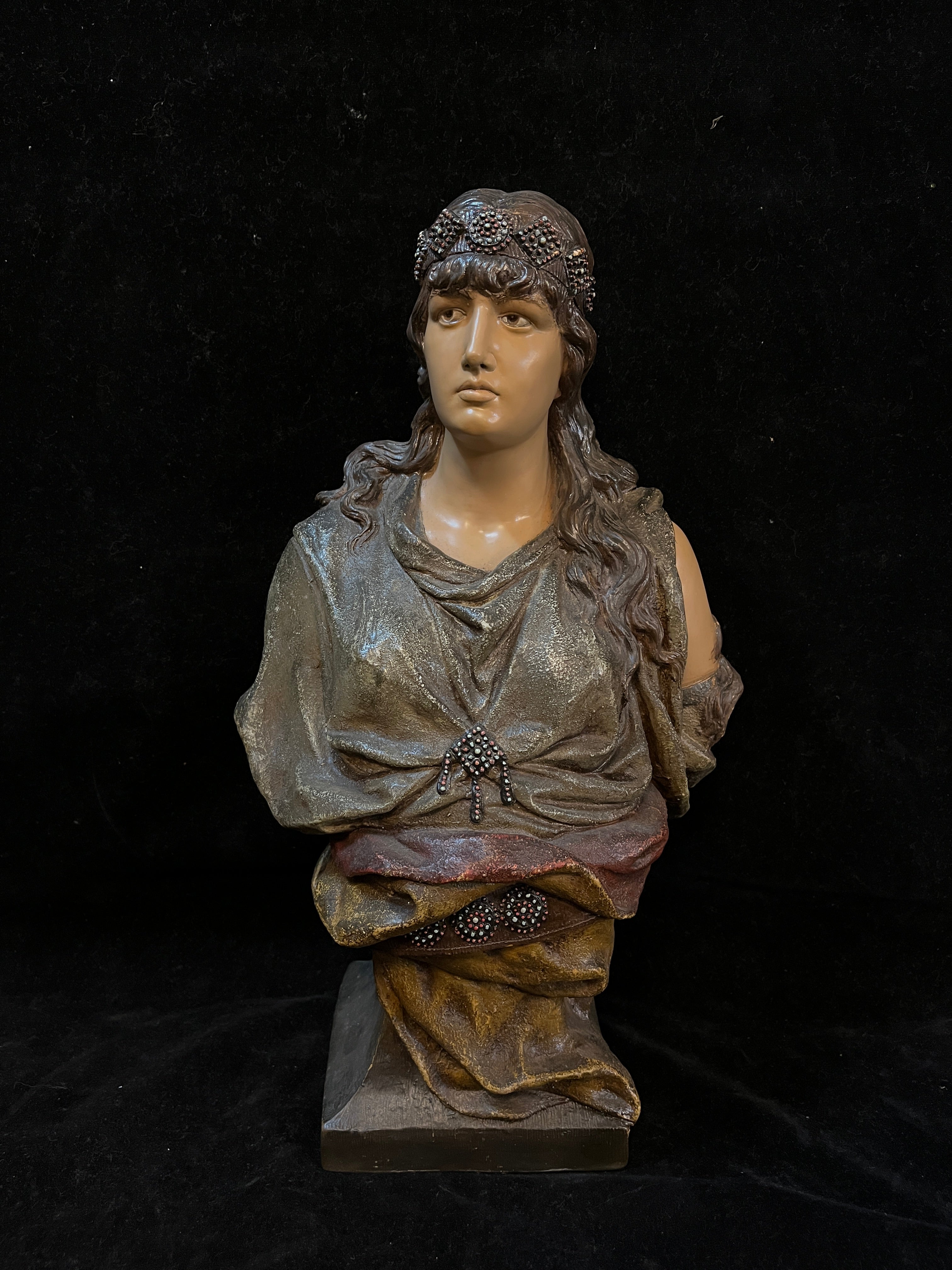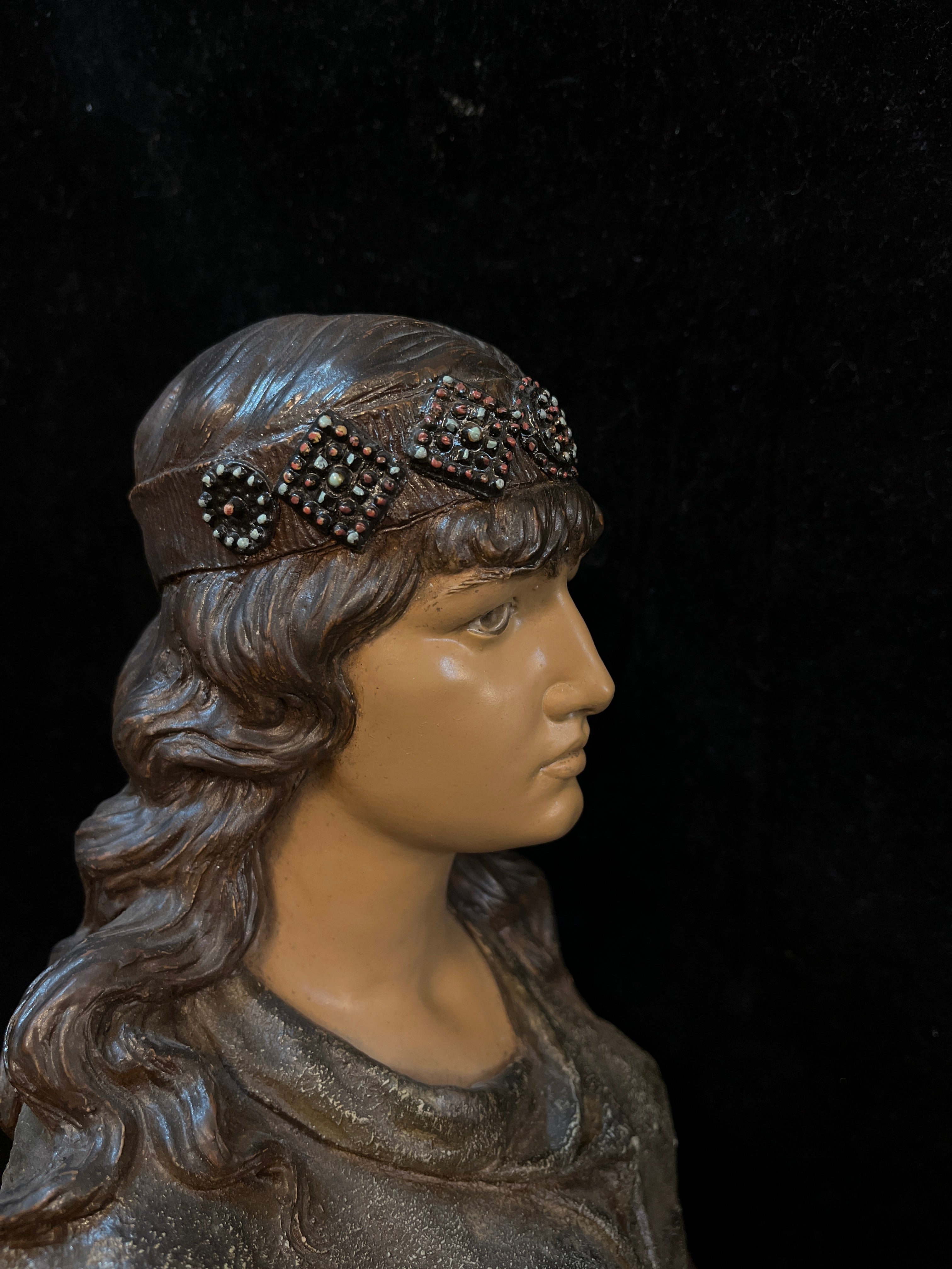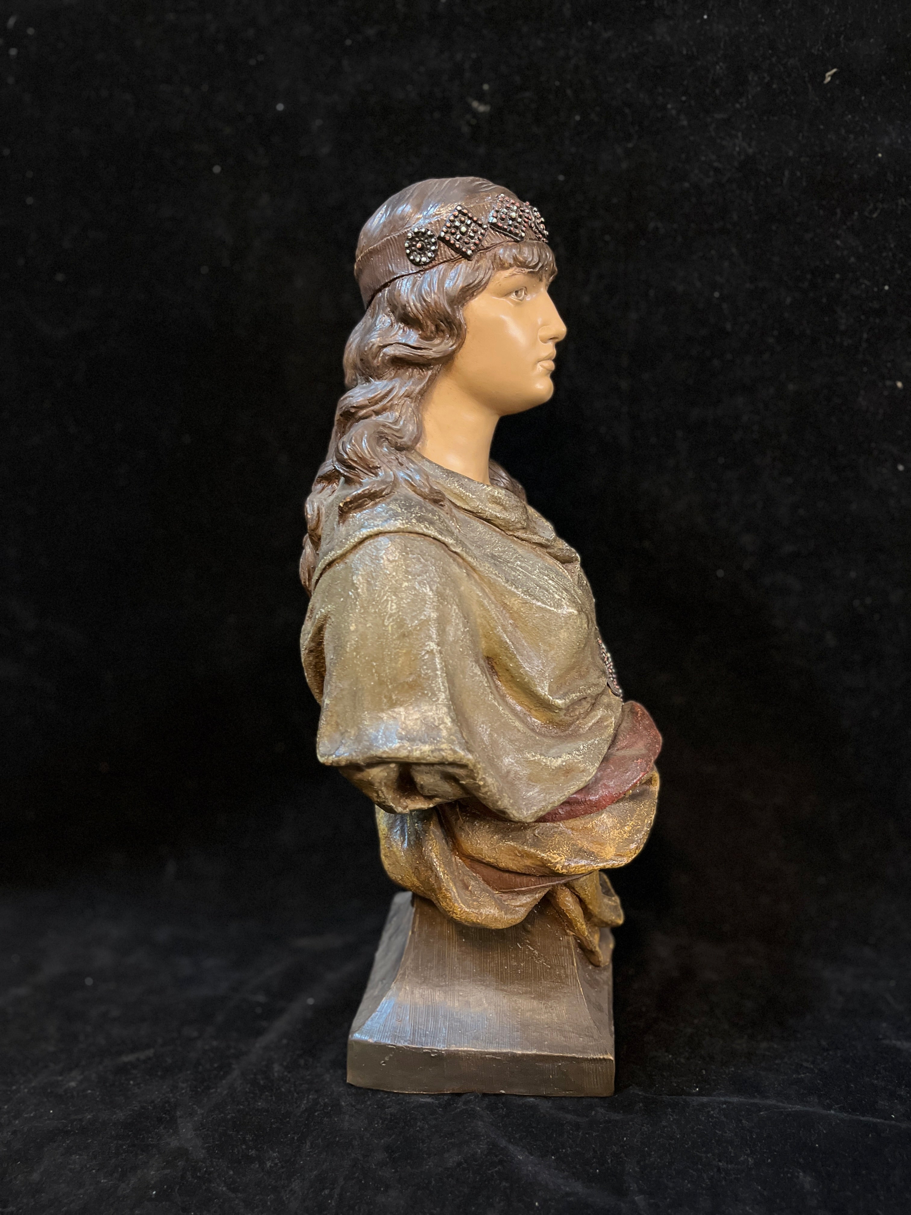 Polychrome patinated terracotta figure. Height: 40 cm.