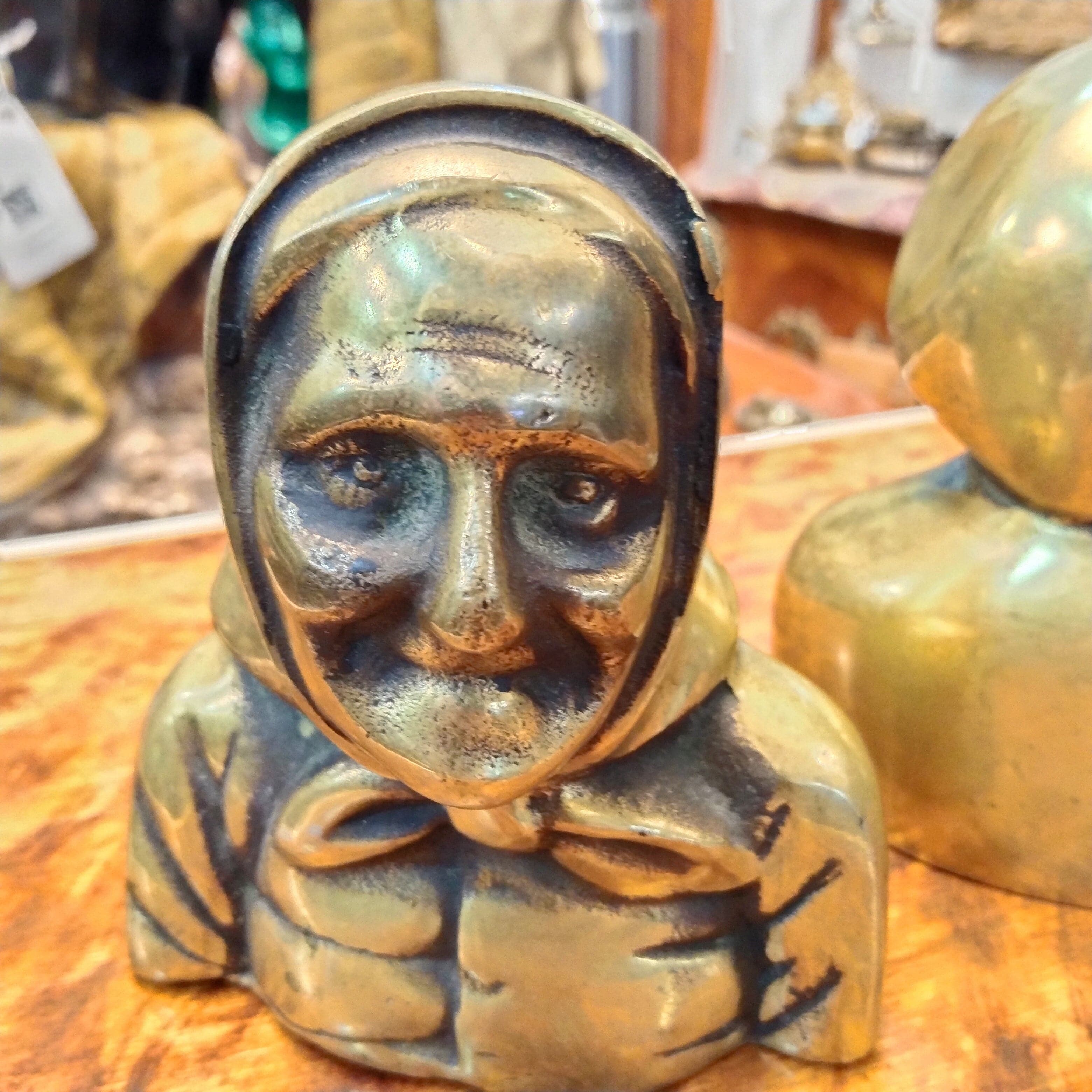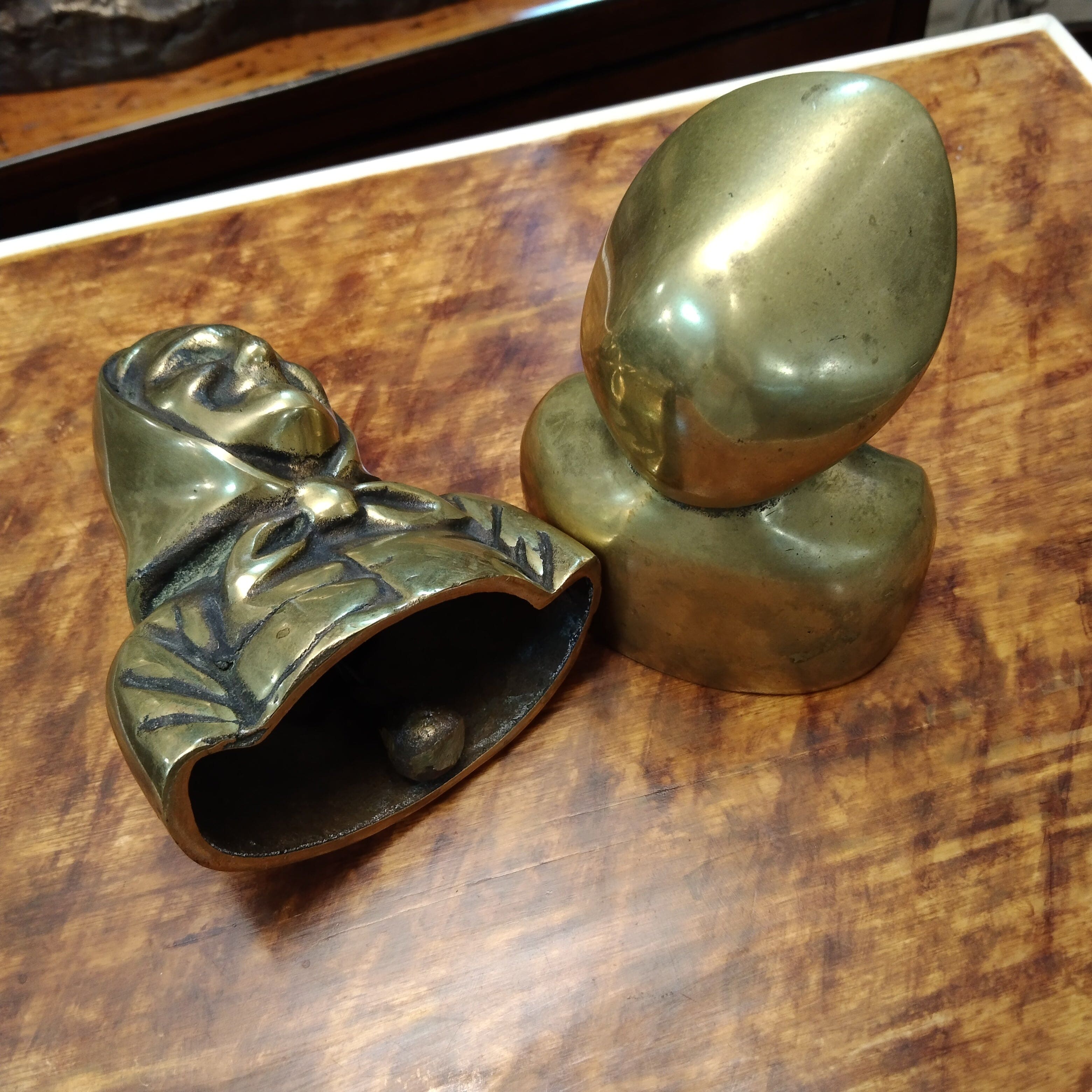 Beautiful set of bronze bells, of French origin, in the shape of two old men in peasant attire.