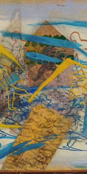 Technique: Acrylic, collage on fabric.