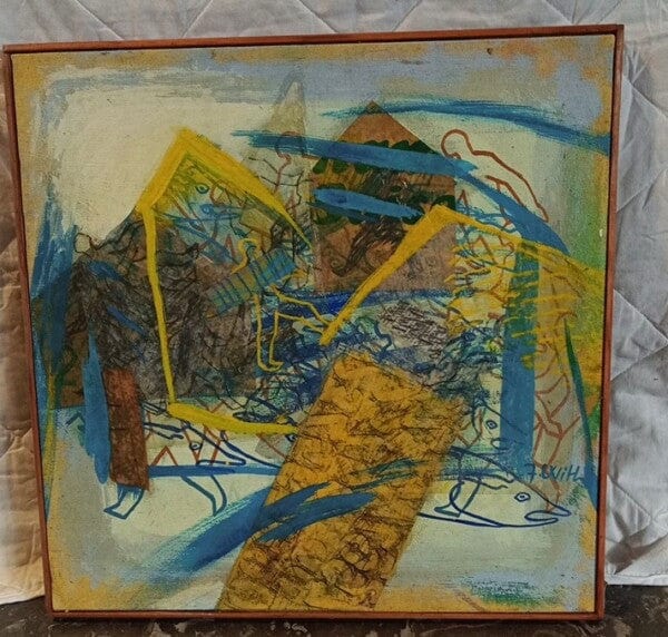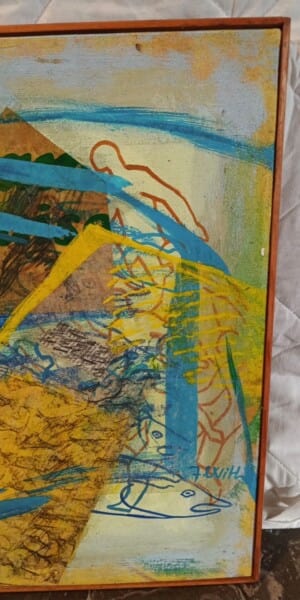 Acrylic and collage on canvas by Litte With.