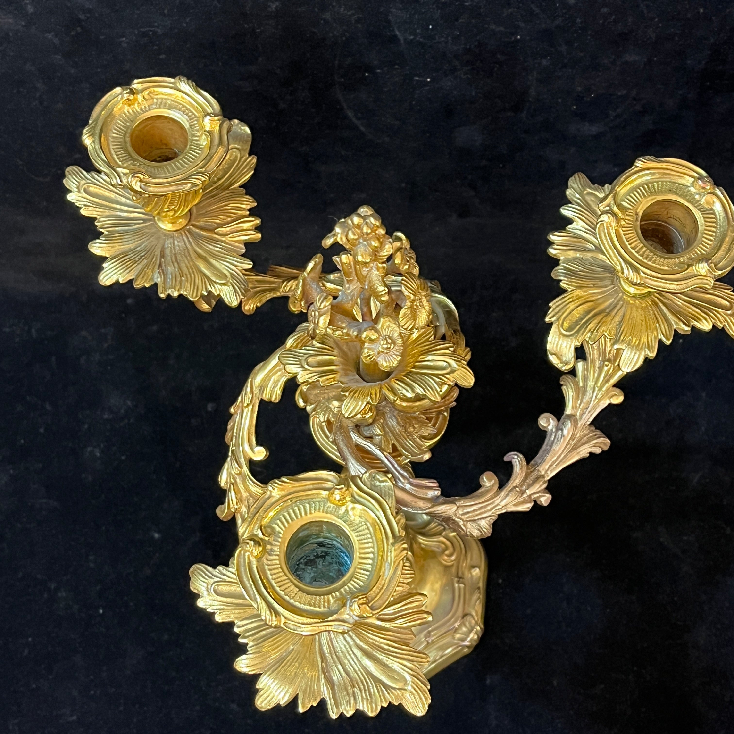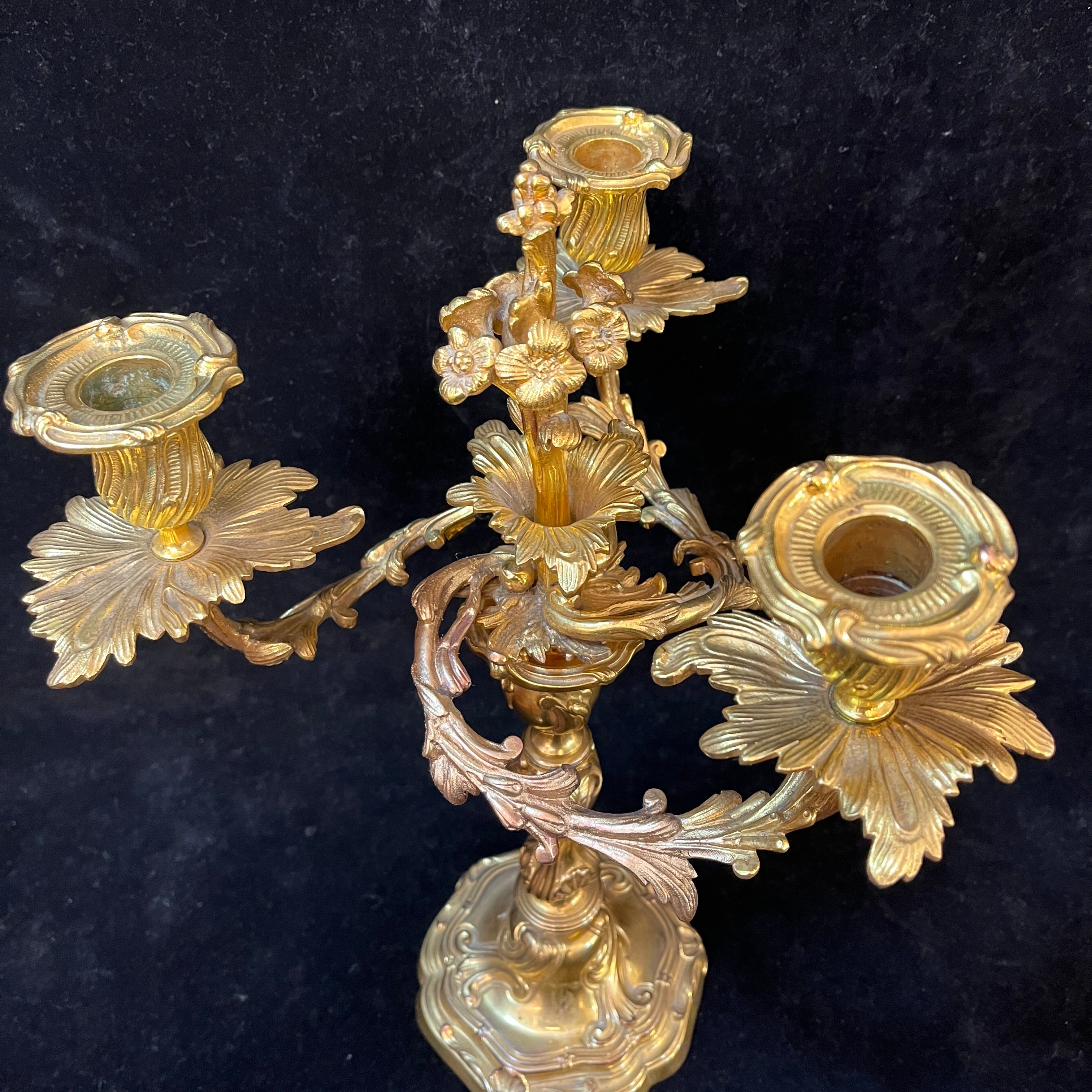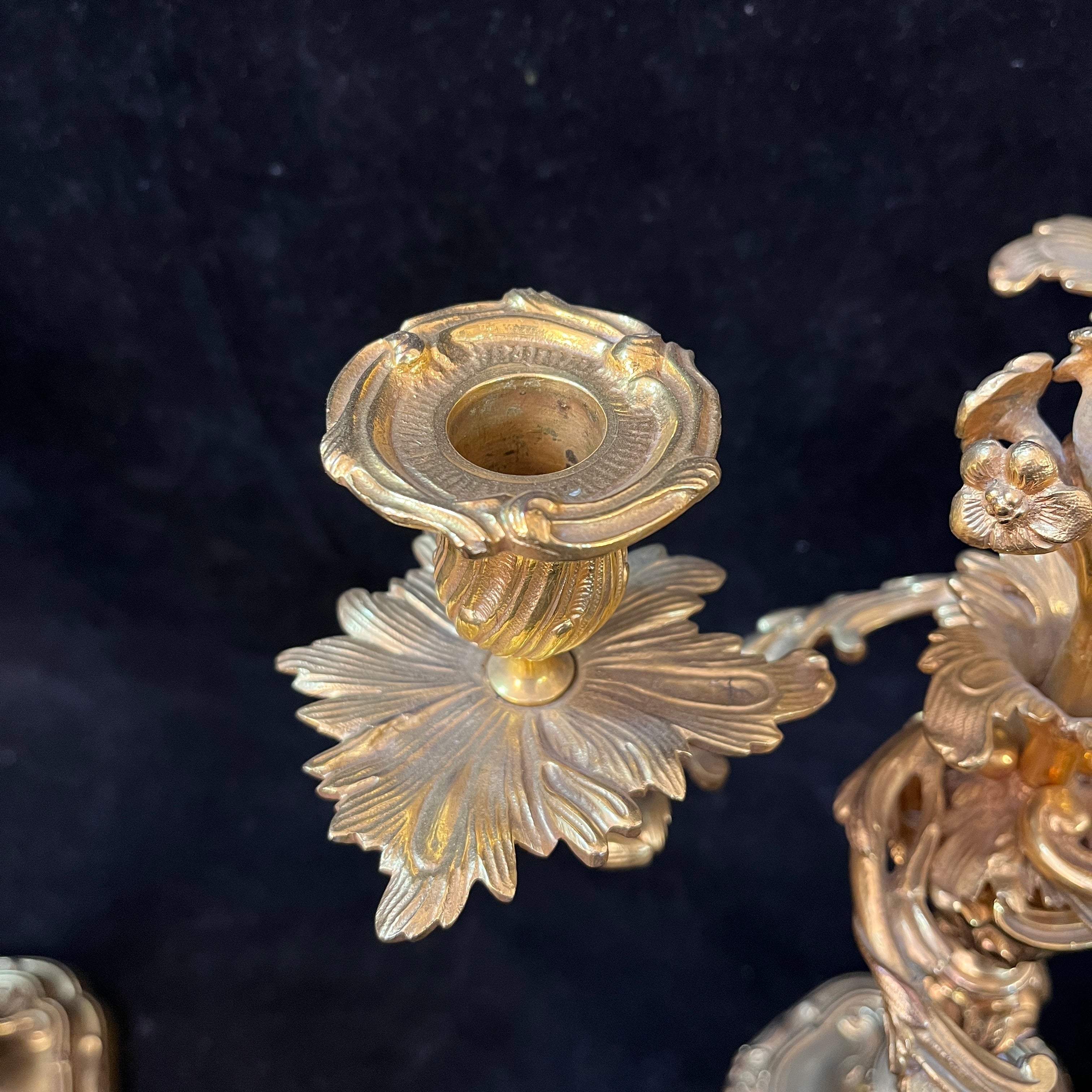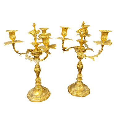Pair of three-light gilt bronze candelabras