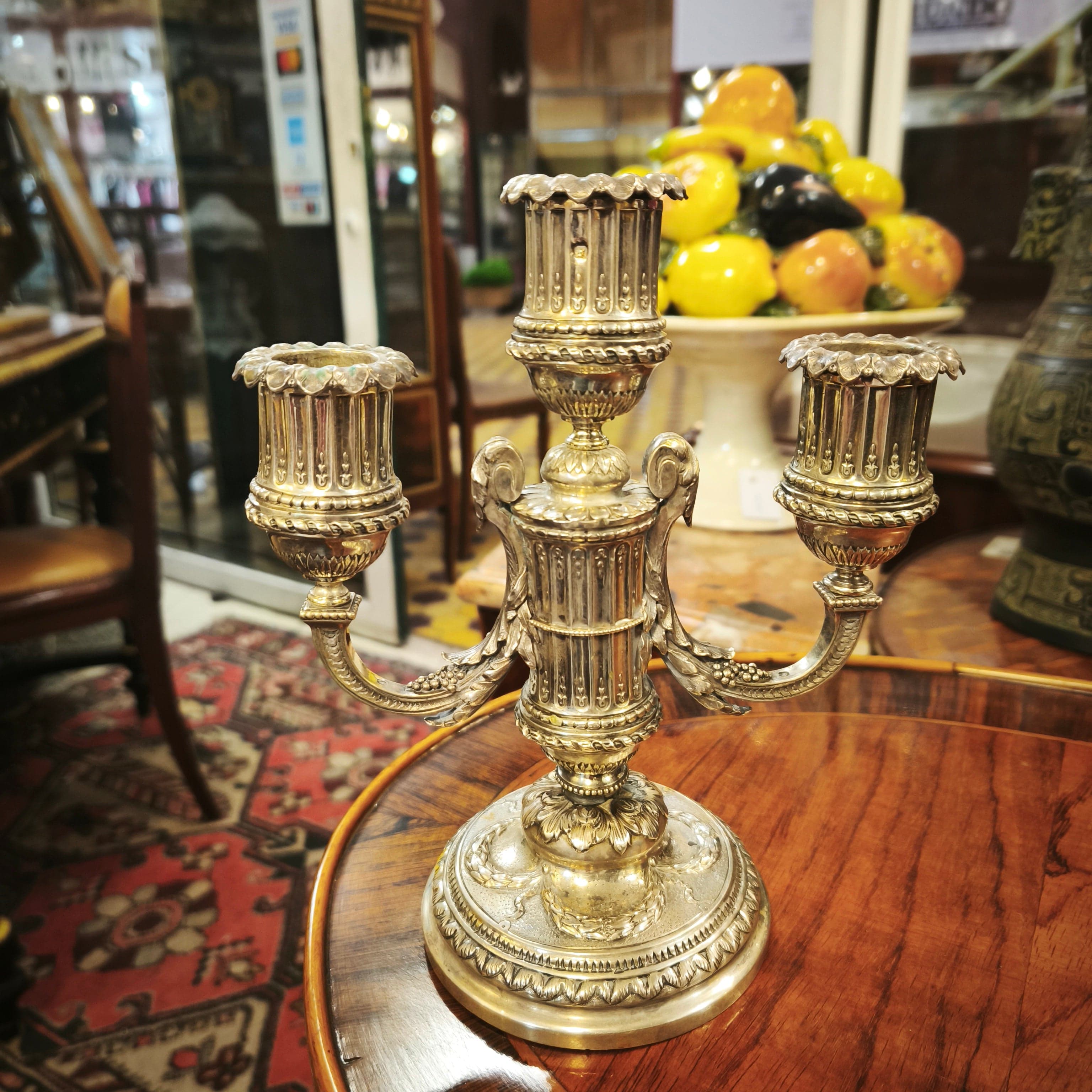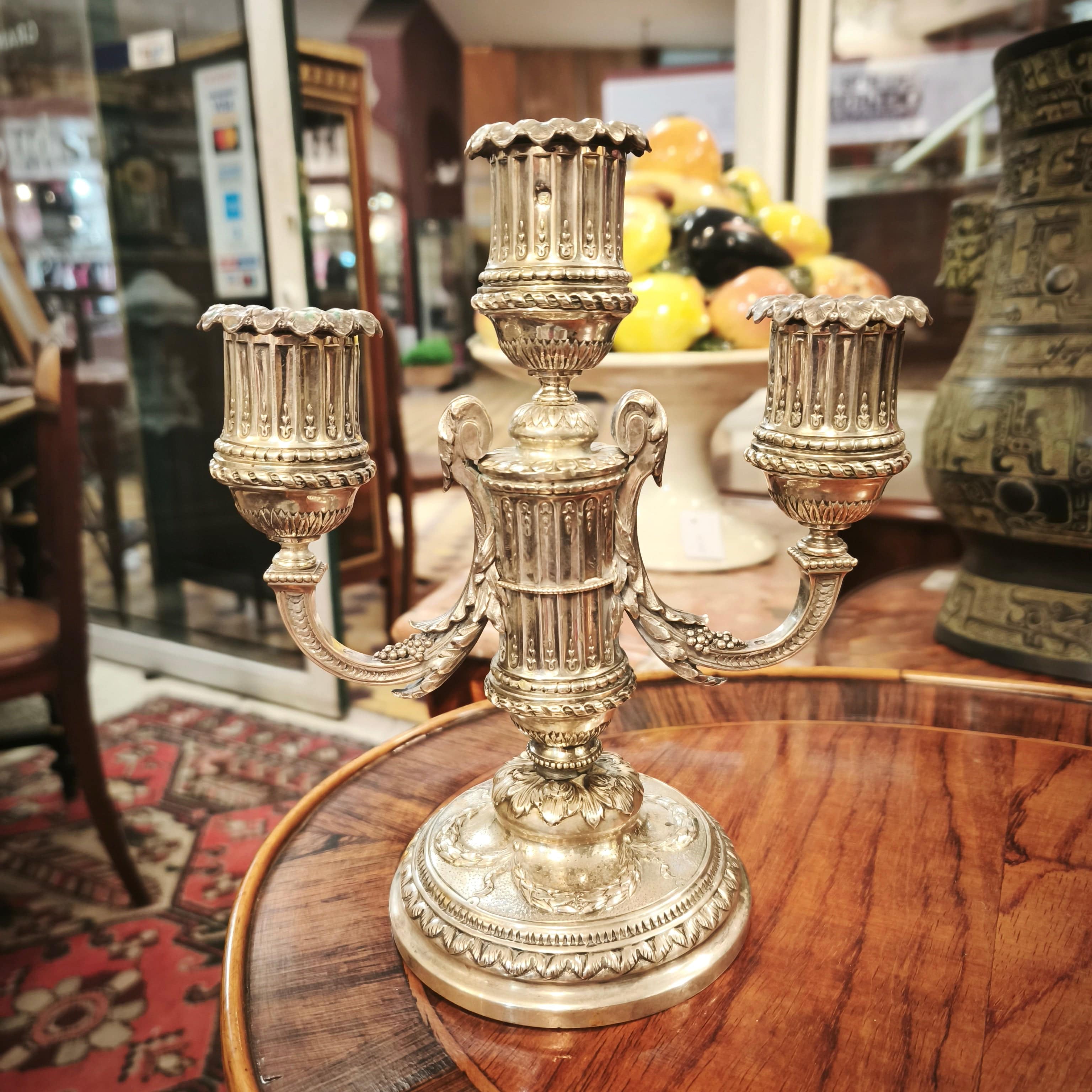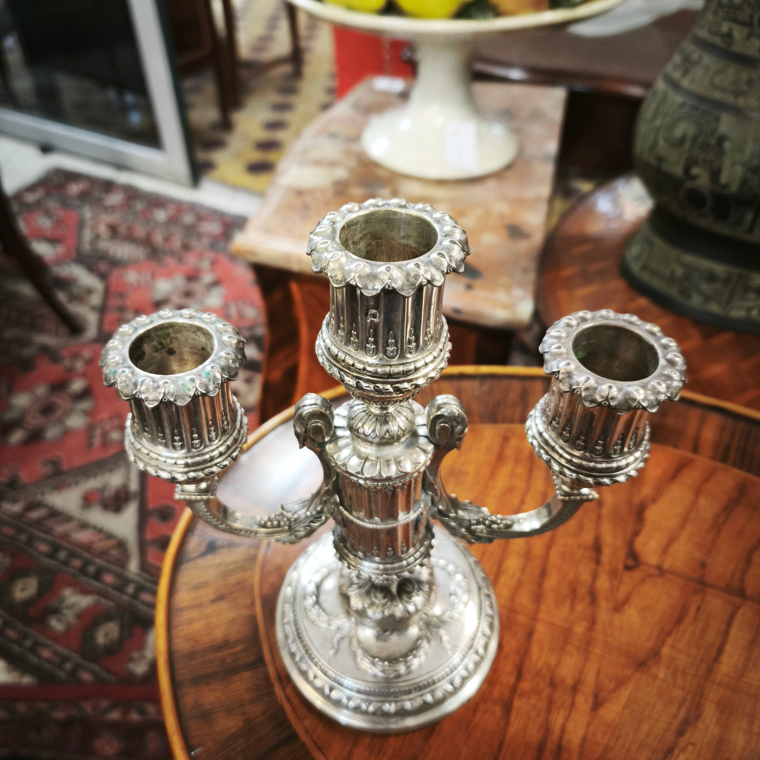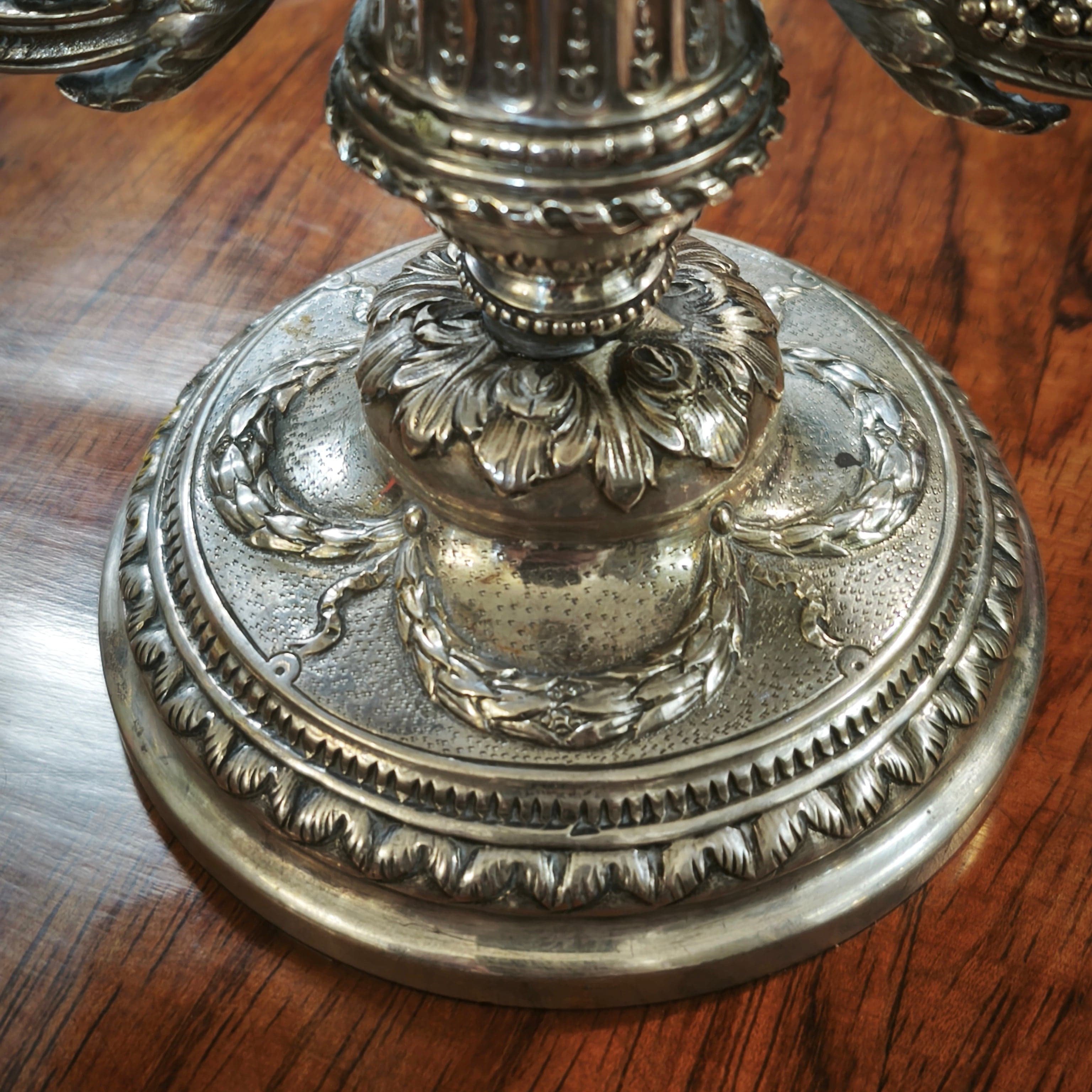 Beautiful finely embossed silver candelabra, with leaves, garlands and grapes.