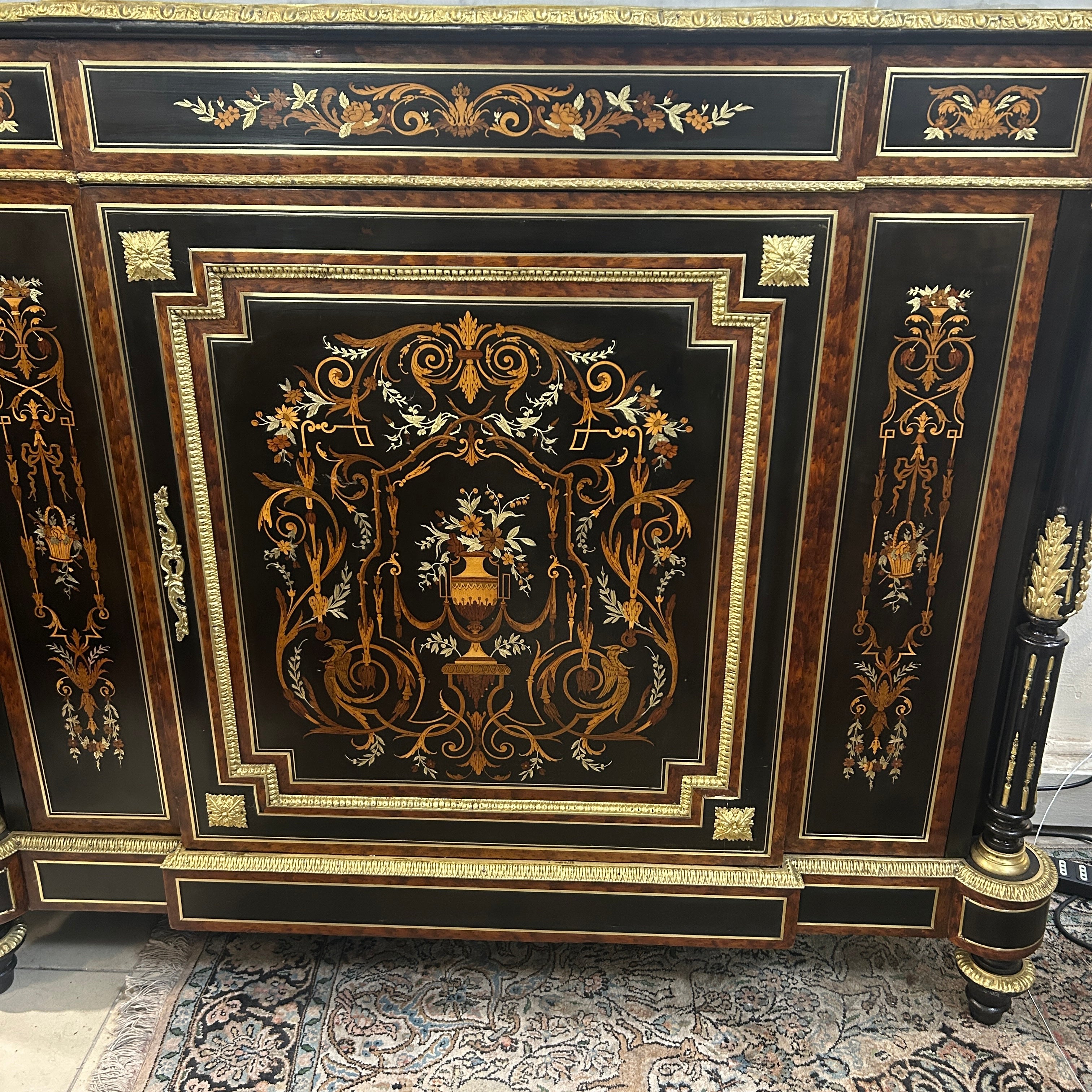 Boulle francés Napoleón III Marquetería en nácar bronces y raíz