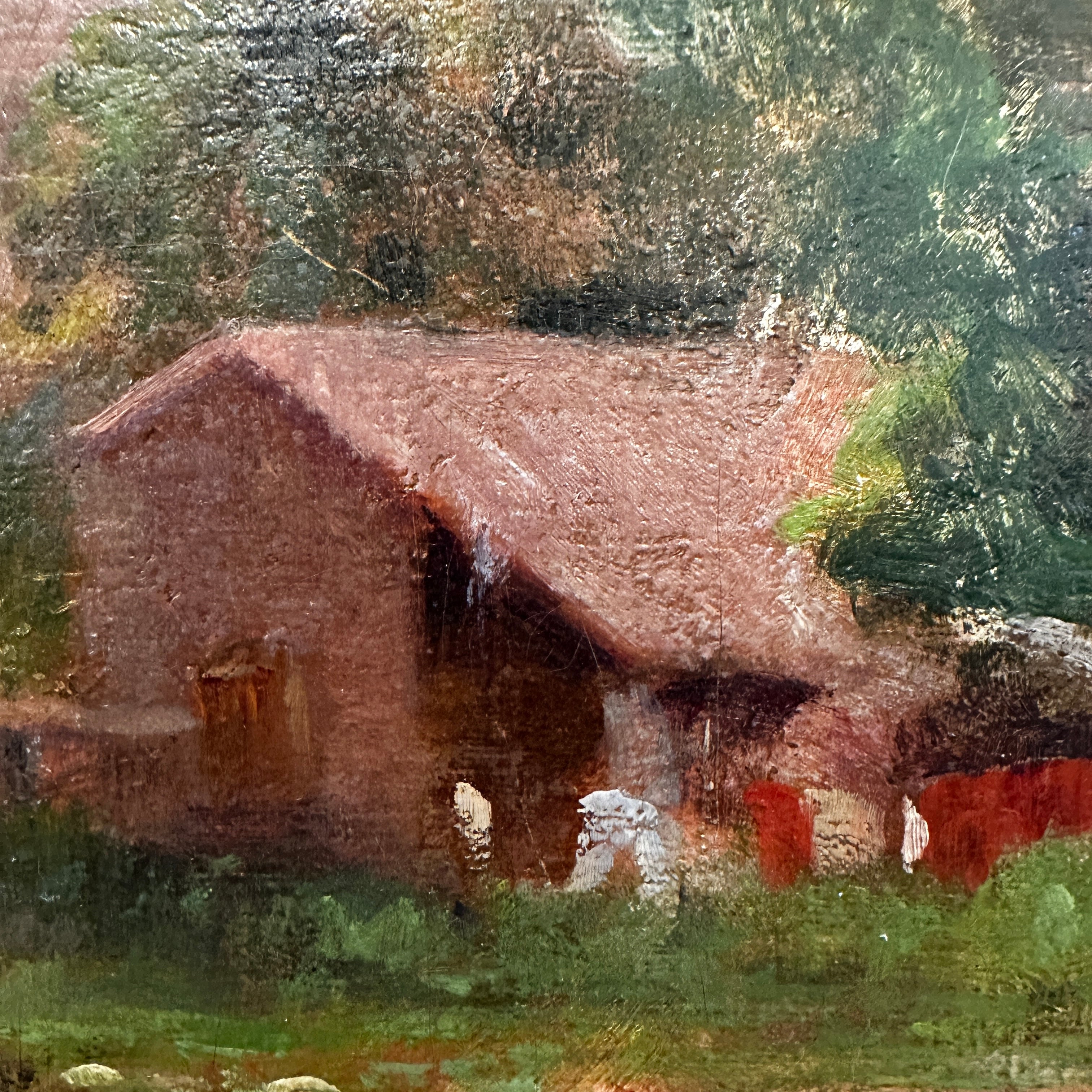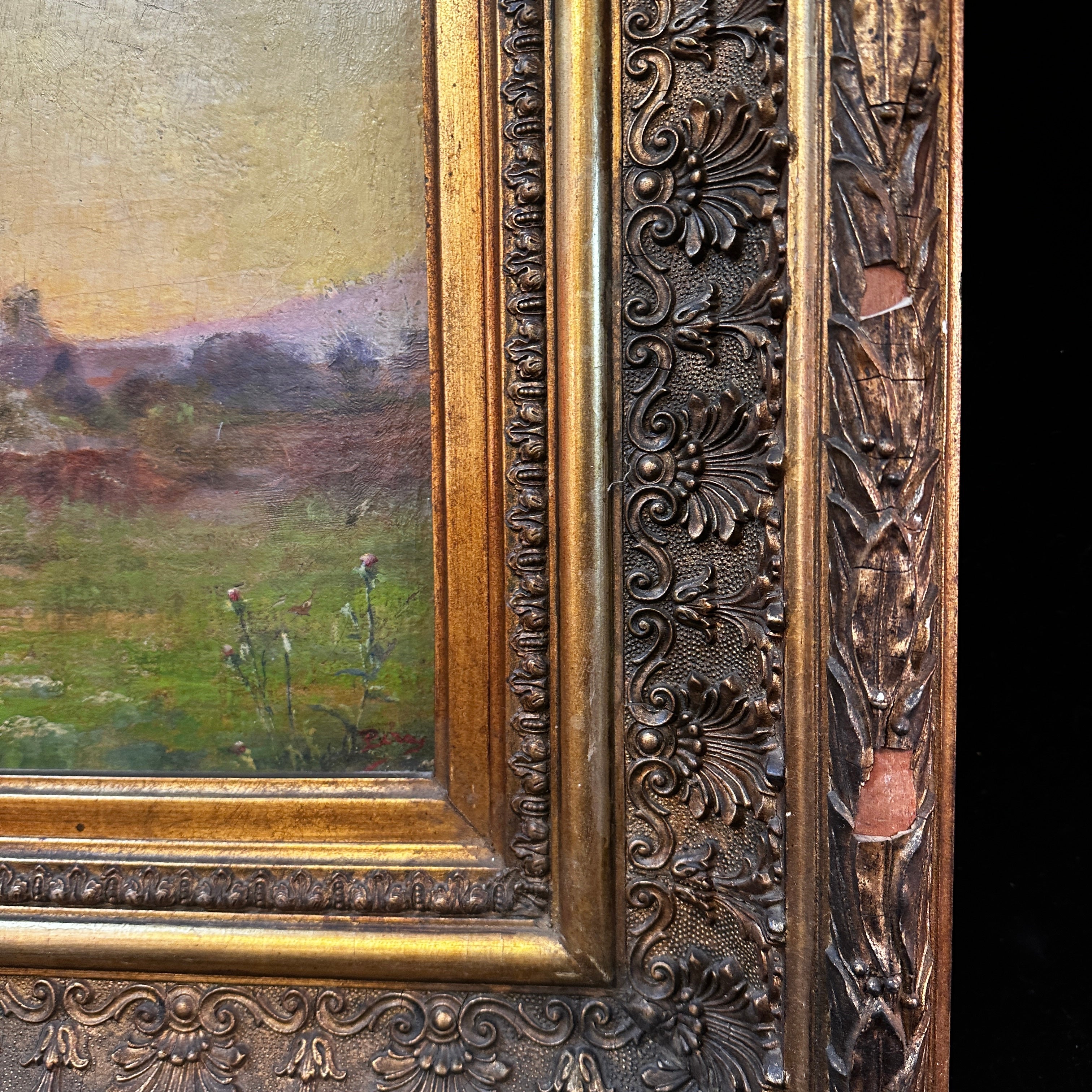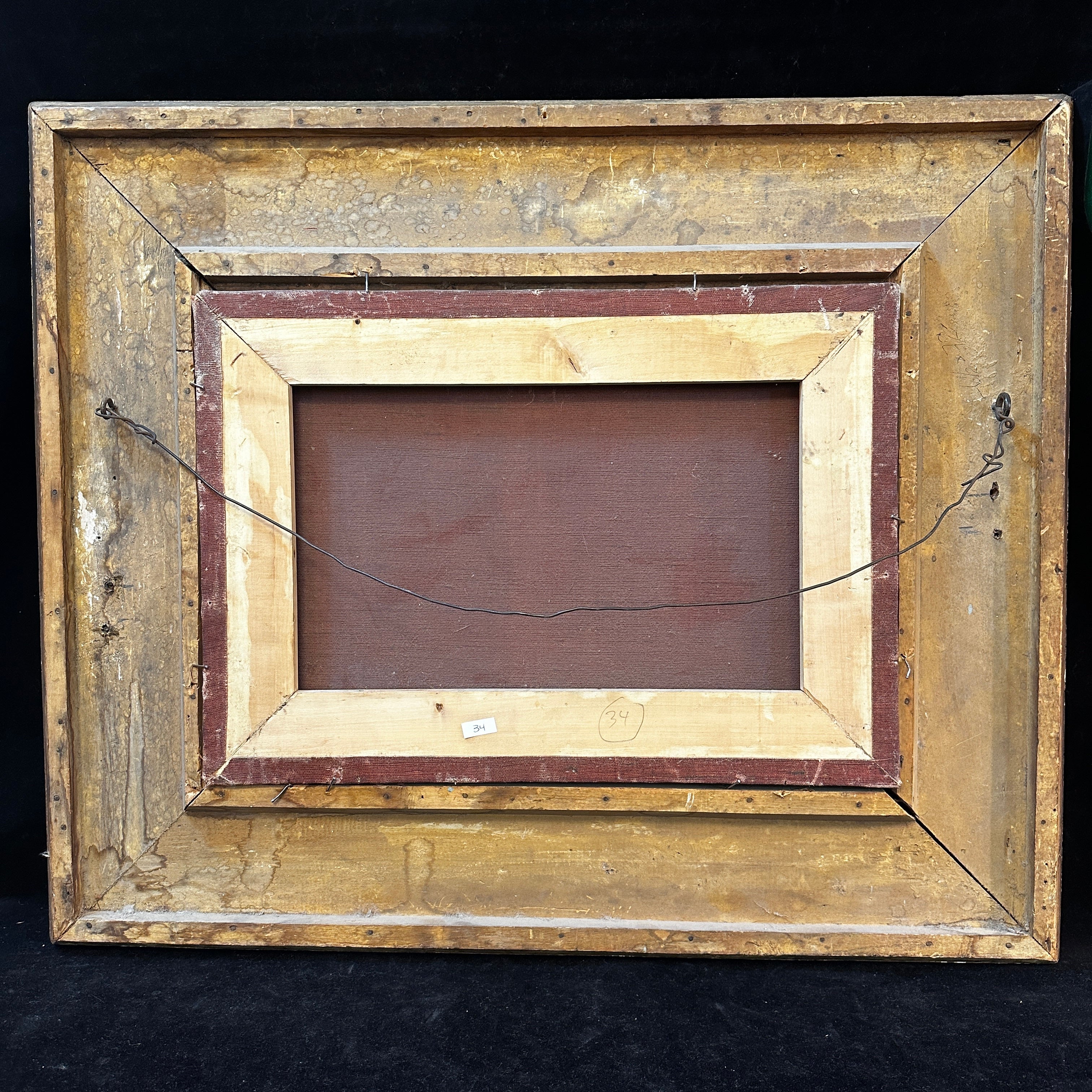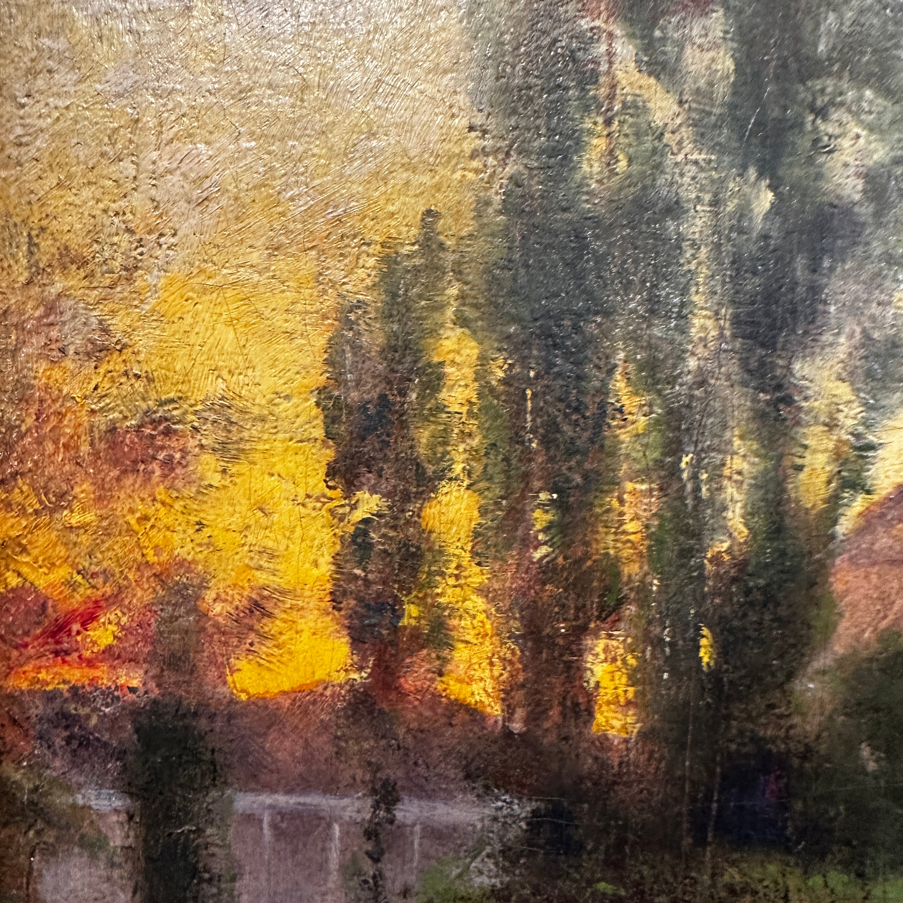 A beautiful oil on canvas painting by Chilean artist Pedro Lira, painted around 1920, depicts the Riesco Palace located north of Santiago (present-day Huechuraba). It features an elaborate carved wooden frame painted in gold.