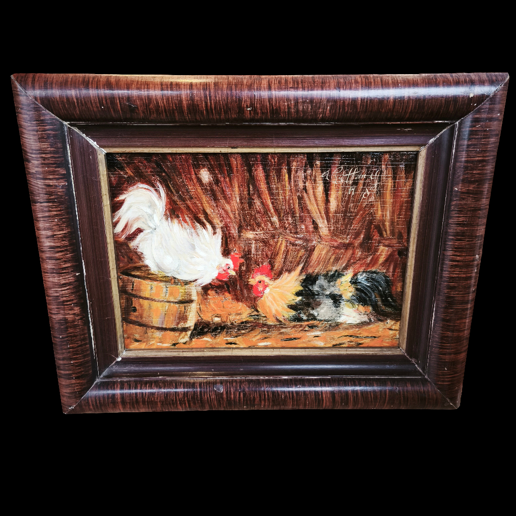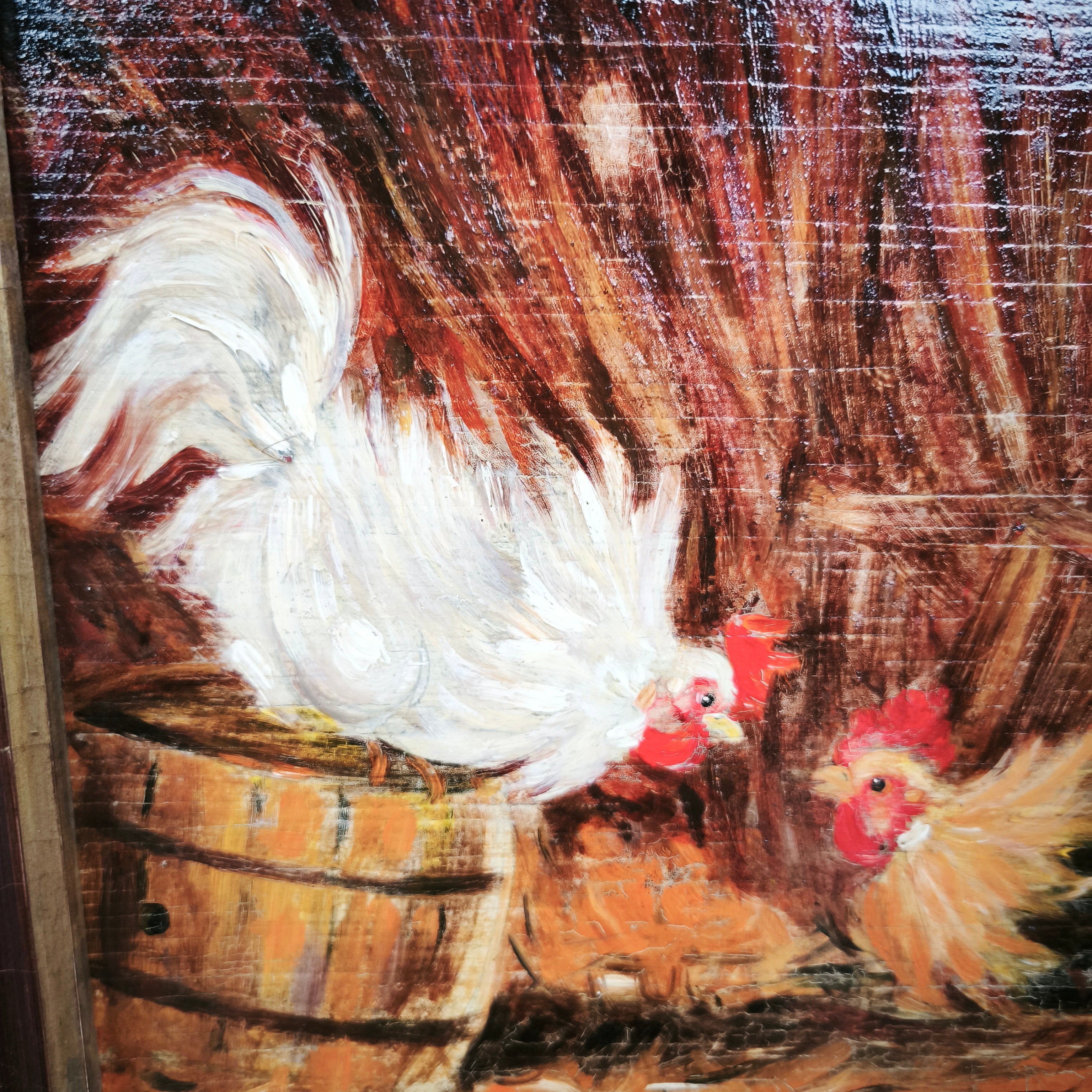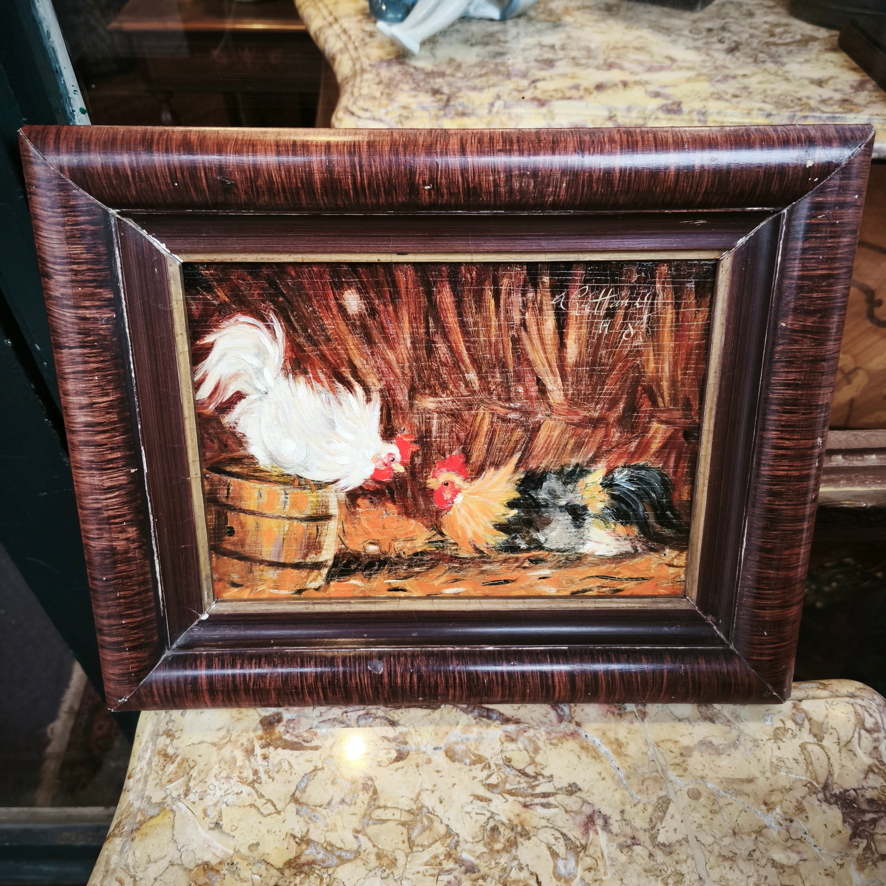 Aristodemo Lattanzi Villela - Oil on wood 'Two roosters'