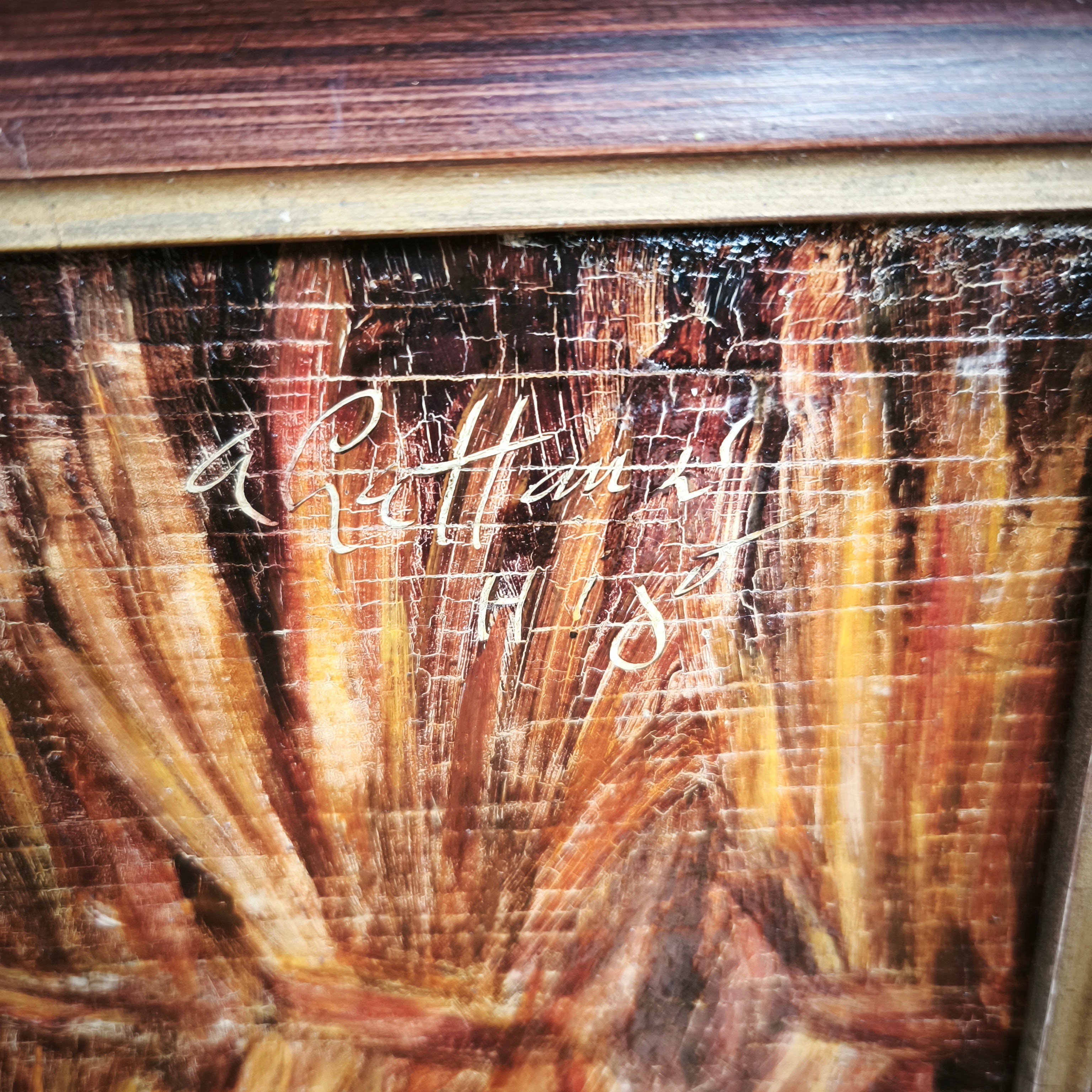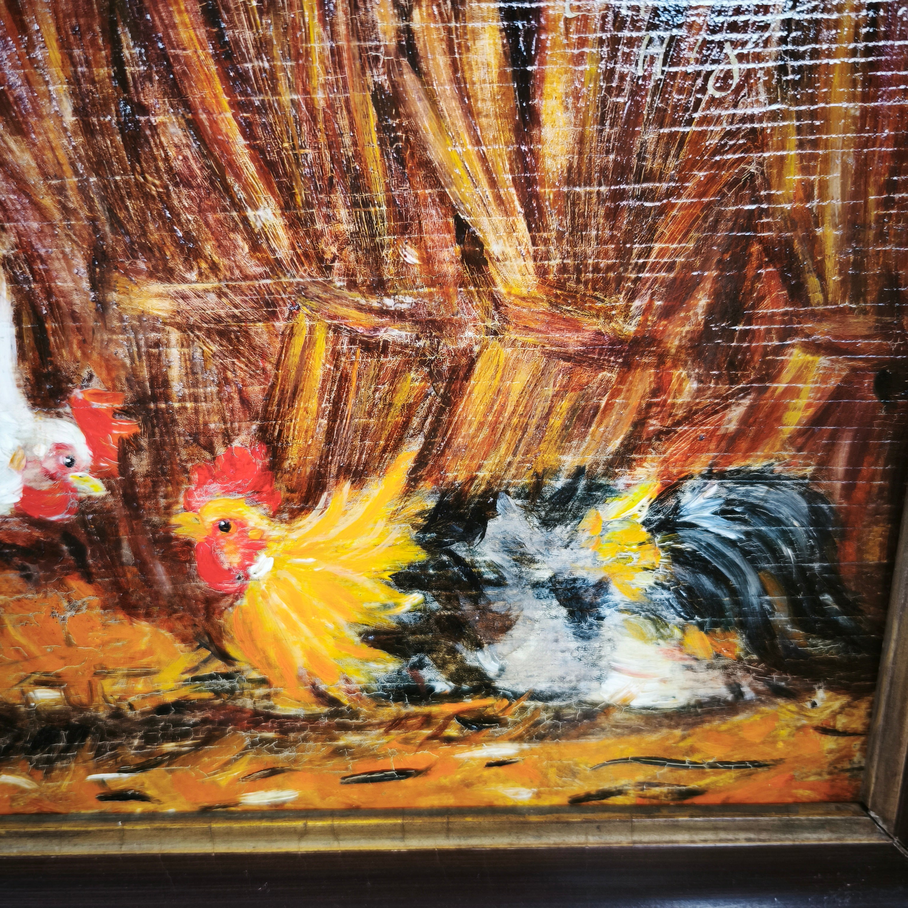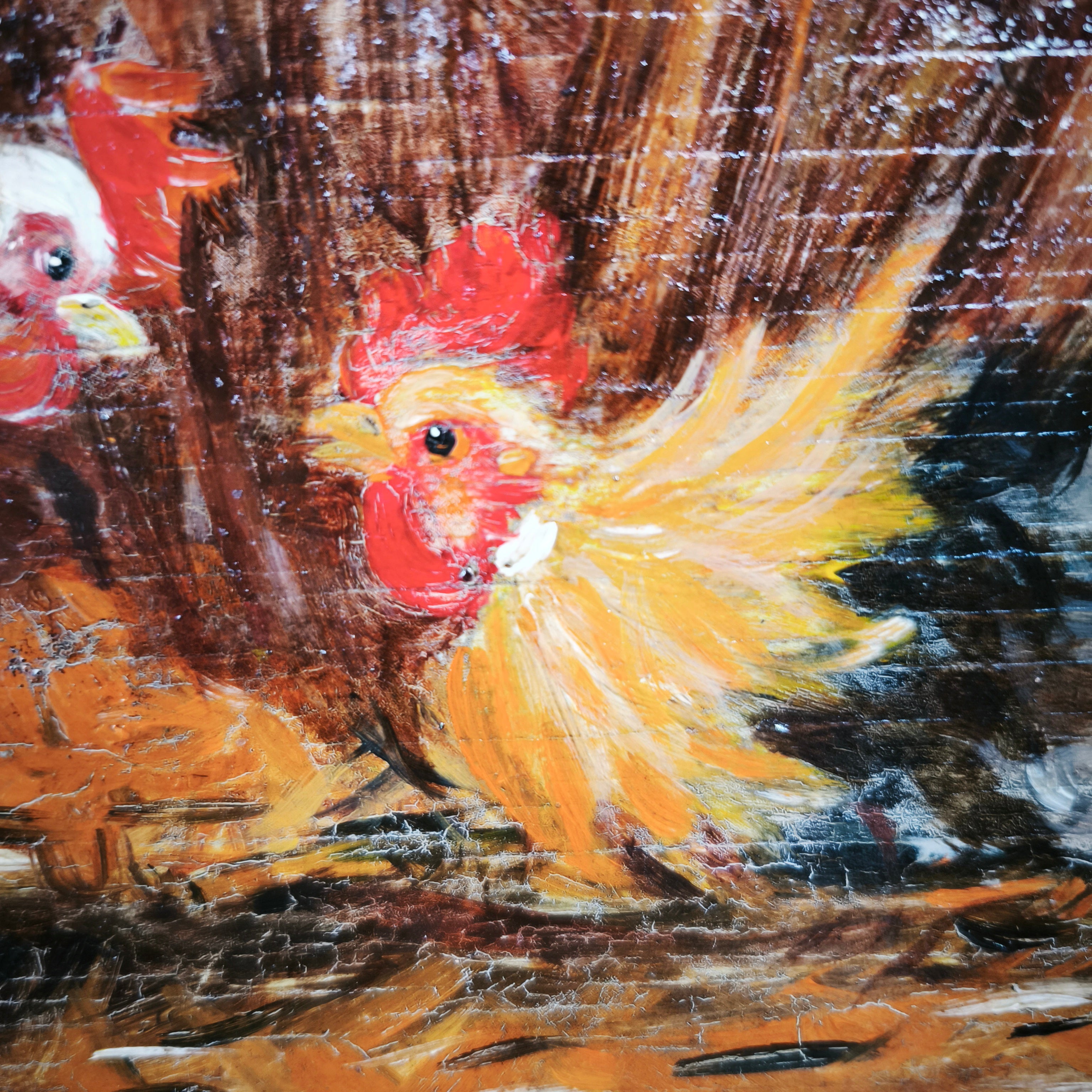 Aristodemo Lattanzi Villela - Oil on wood 'Two roosters'