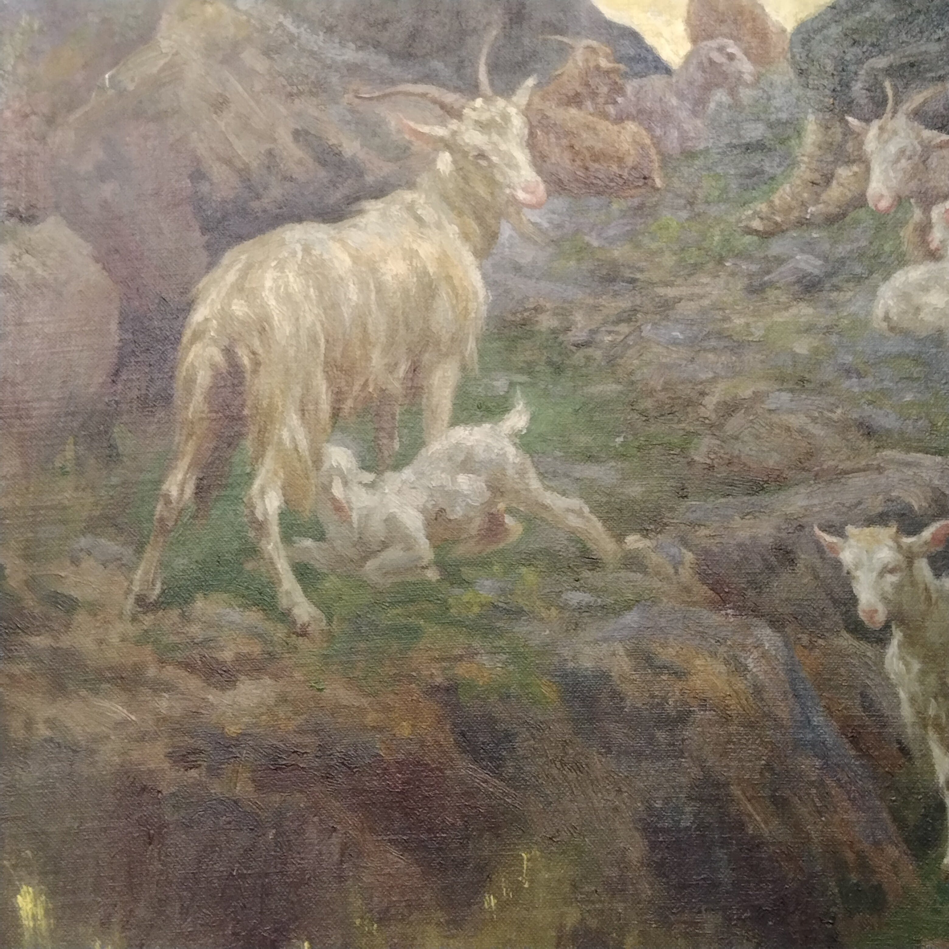 Pietro Barucci - Oil on canvas 'Landscape with Shepherd and Goats'