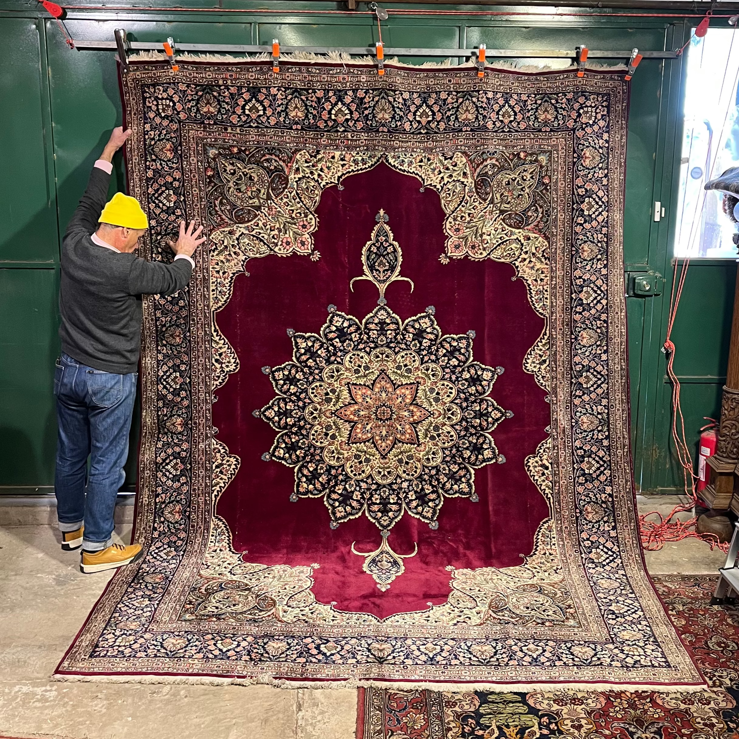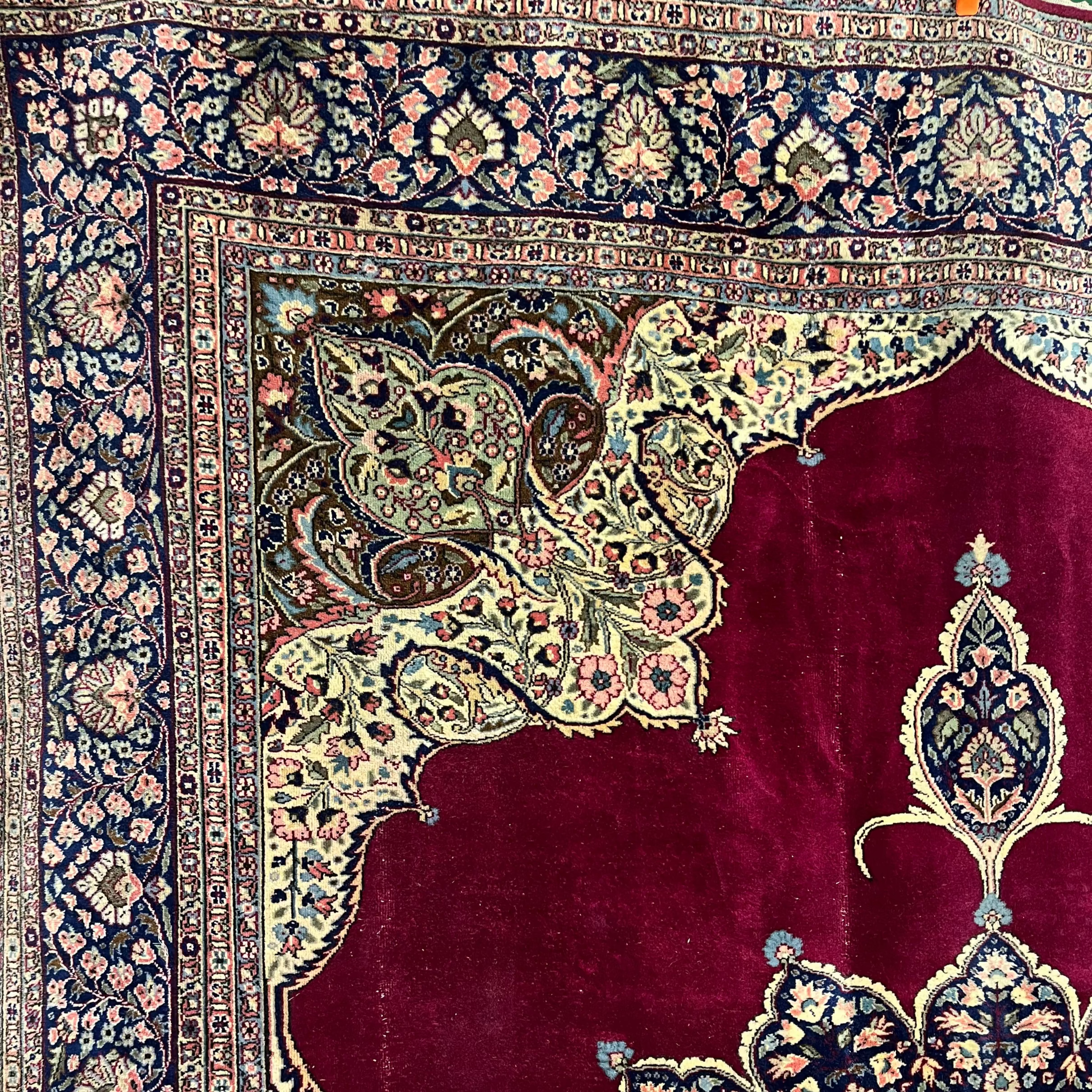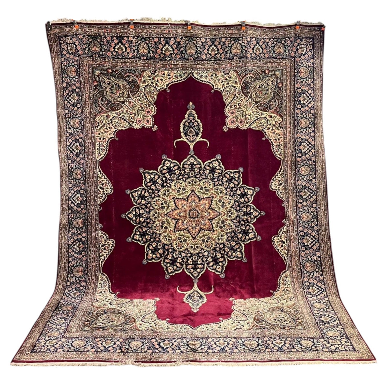 Kirman Persian wool and silk rug 255 x 345 cms.