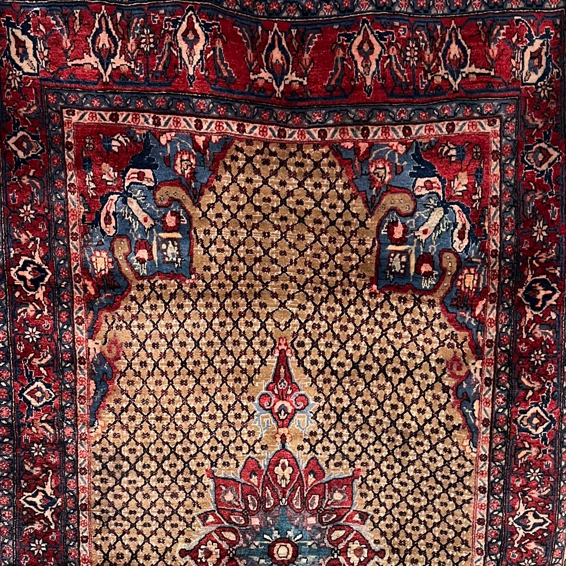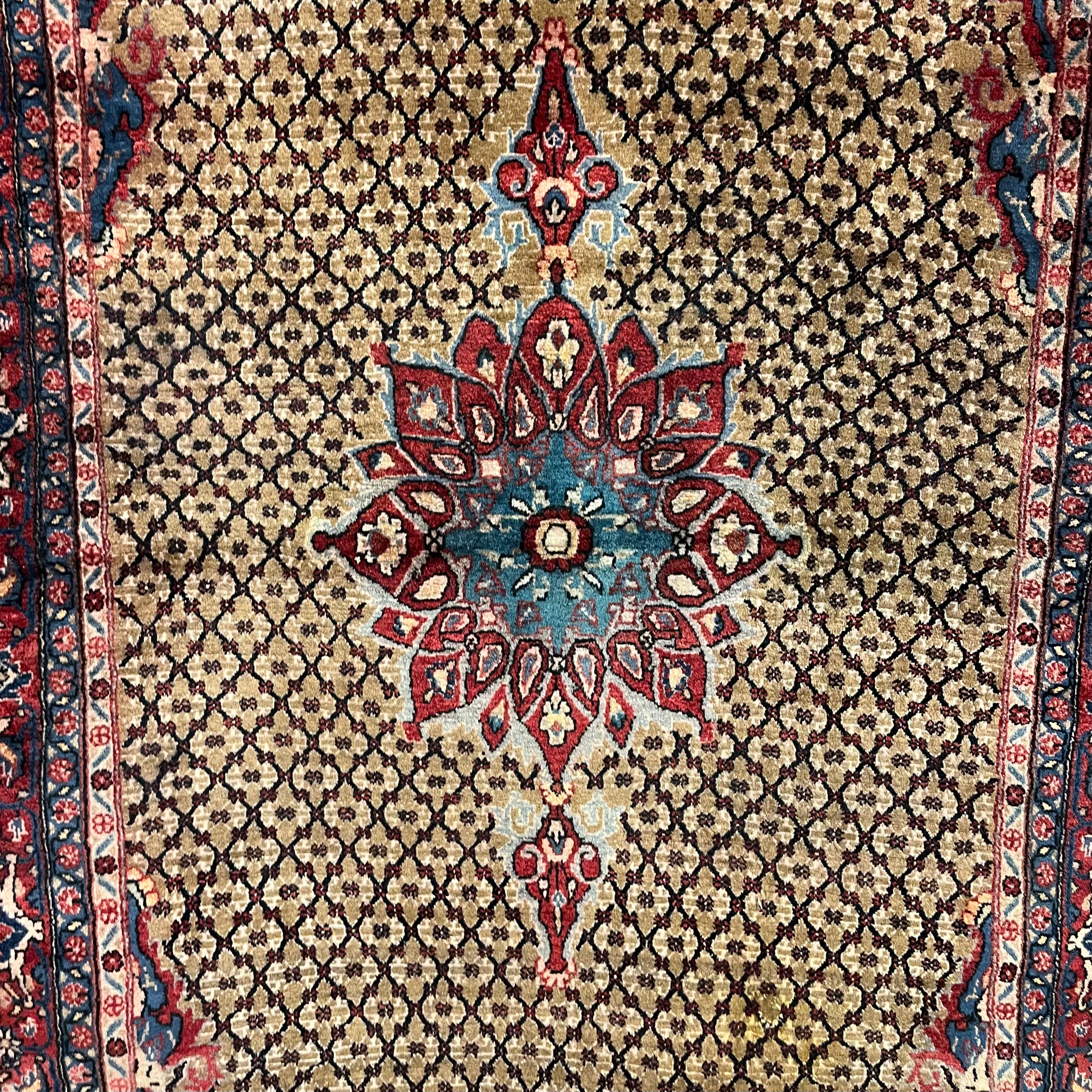 Wonderful handmade Persian wool Toserkan rug. It features beautiful designs characterized by geometric patterns and floral figures, with the central medallion standing out. It is in very good condition.