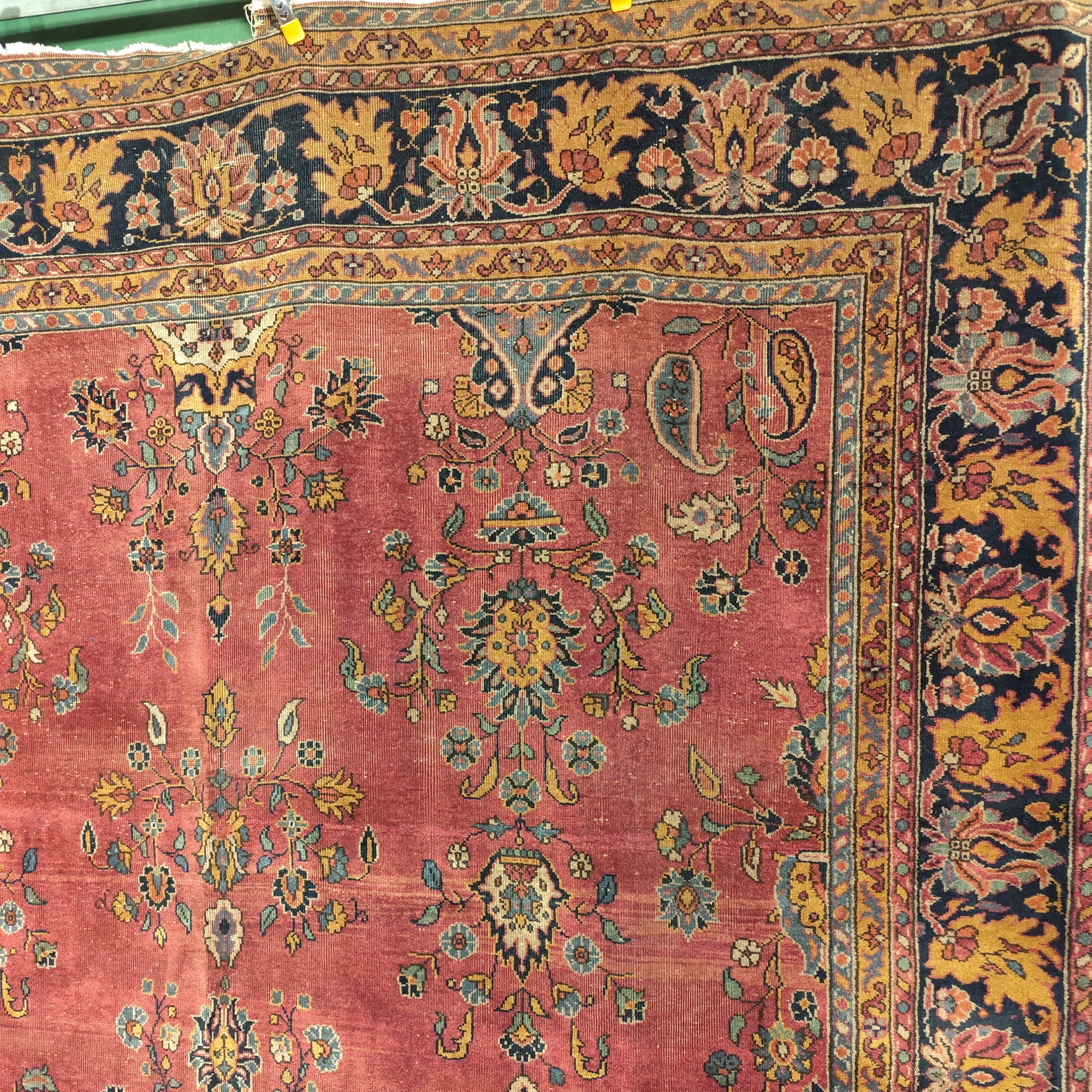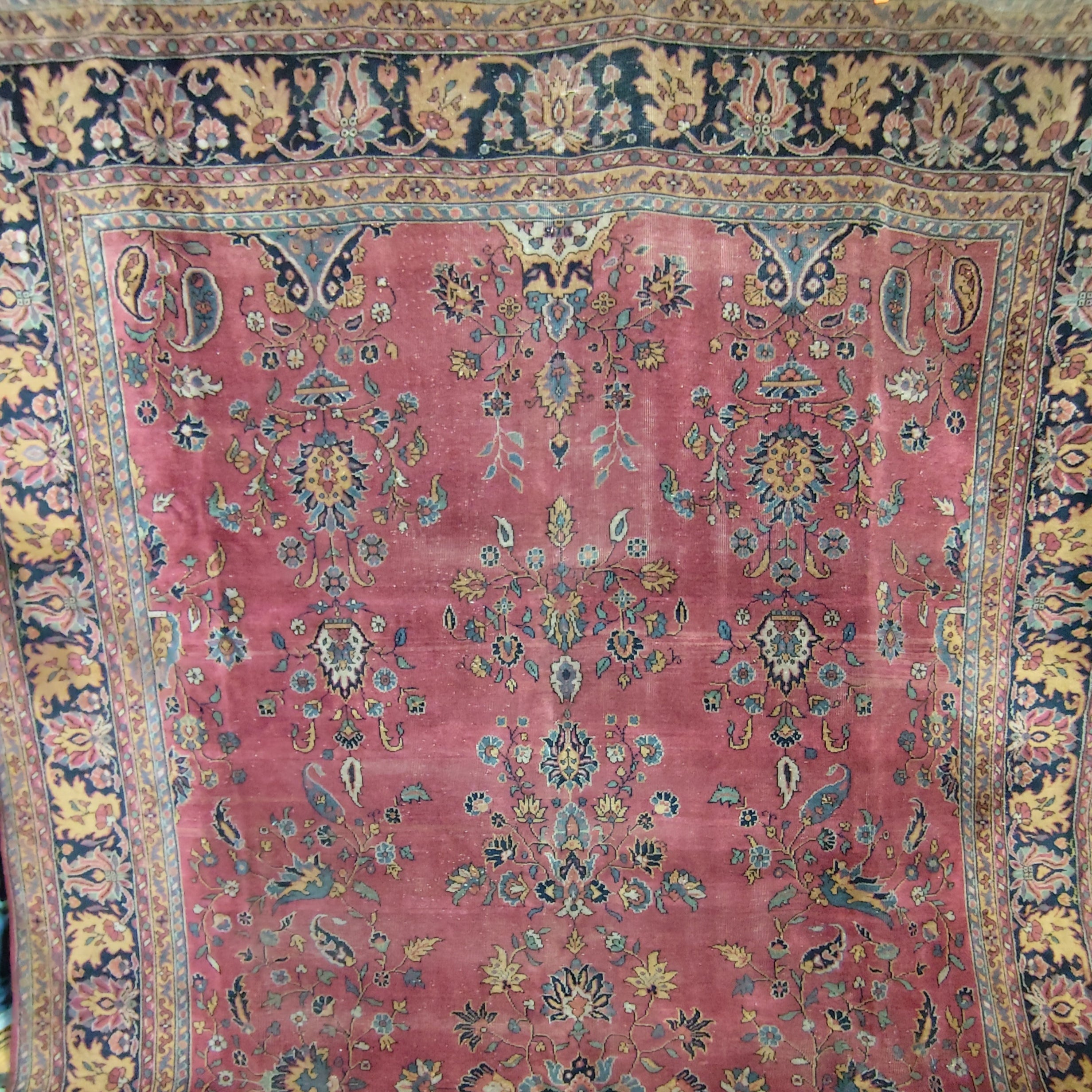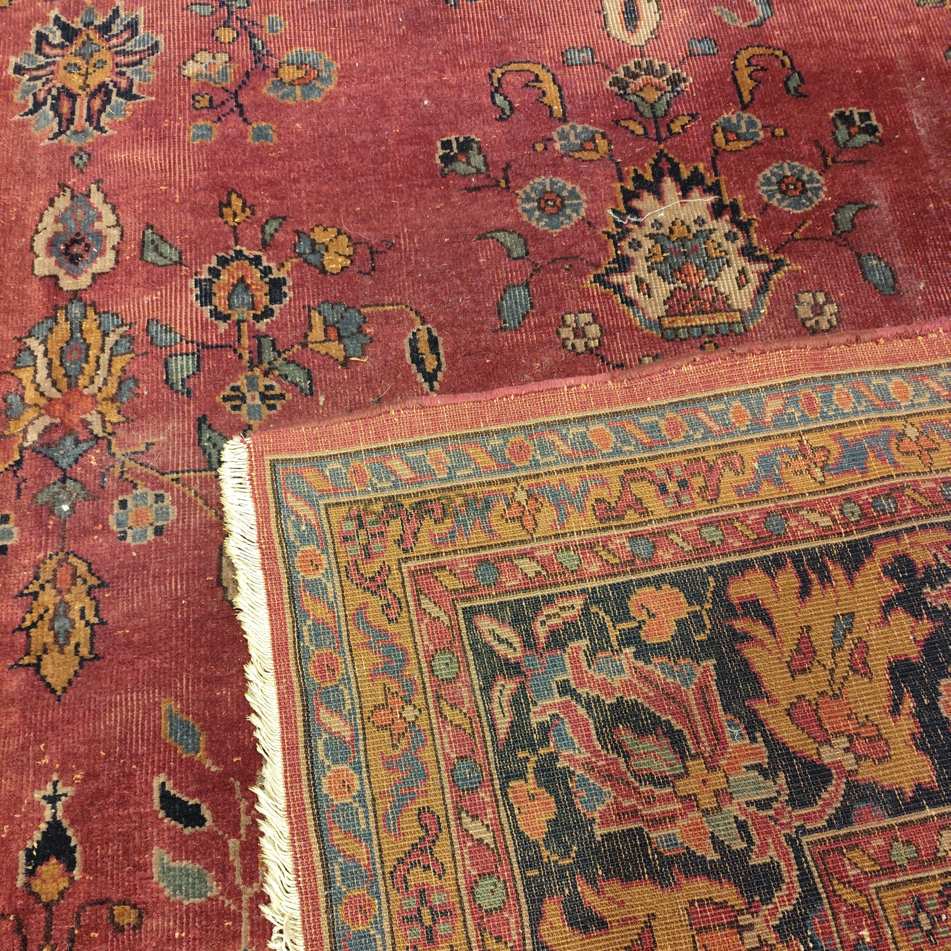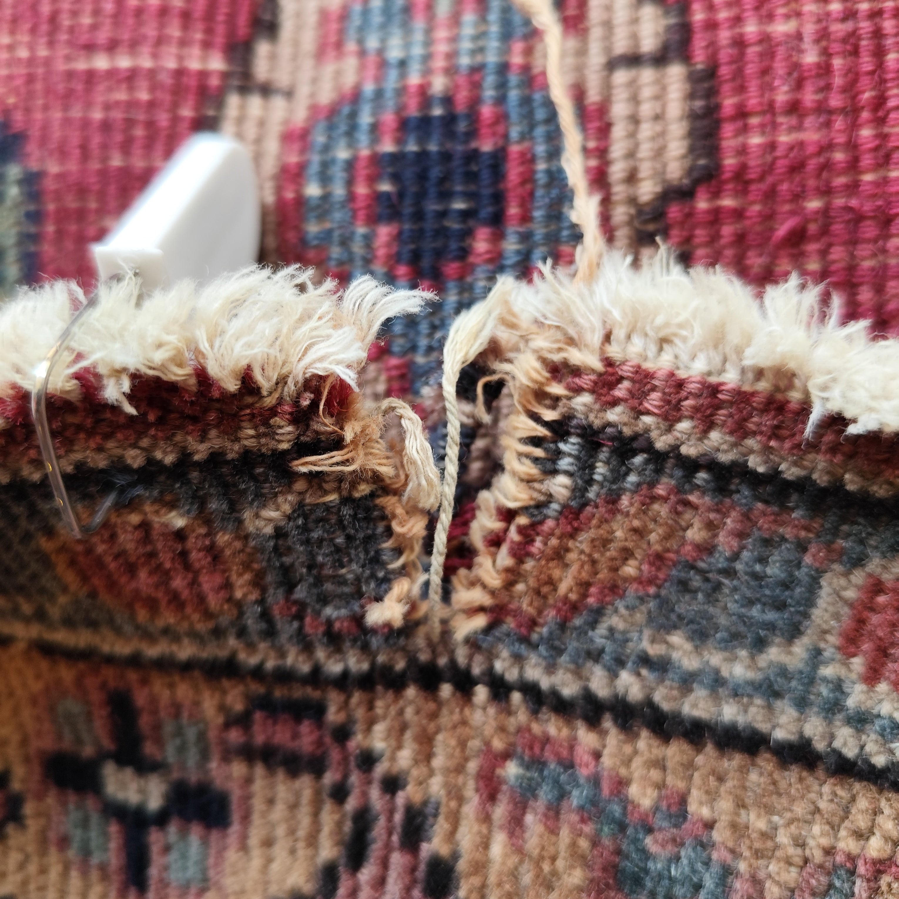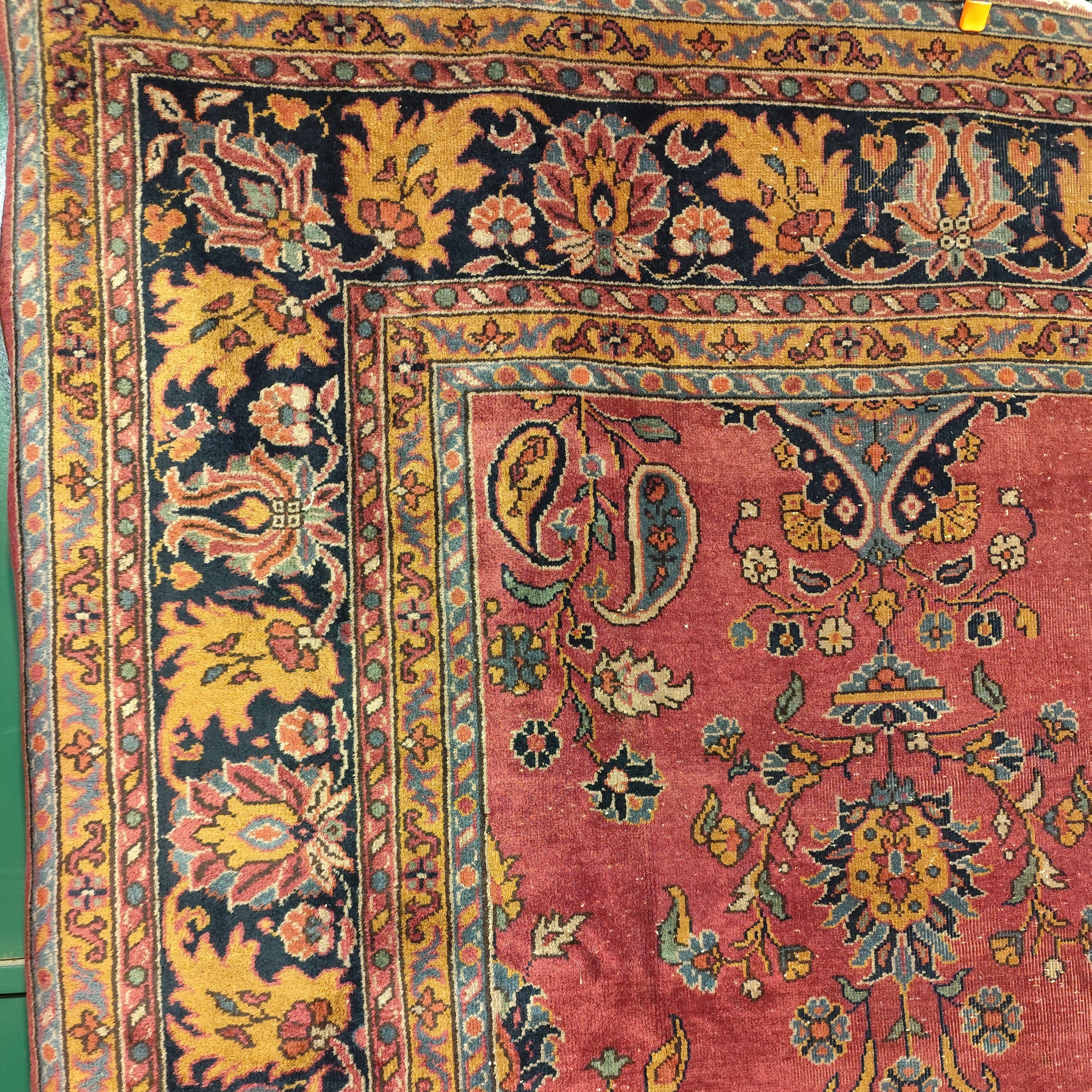 A wonderful Persian Saruk rug made of wool and silk, between 80 and 100 years old. The main color is a beautiful dried cherry, which contrasts splendidly with the other colors.