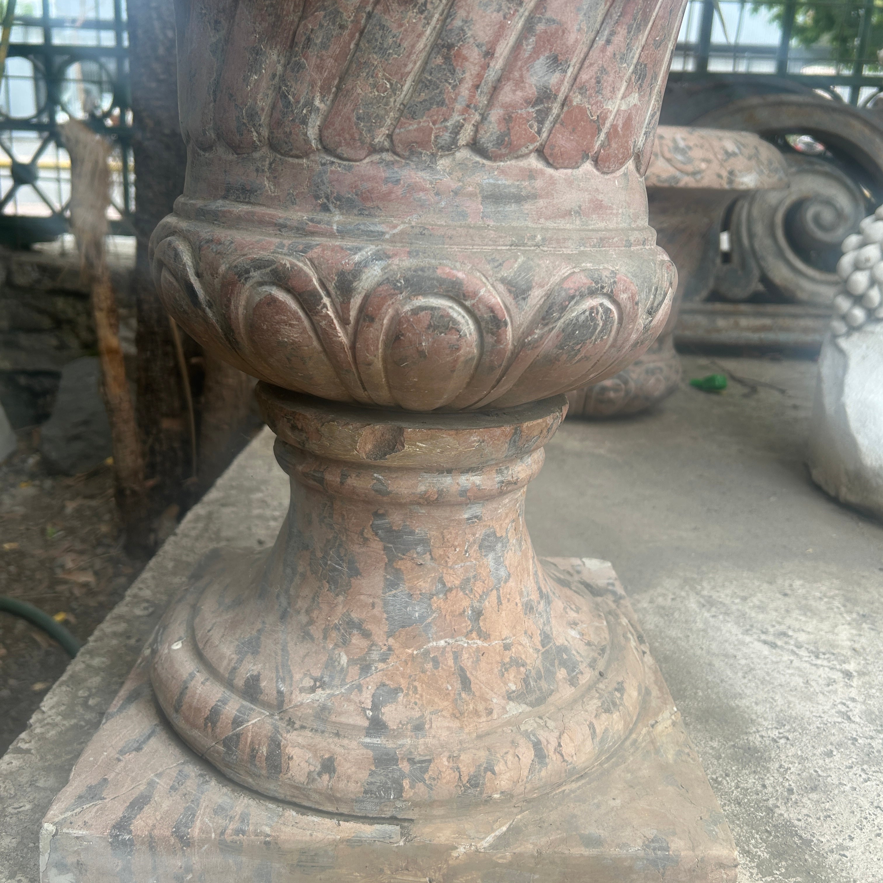 Hermoso copón de mármol tallado. Puede ser utilizado como un macetero de gran formato en tu jardín o terraza o bien para decorar interiores. Se encuentra restaurado.