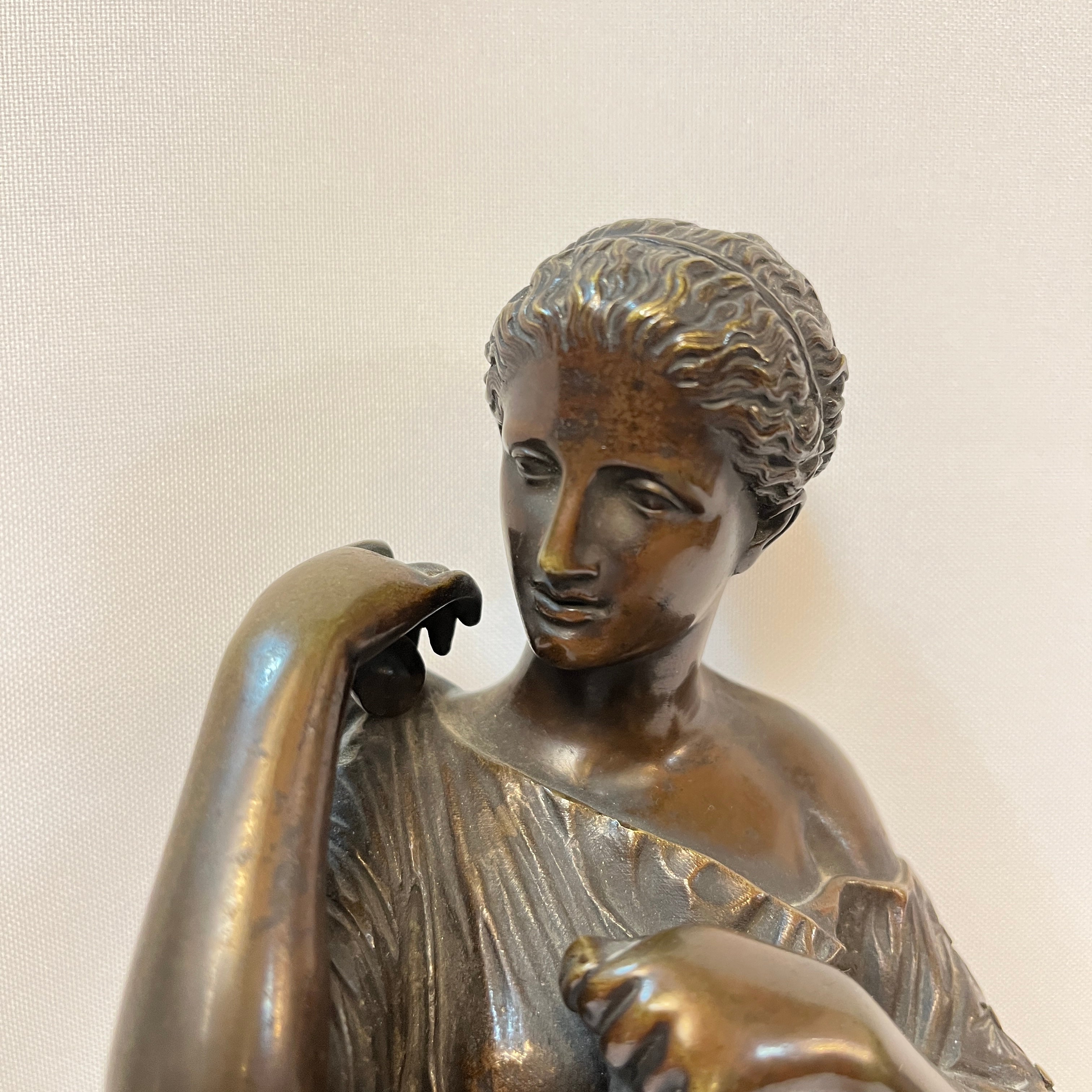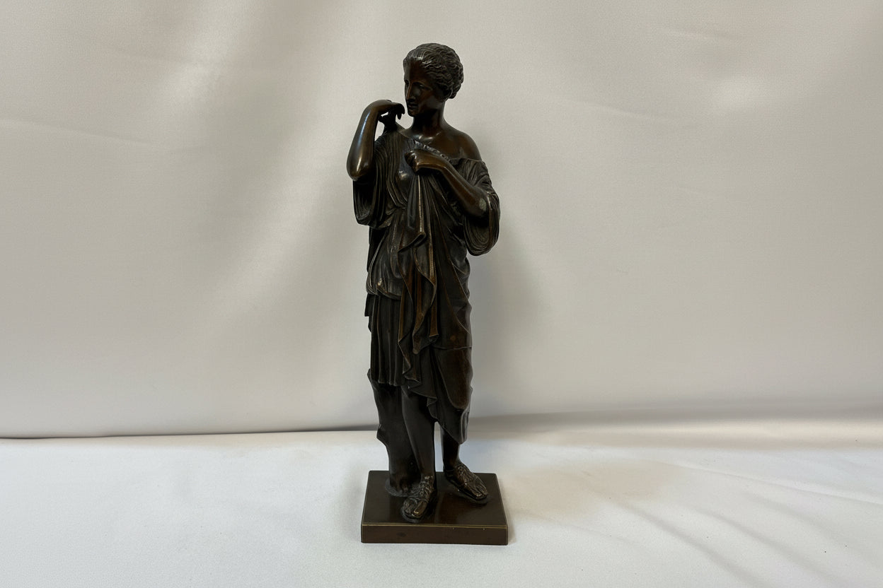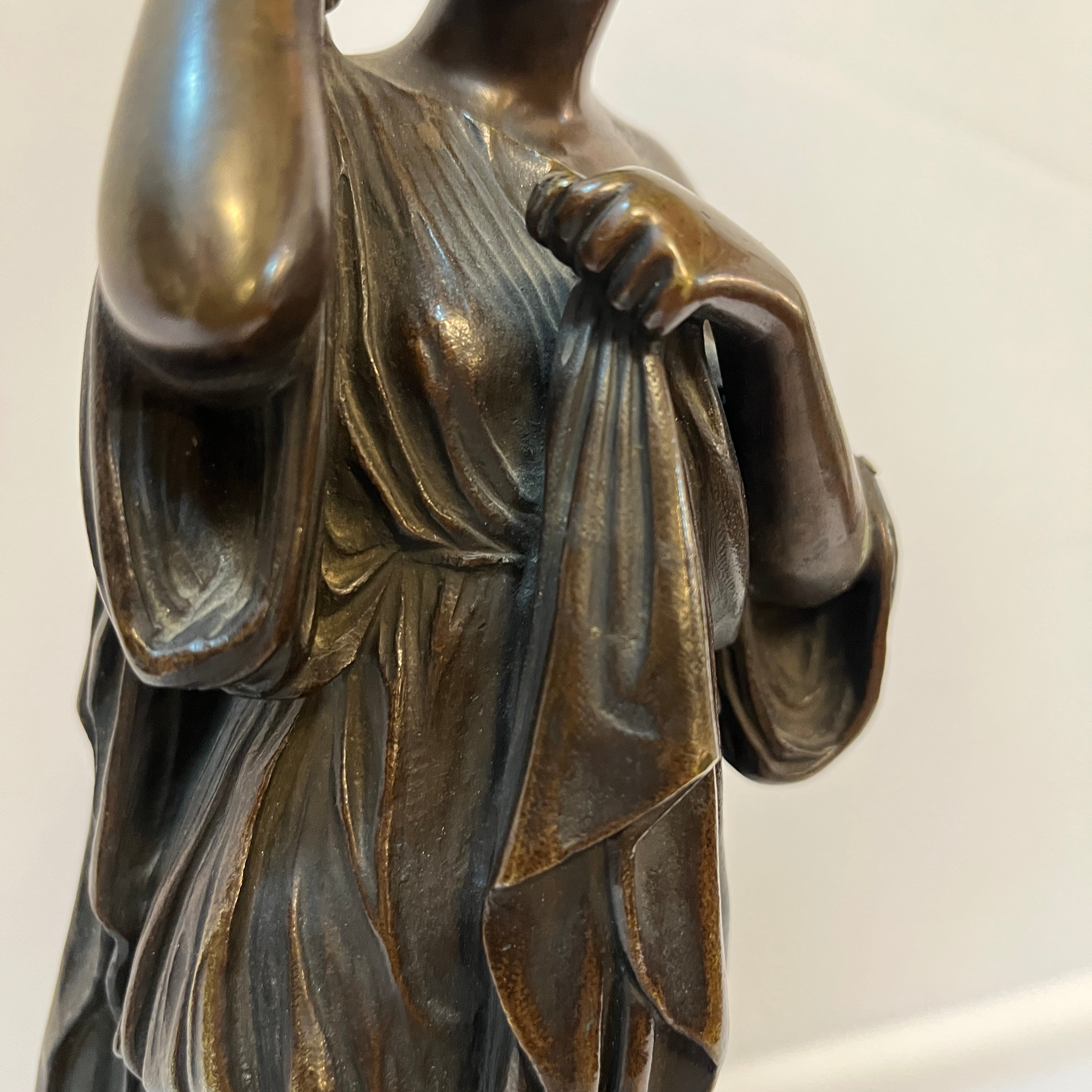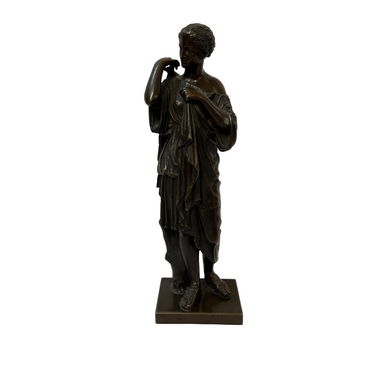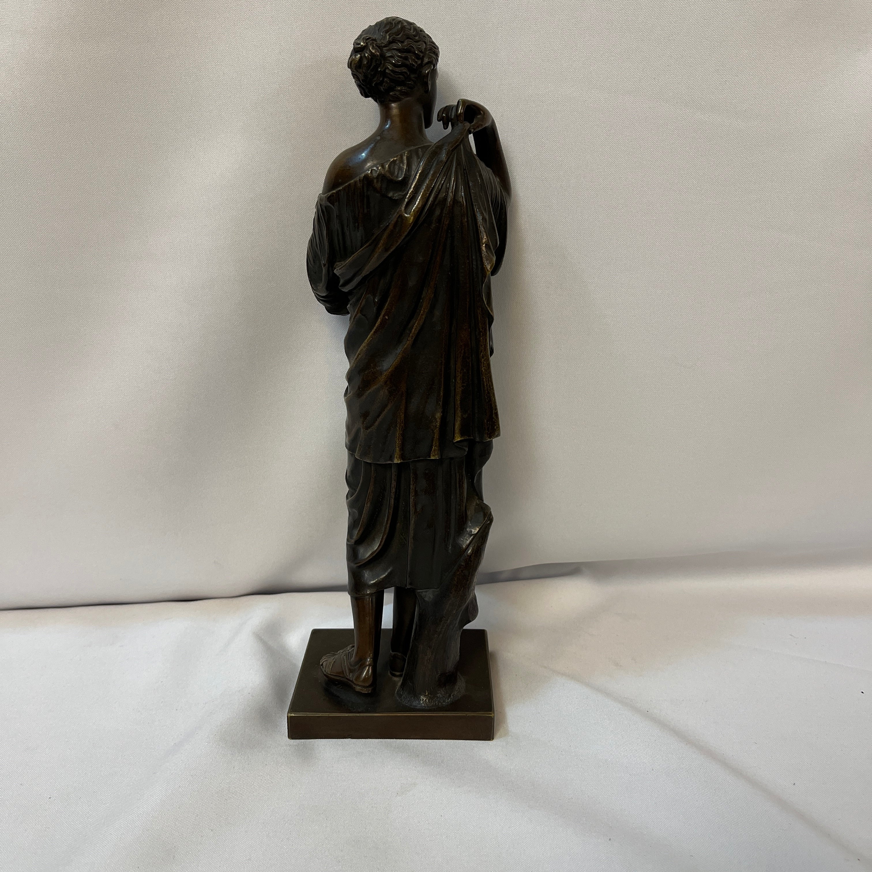 Bronze proof with brown patina. Reduced reproduction of the original 4th century BC sculpture held in the Louvre Museum.