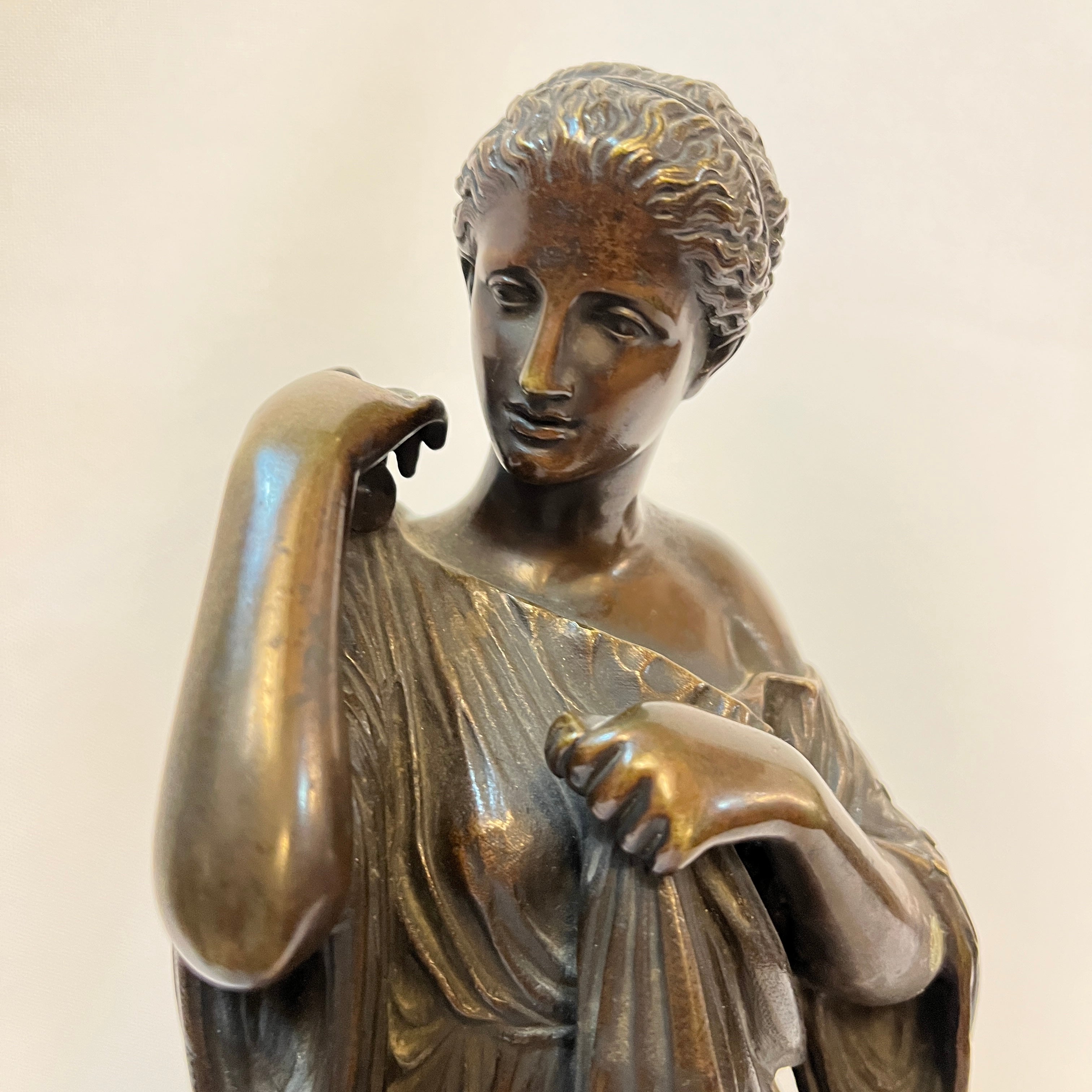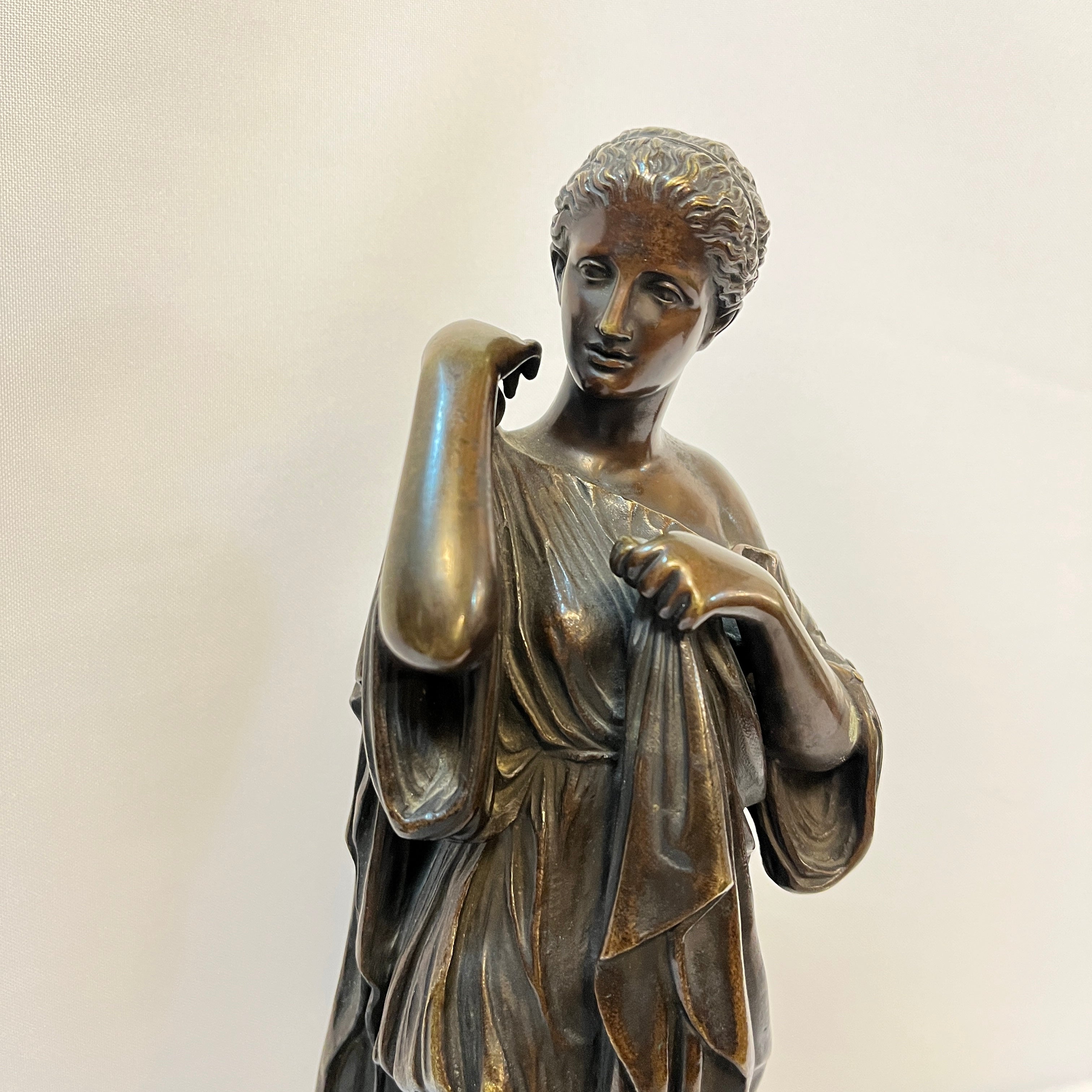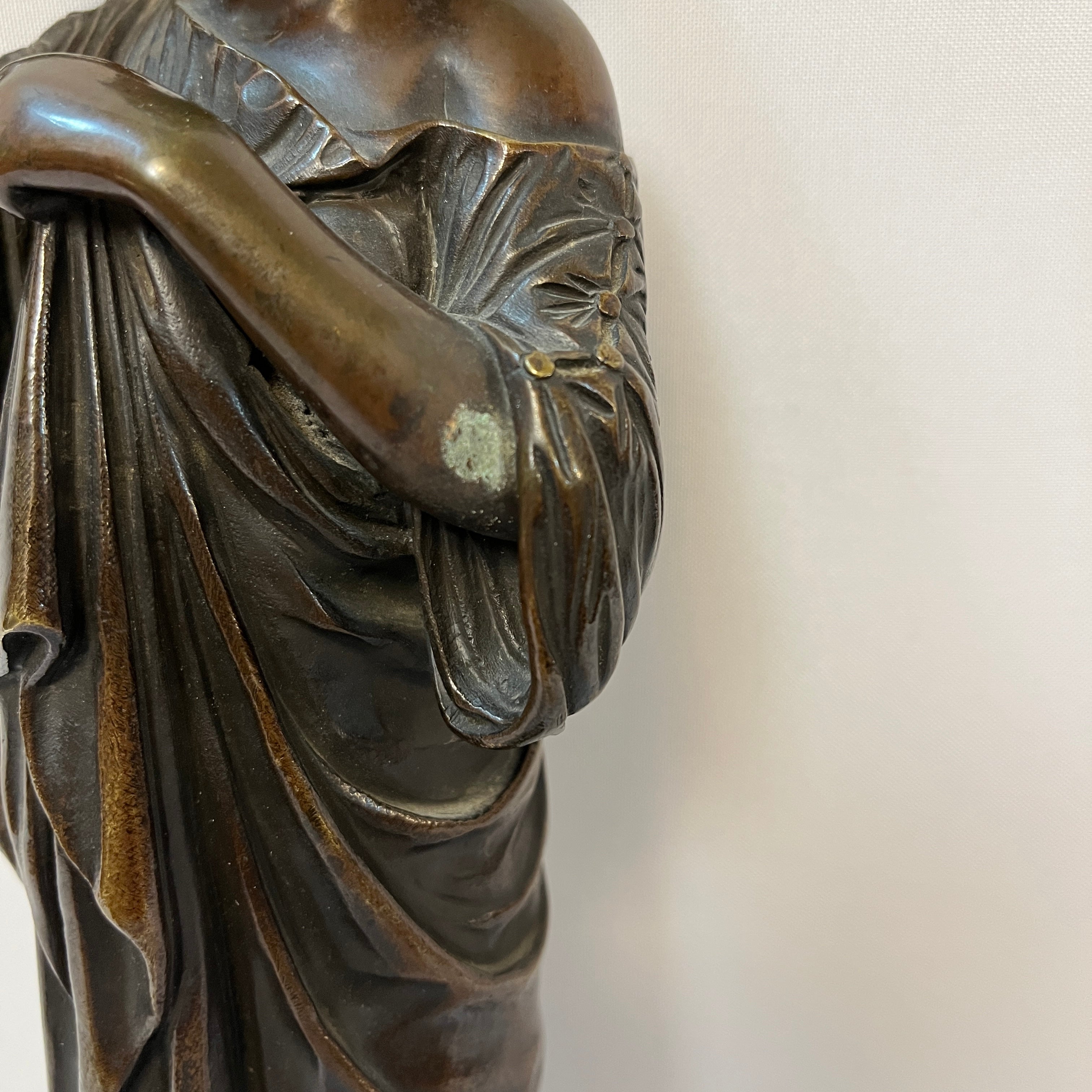 Bronze proof with brown patina. Reduced reproduction of the original 4th century BC sculpture held in the Louvre Museum.