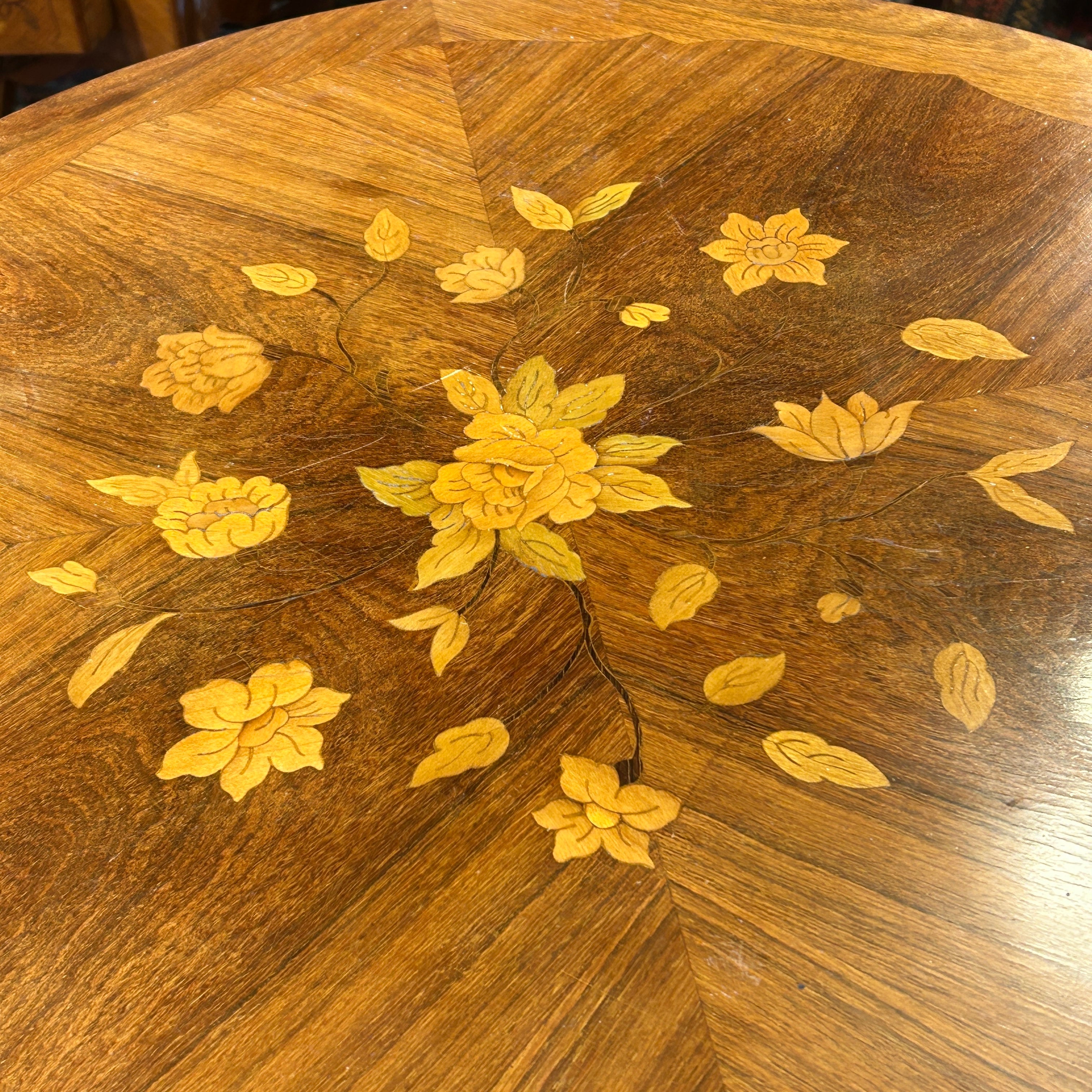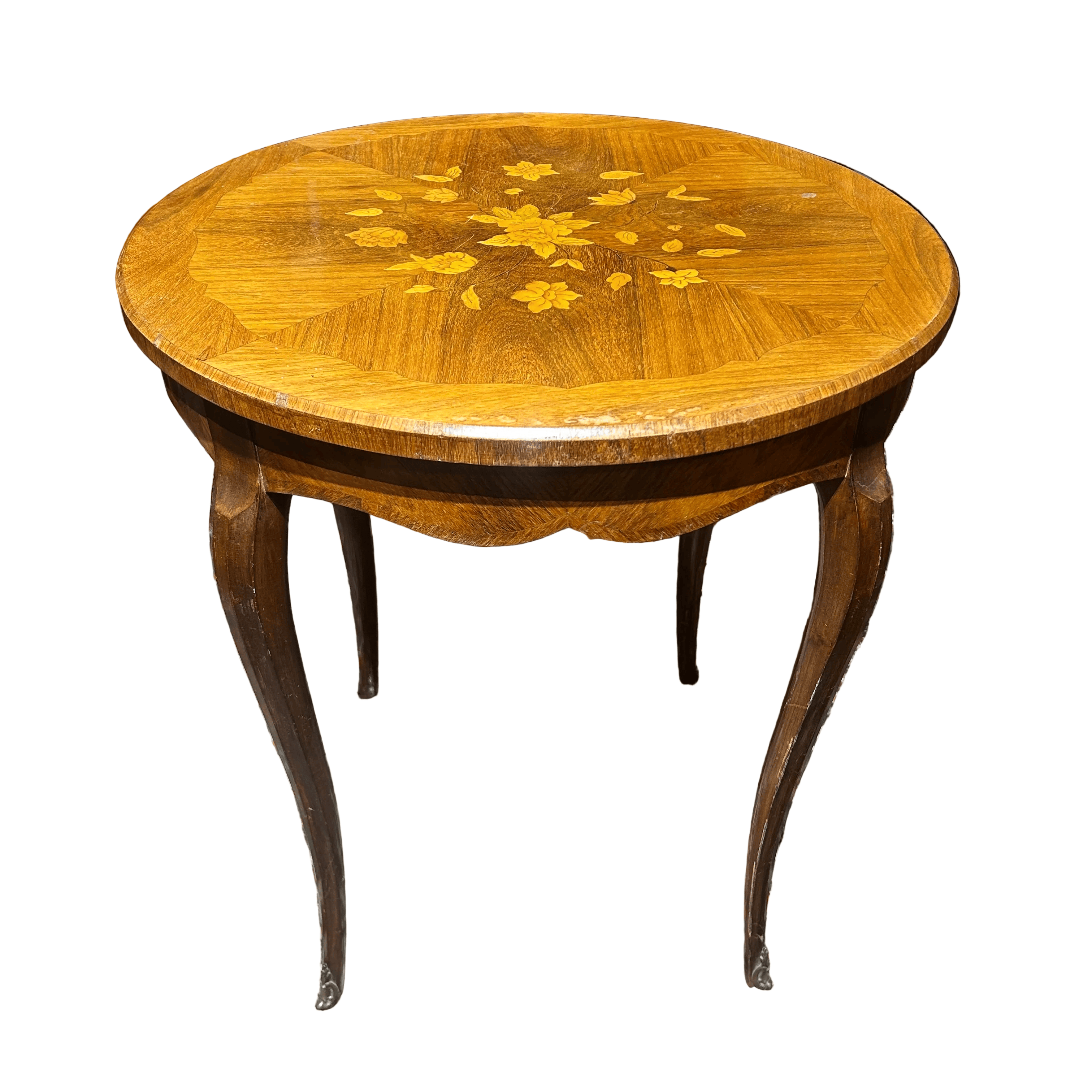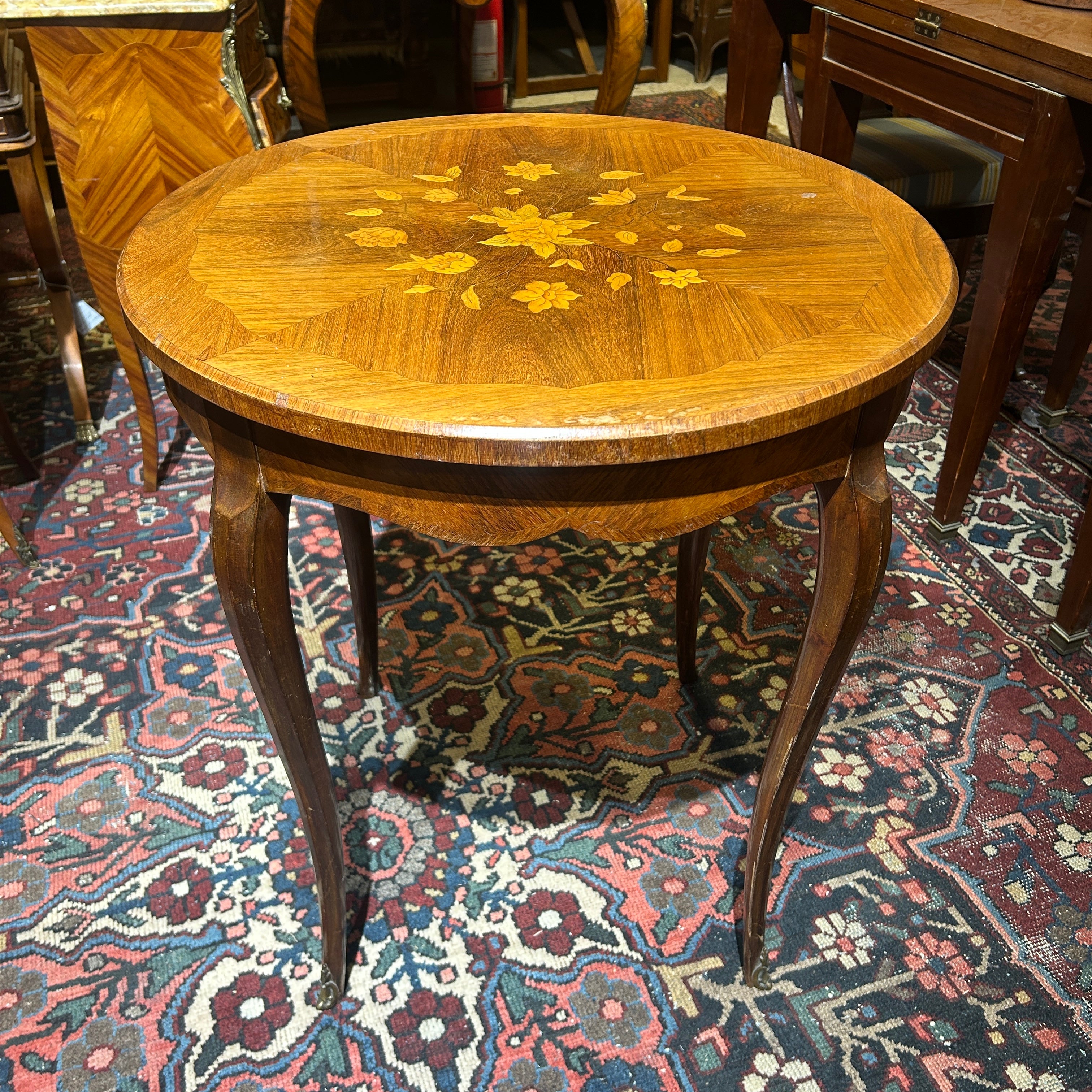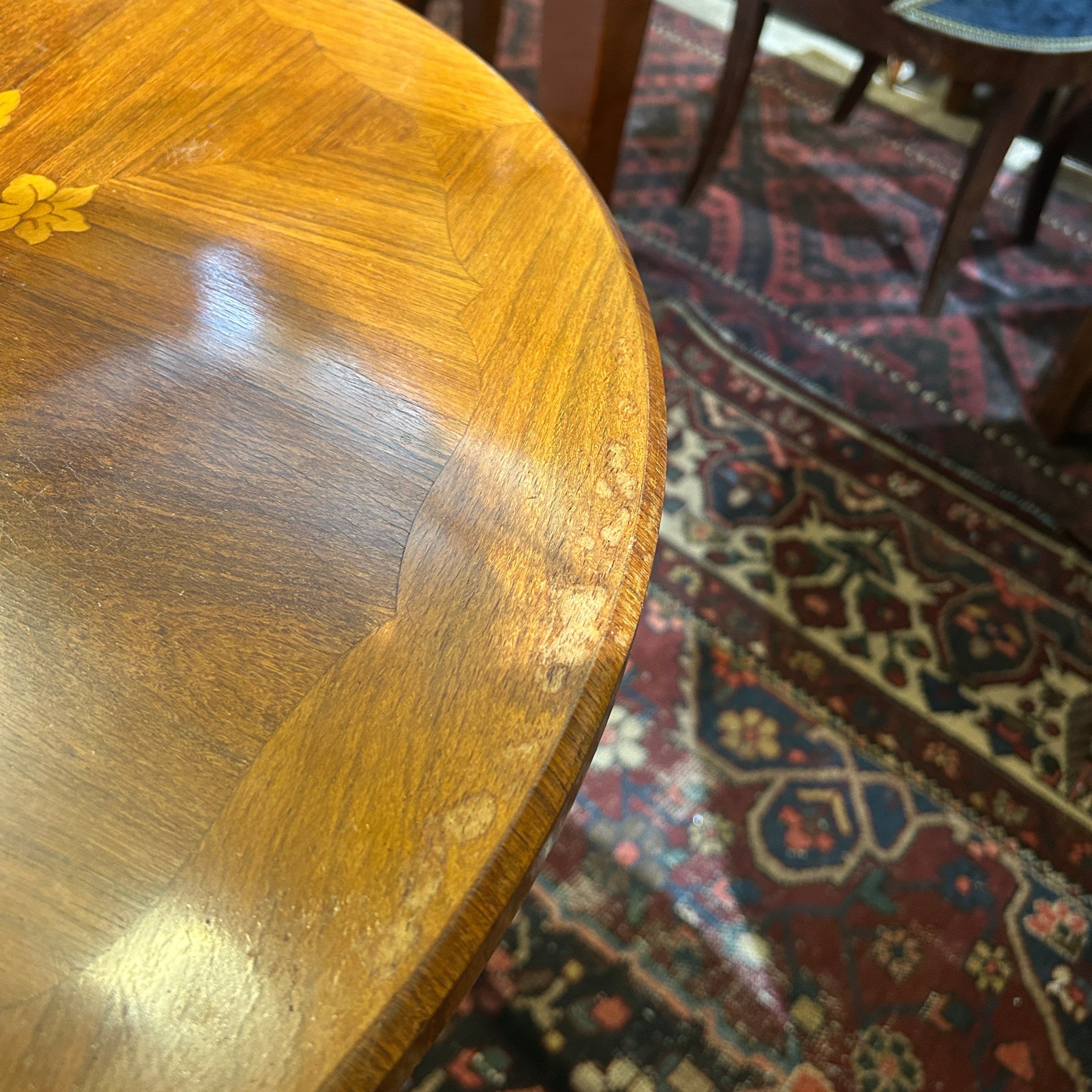 Guéridon Louis XV floral marquetry, bronze and cabriole