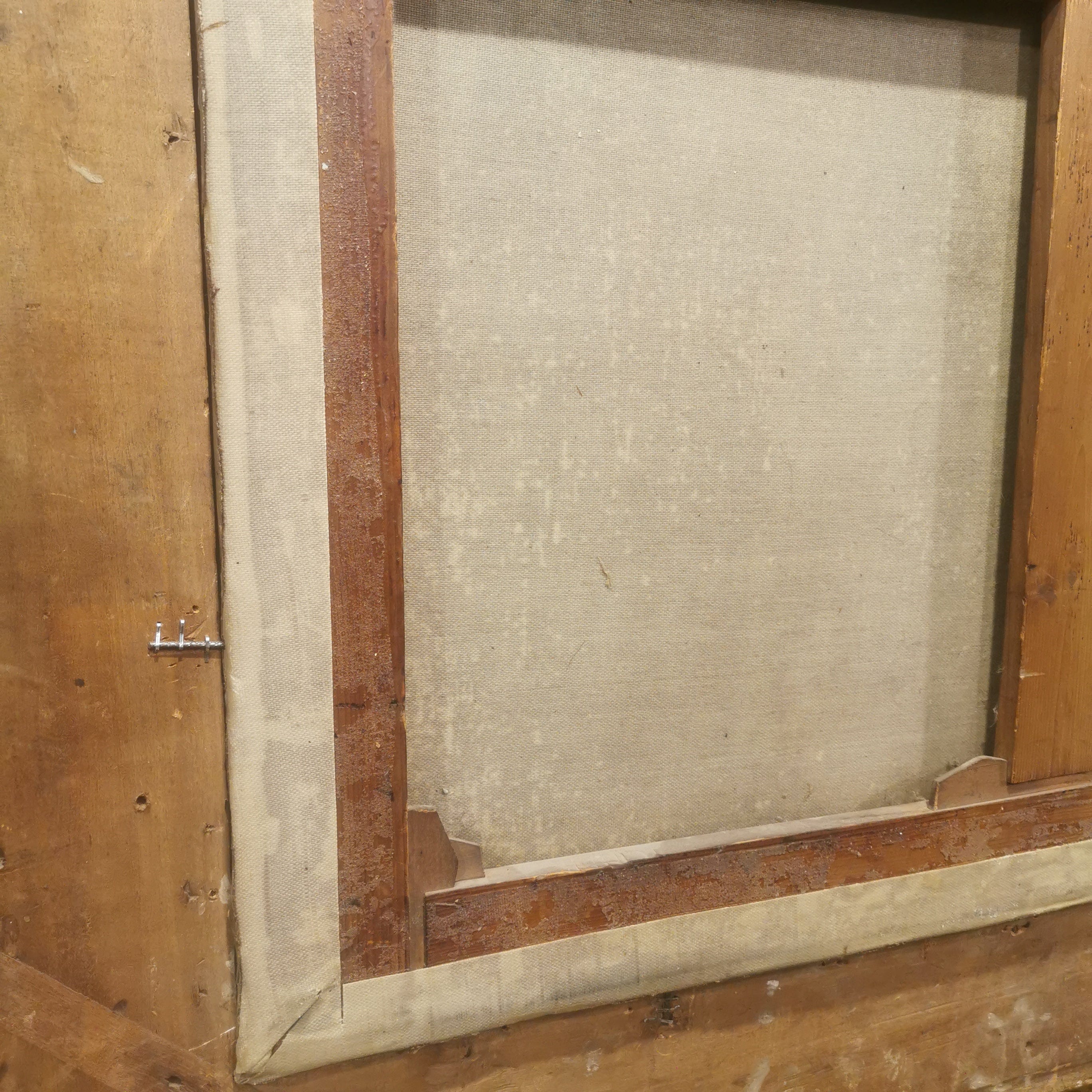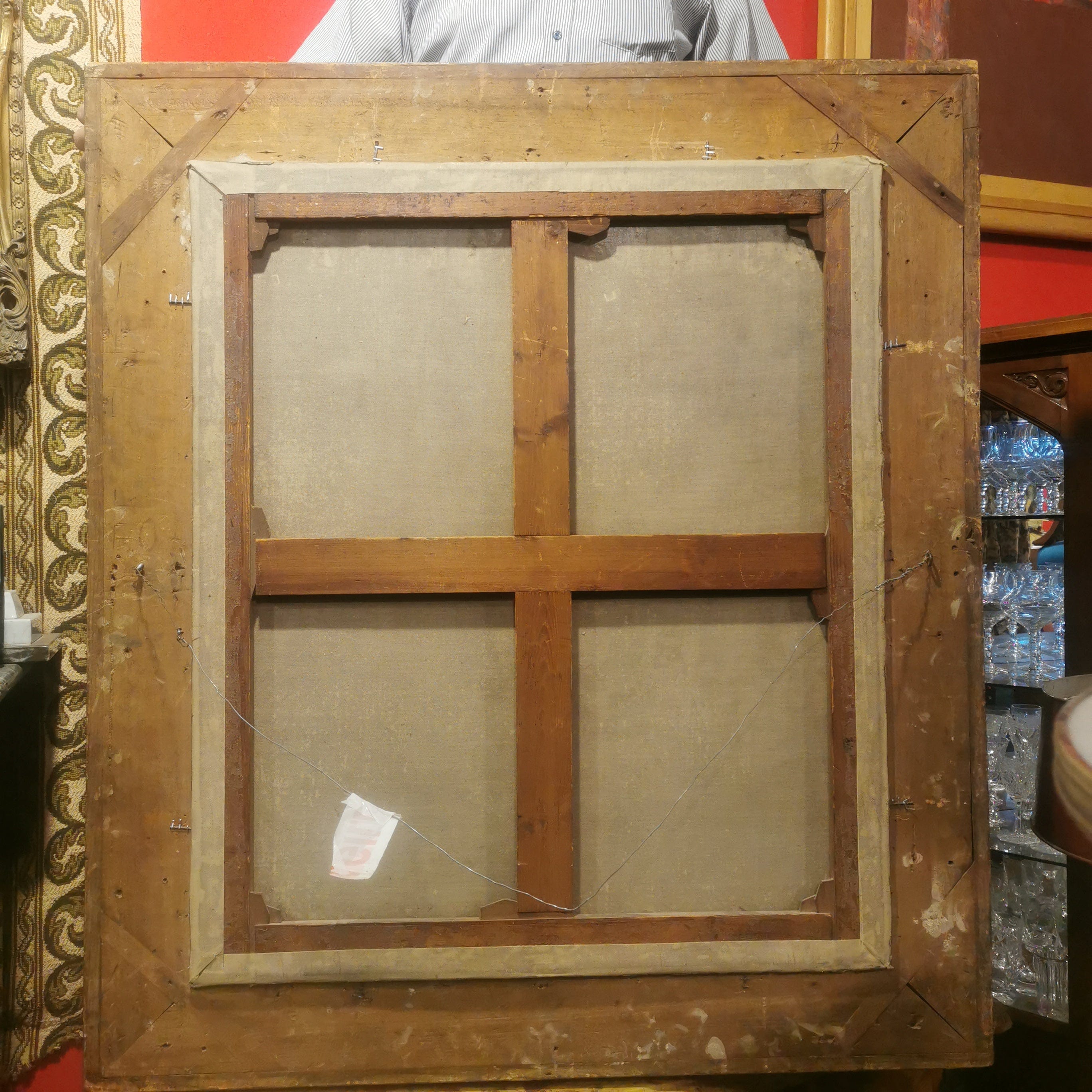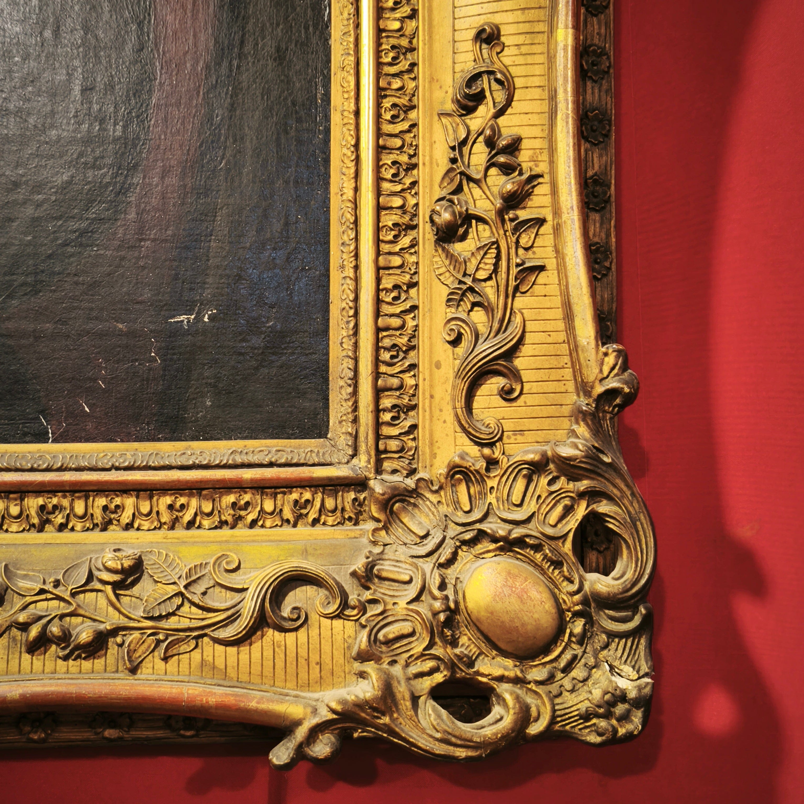 Painting with an imposing carved wooden frame with floral details, painted in gold.