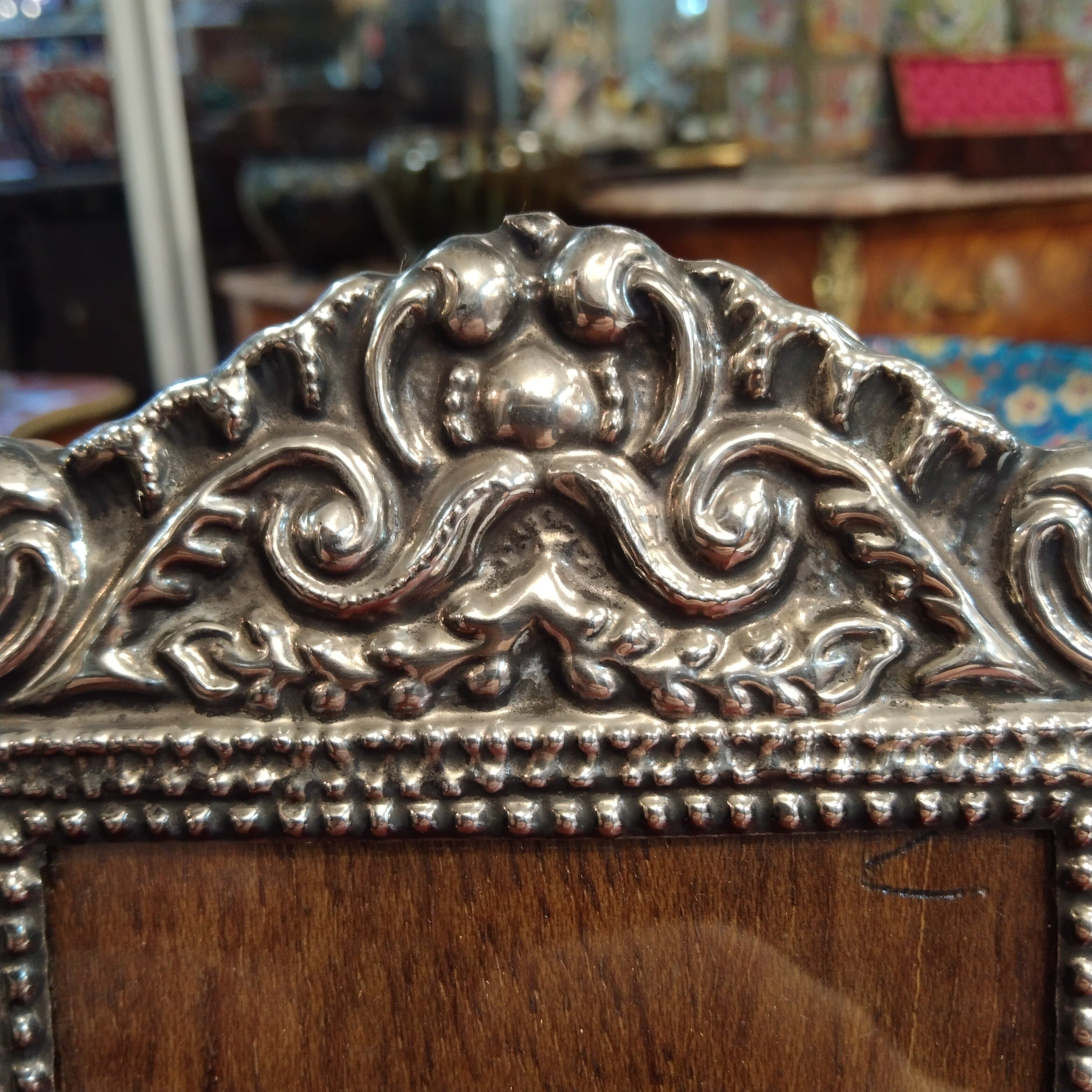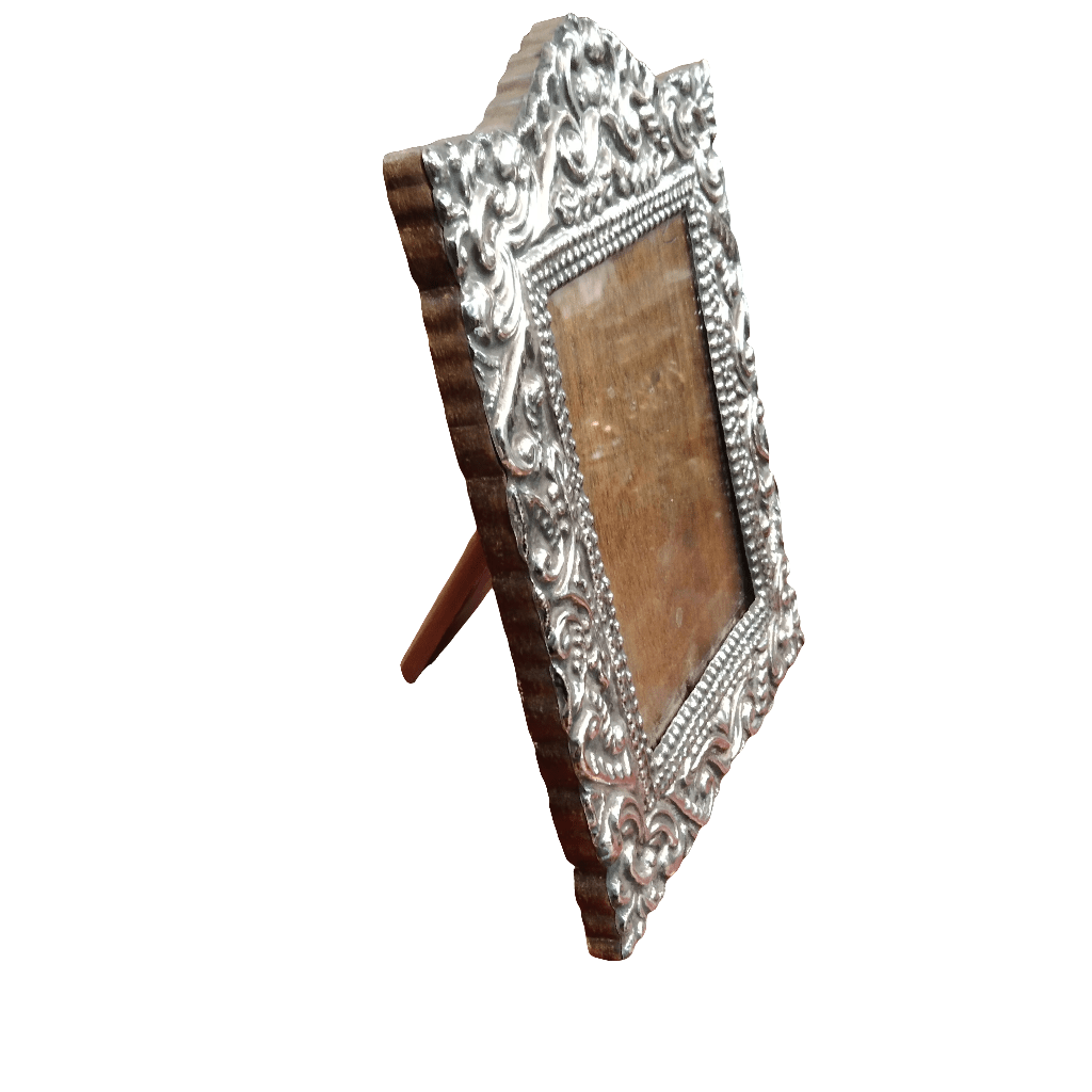 Beautiful handmade picture frame made of Peruvian silver-plated wood with delicate reliefs.