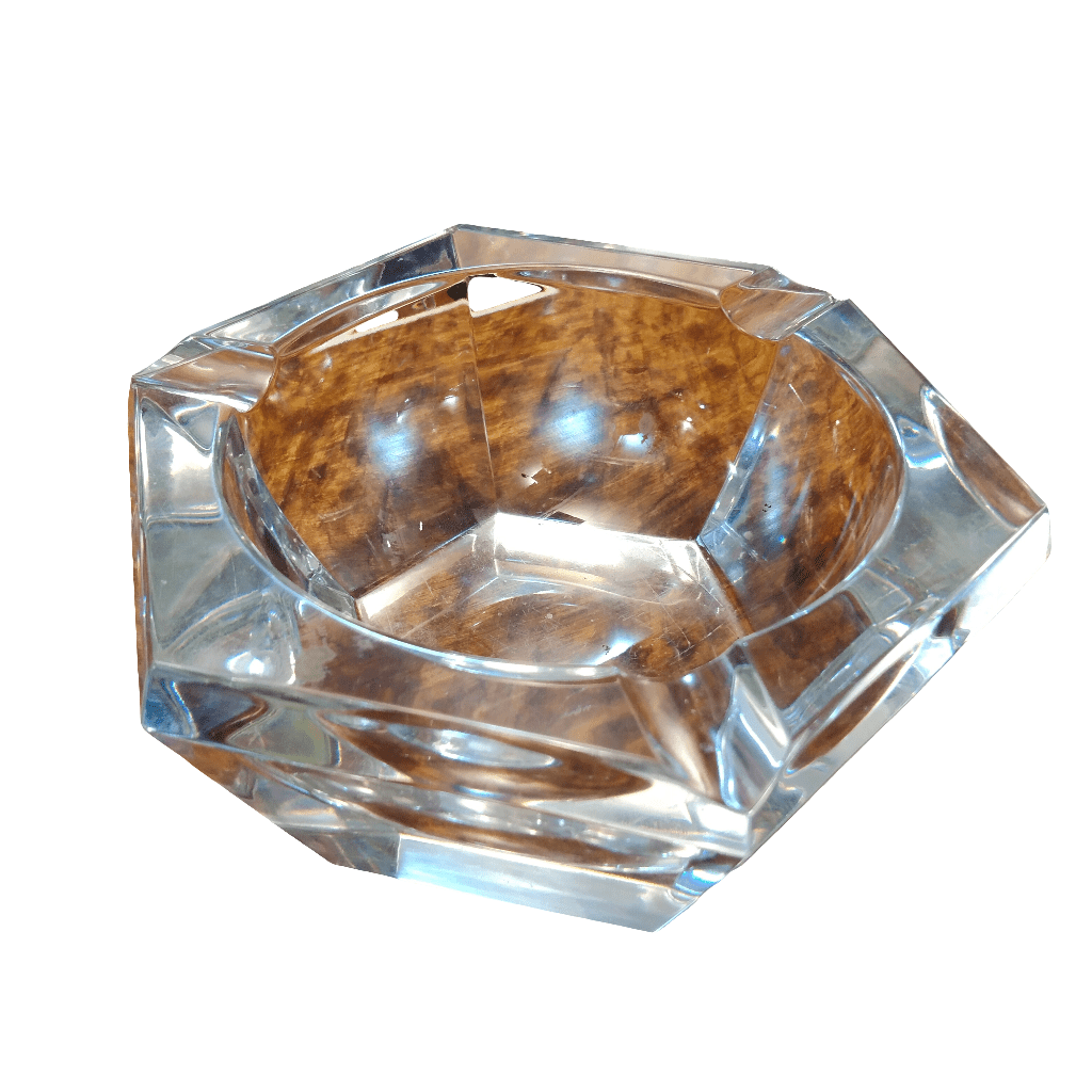 Bello cenicero de cristal de la reconocida marca belga Val Saint Lambert, de diseño hexagonal.