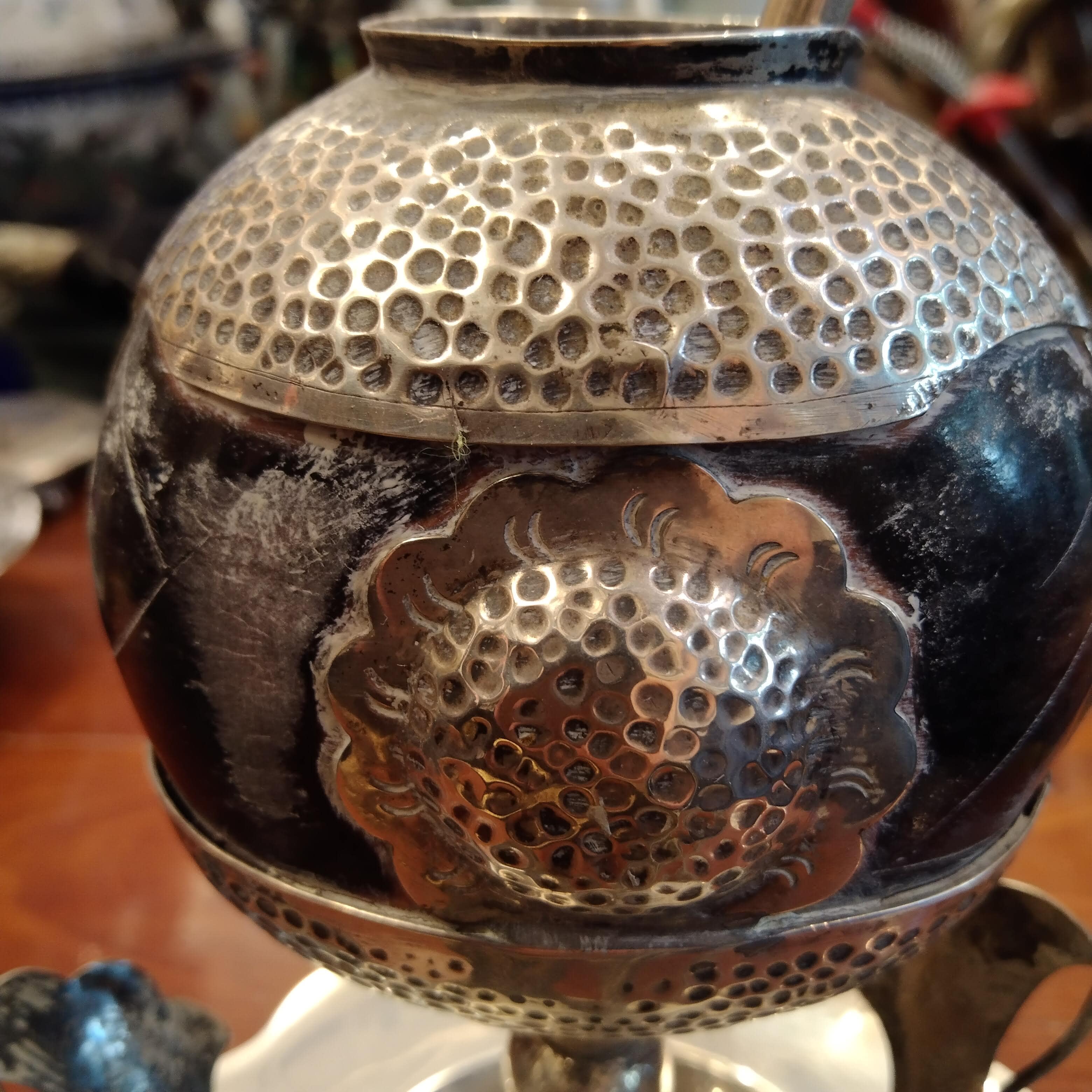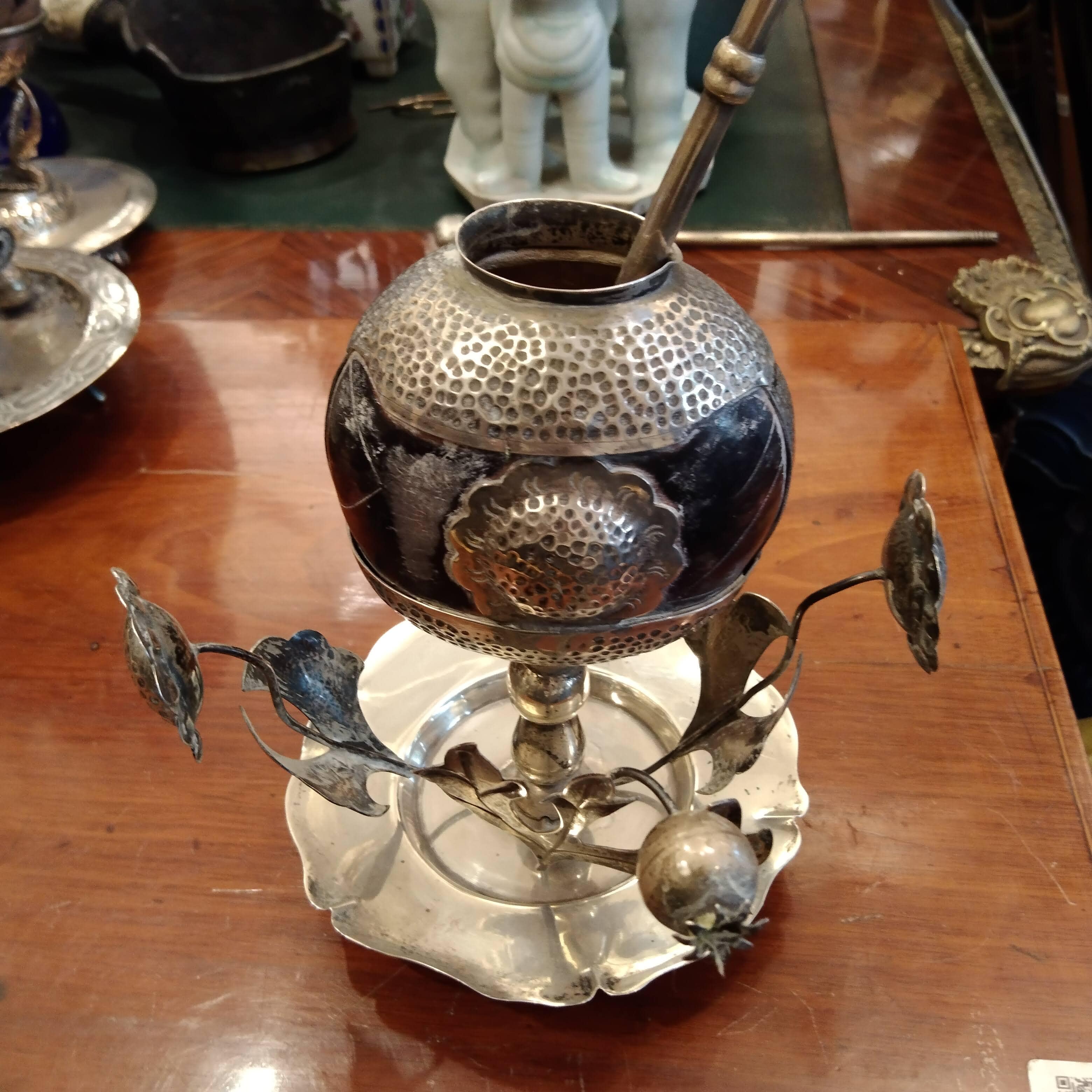 Mate de plata y calabaza chileno antiguo aplicaciones de granadas y flores