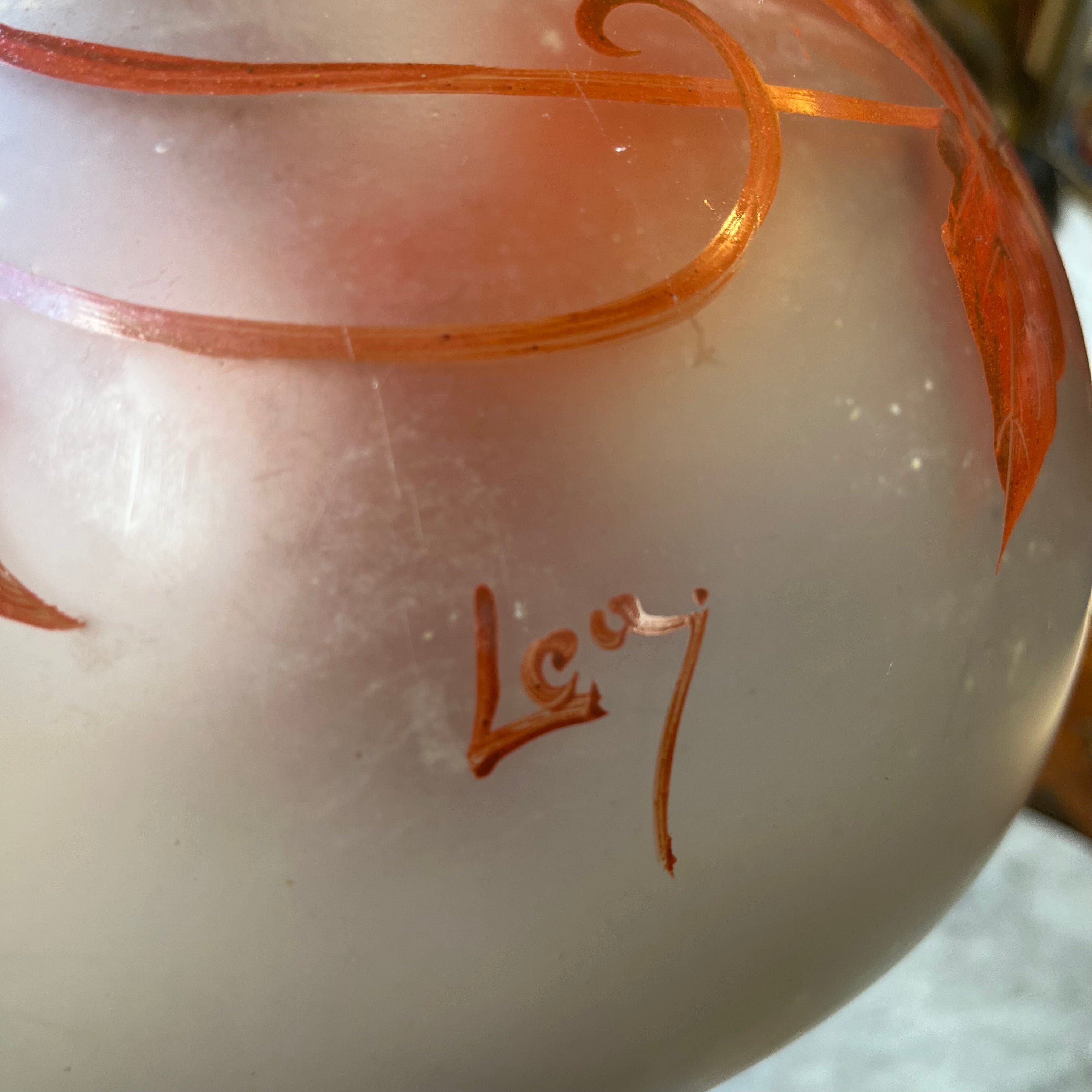 Jarrón redondo vidrio firmado flores rojas 'Legras'