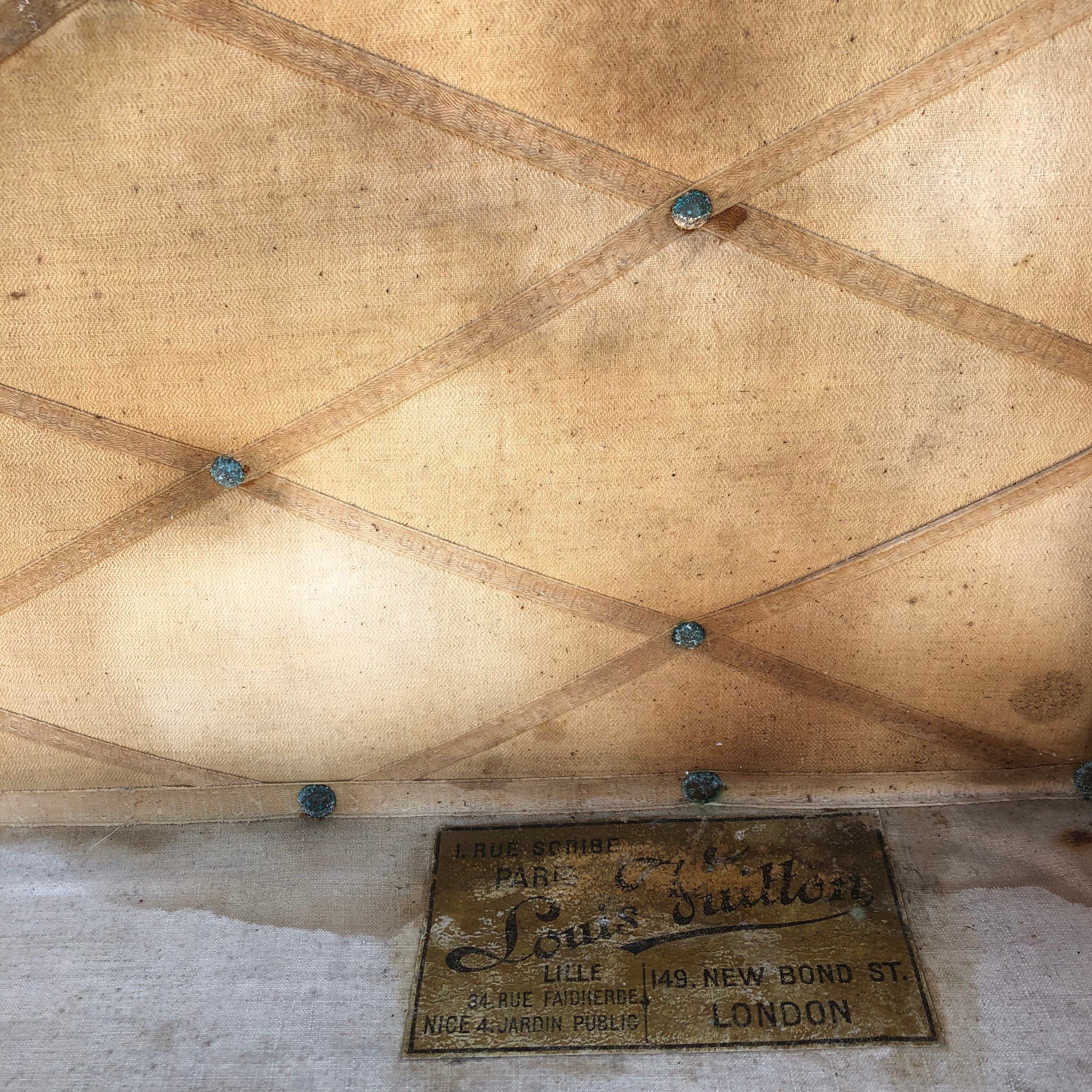 De los primeros diseños de sus bolsos y maletas, cada pieza está marcada con las iniciales o nombre de Louis Vuitton. Objeto de colección.