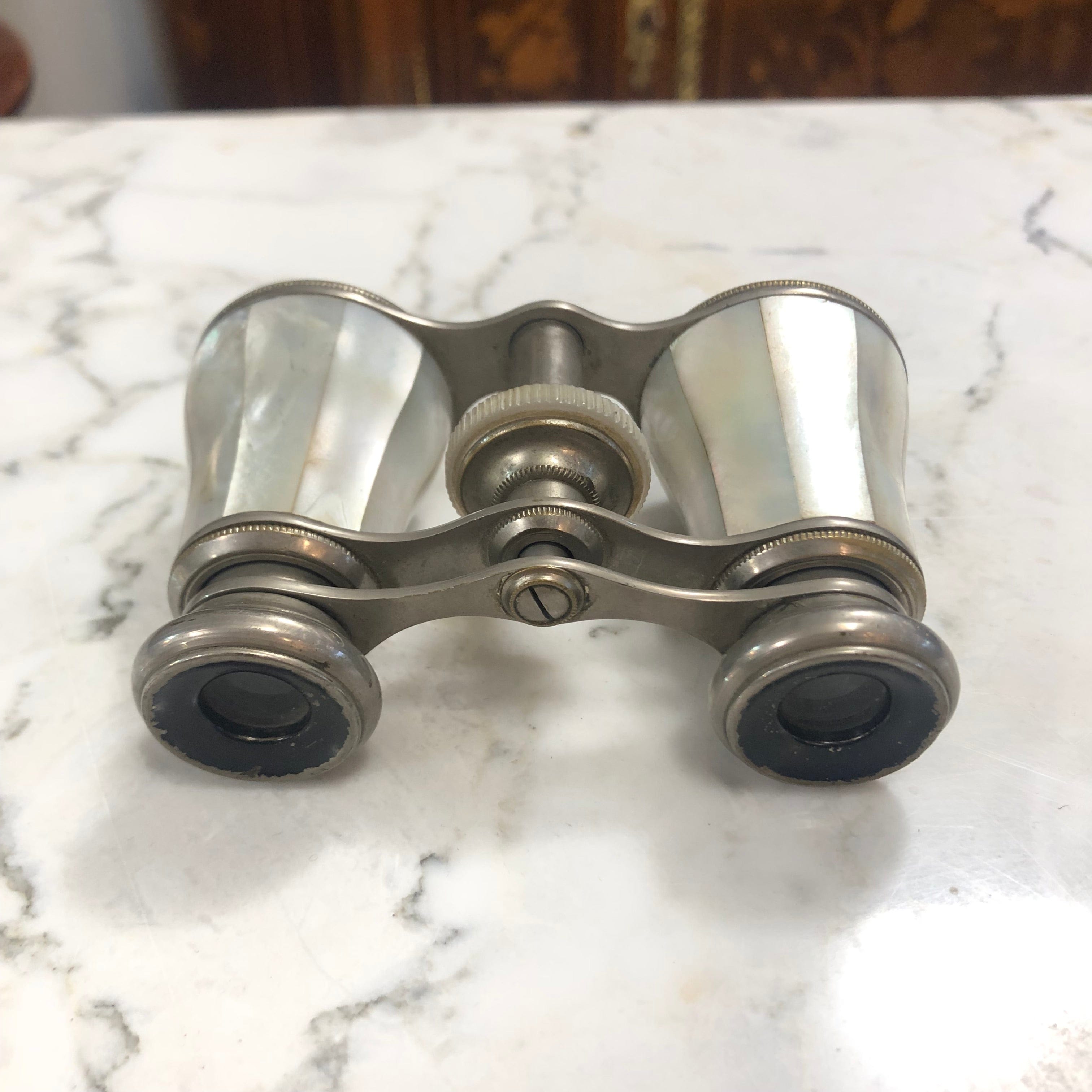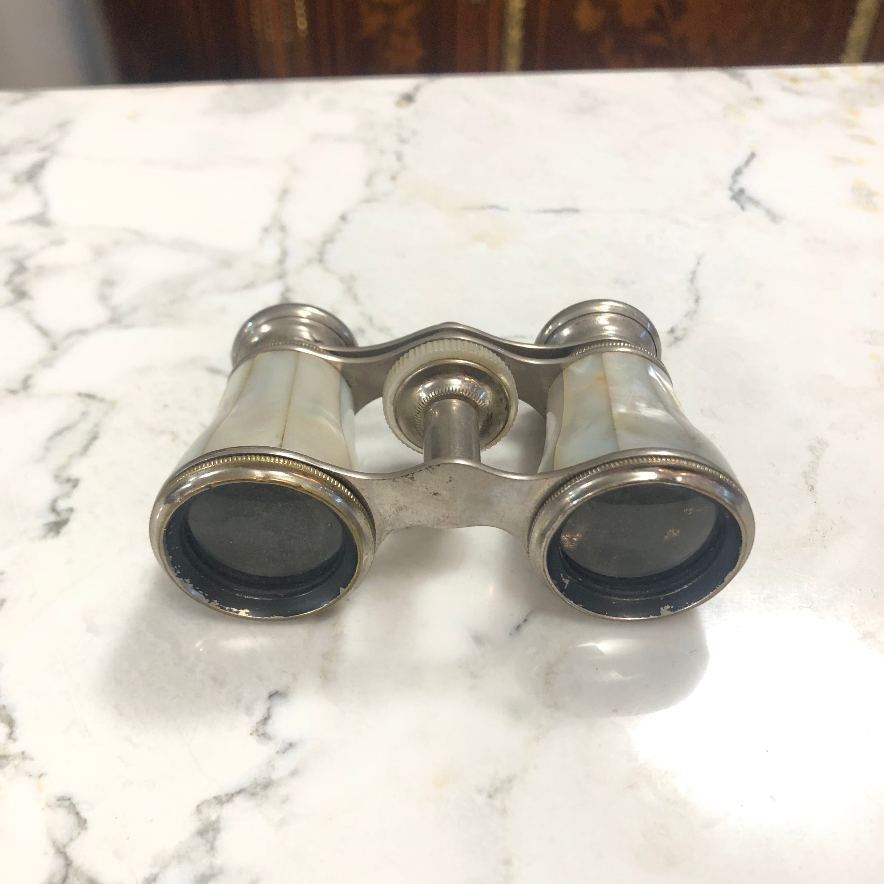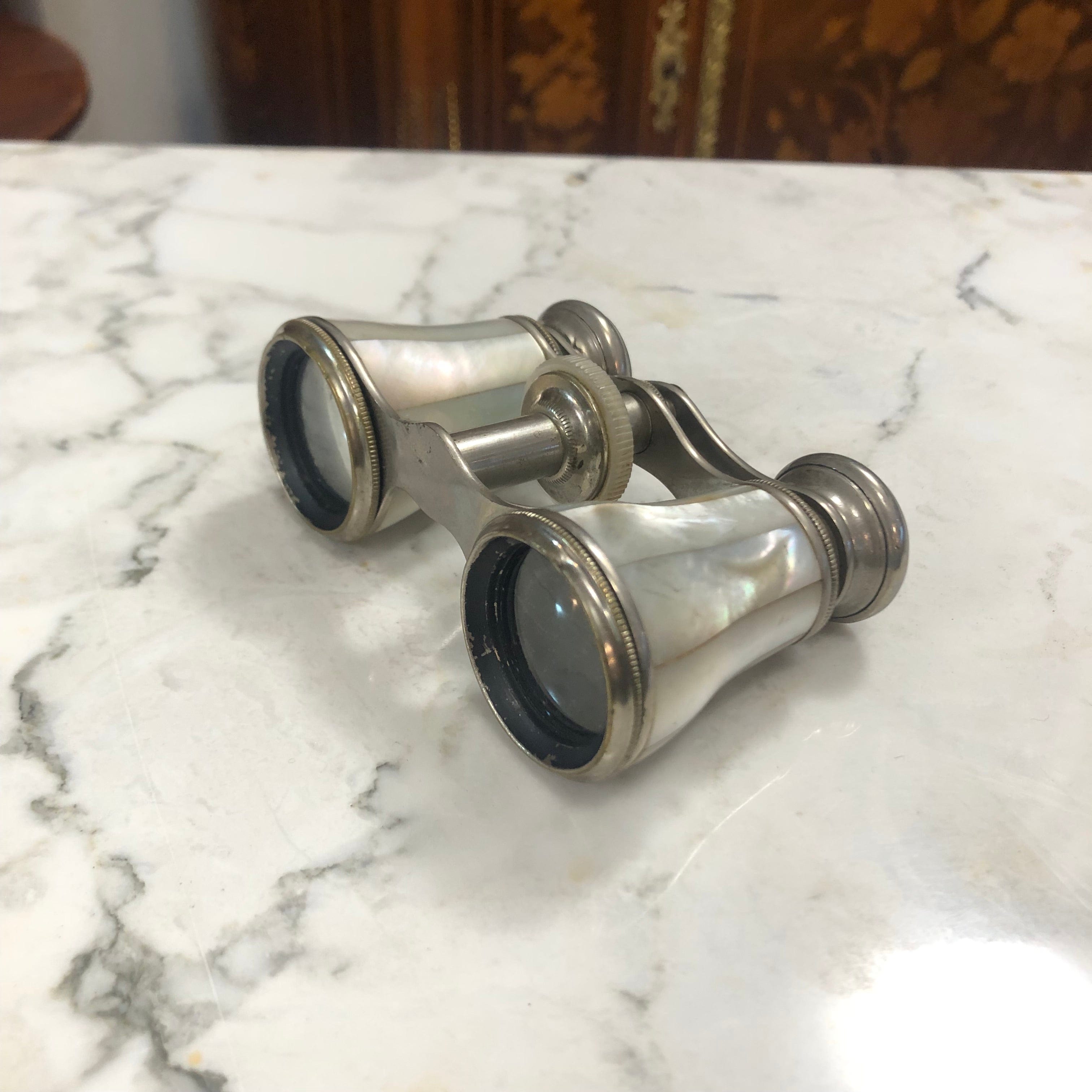 Hermosos binoculares prismáticos de metal y nácar utilizados para ver Ópera.