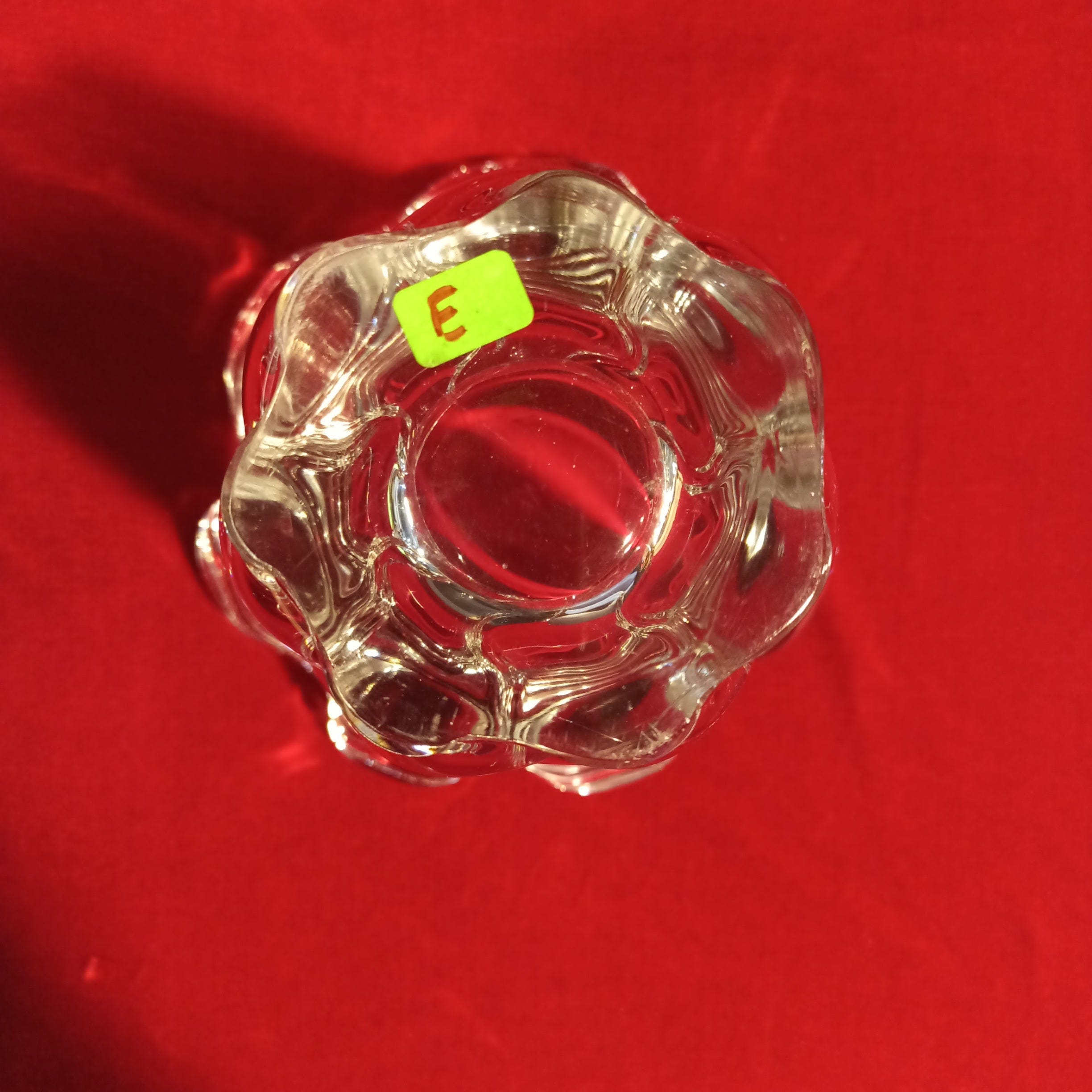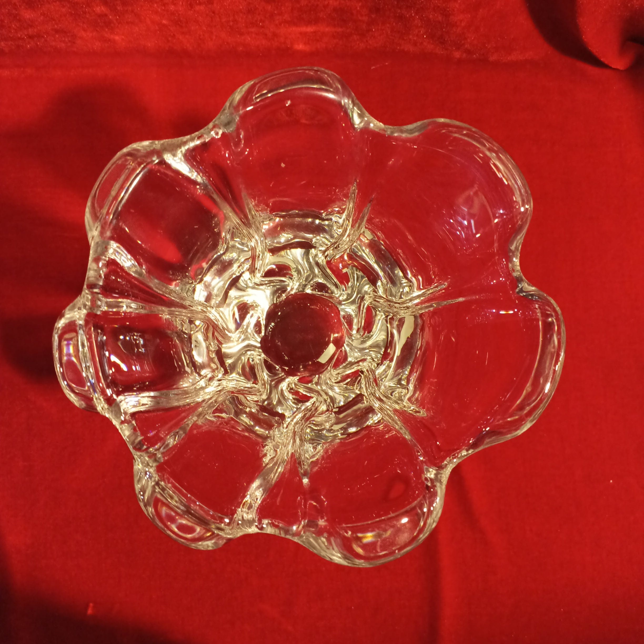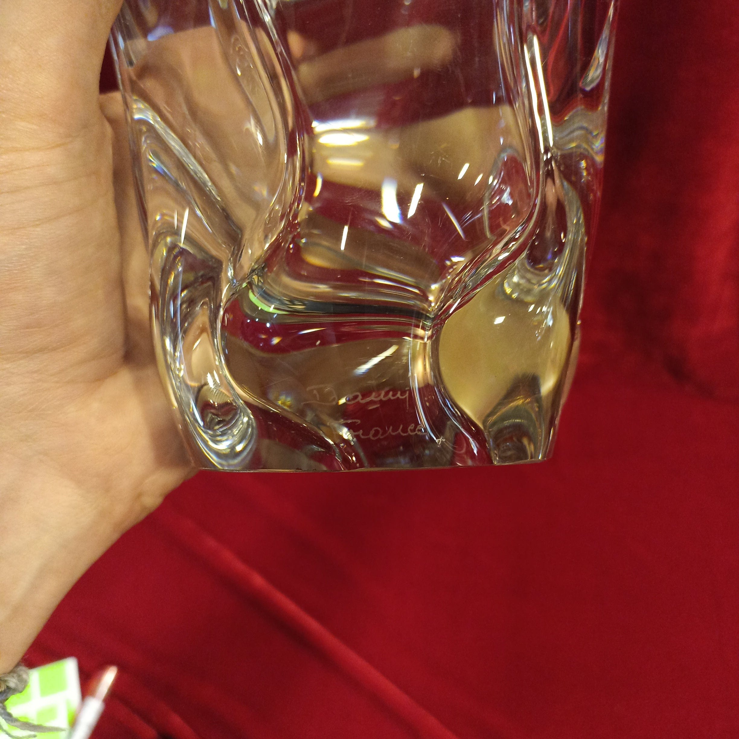 Elegante centro de mesa firmado Daum, con diseño floral curvo.