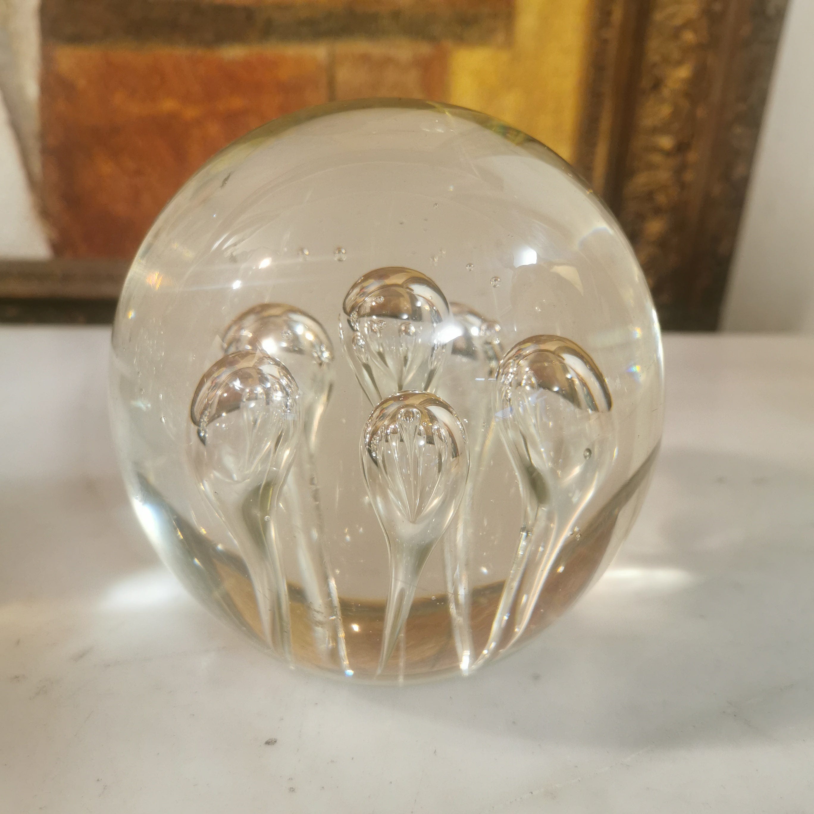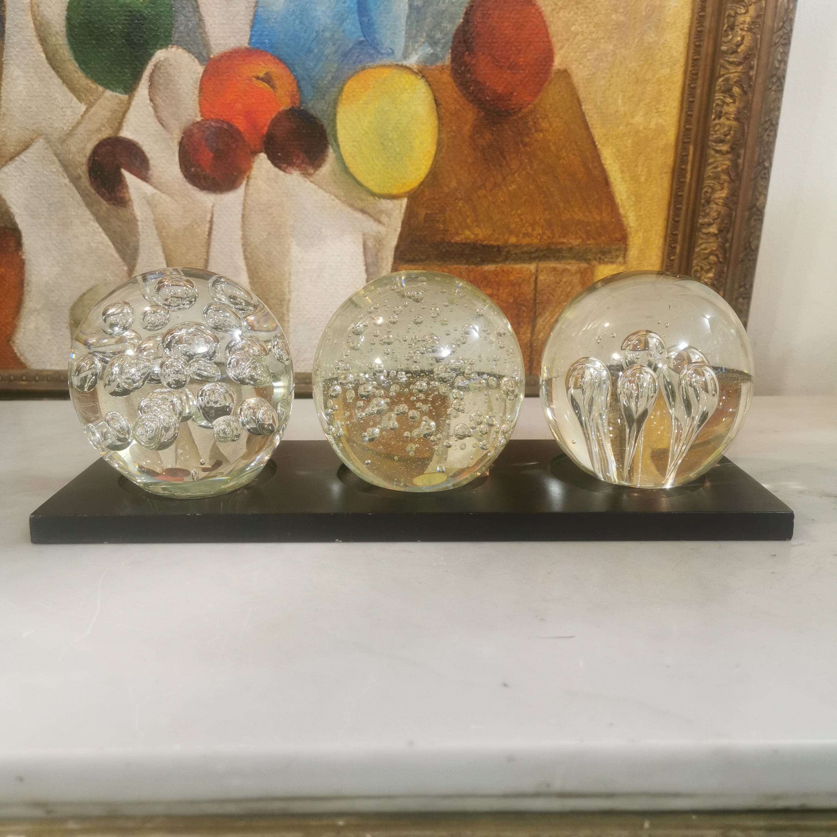 Conjunto de tres pisapapeles de vidrio soplado