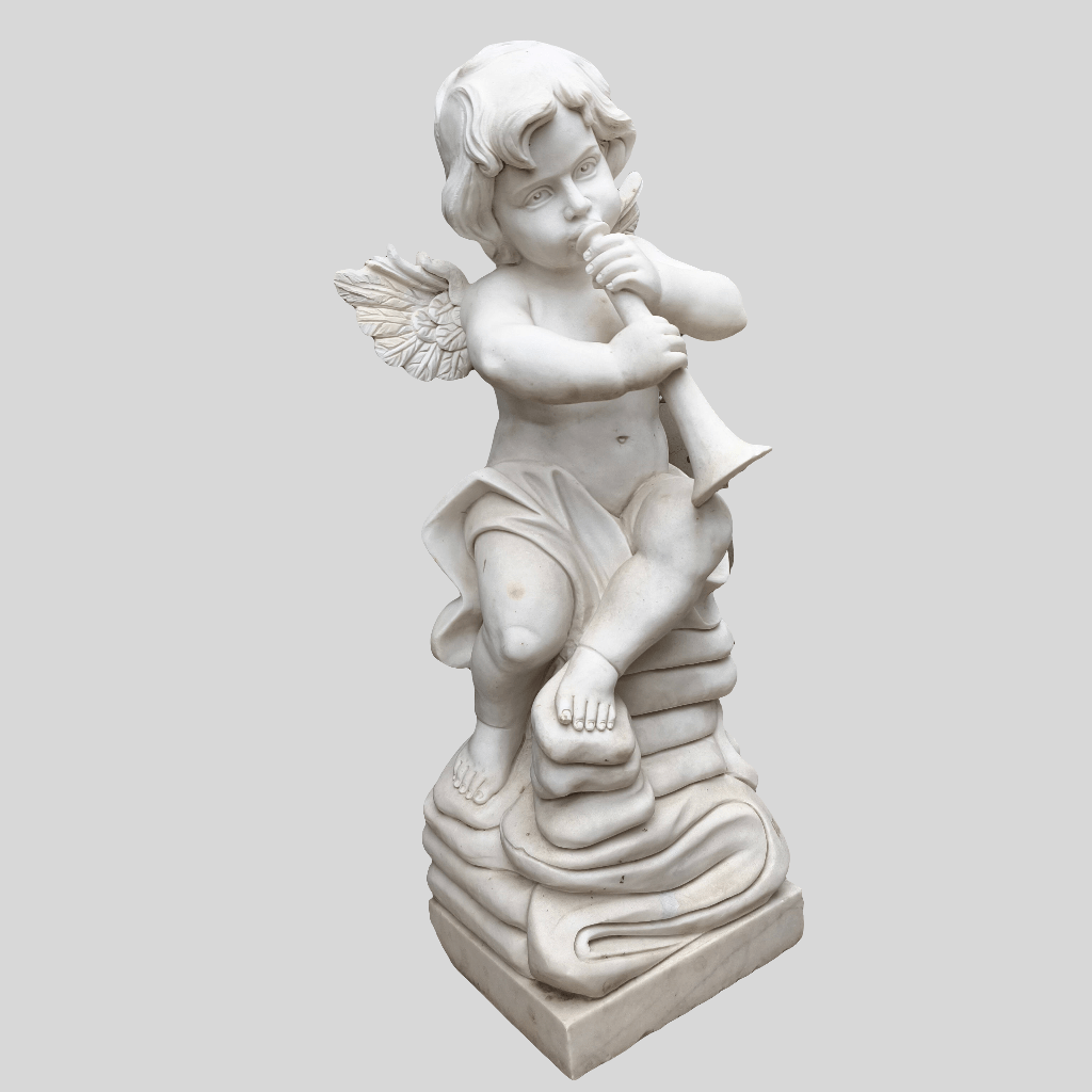 Escultura Ángel con trompeta en piedra mármol