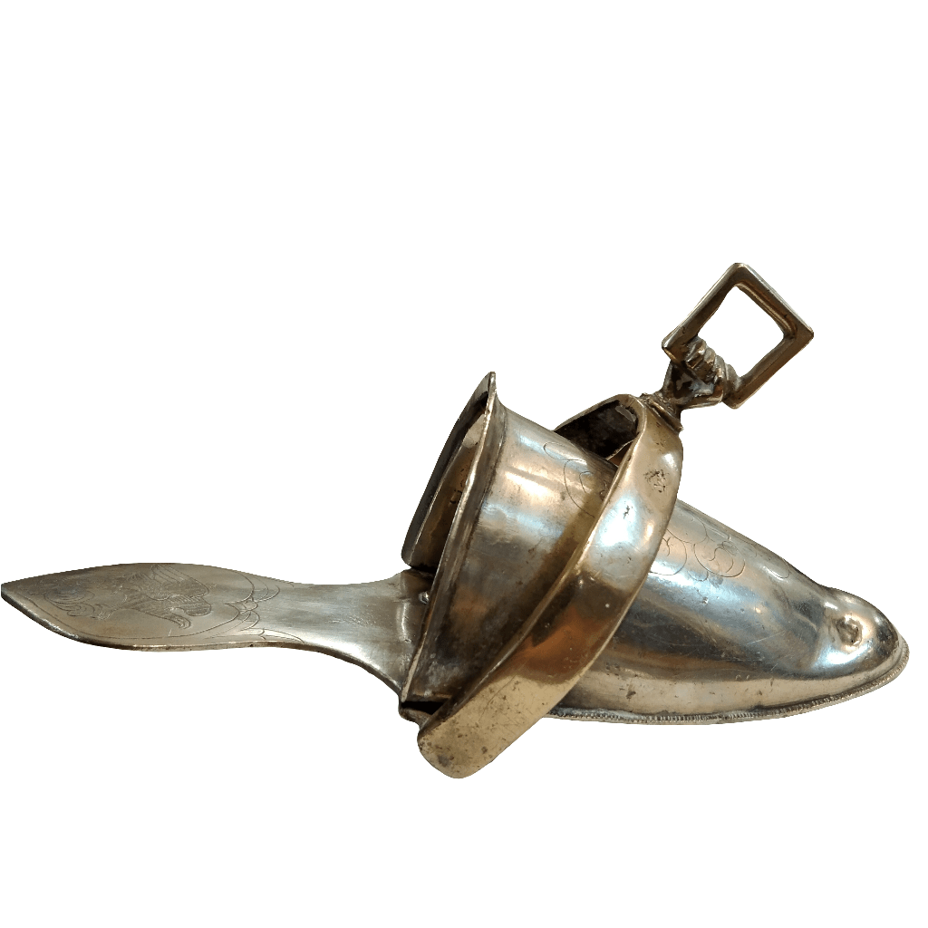 Increíble estribo antiguo, hecho de plata, con un bello y sobrio diseño, con tallados a mano, representando un águila y motivos florales, y una hebilla con forma de puño.