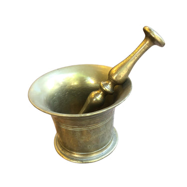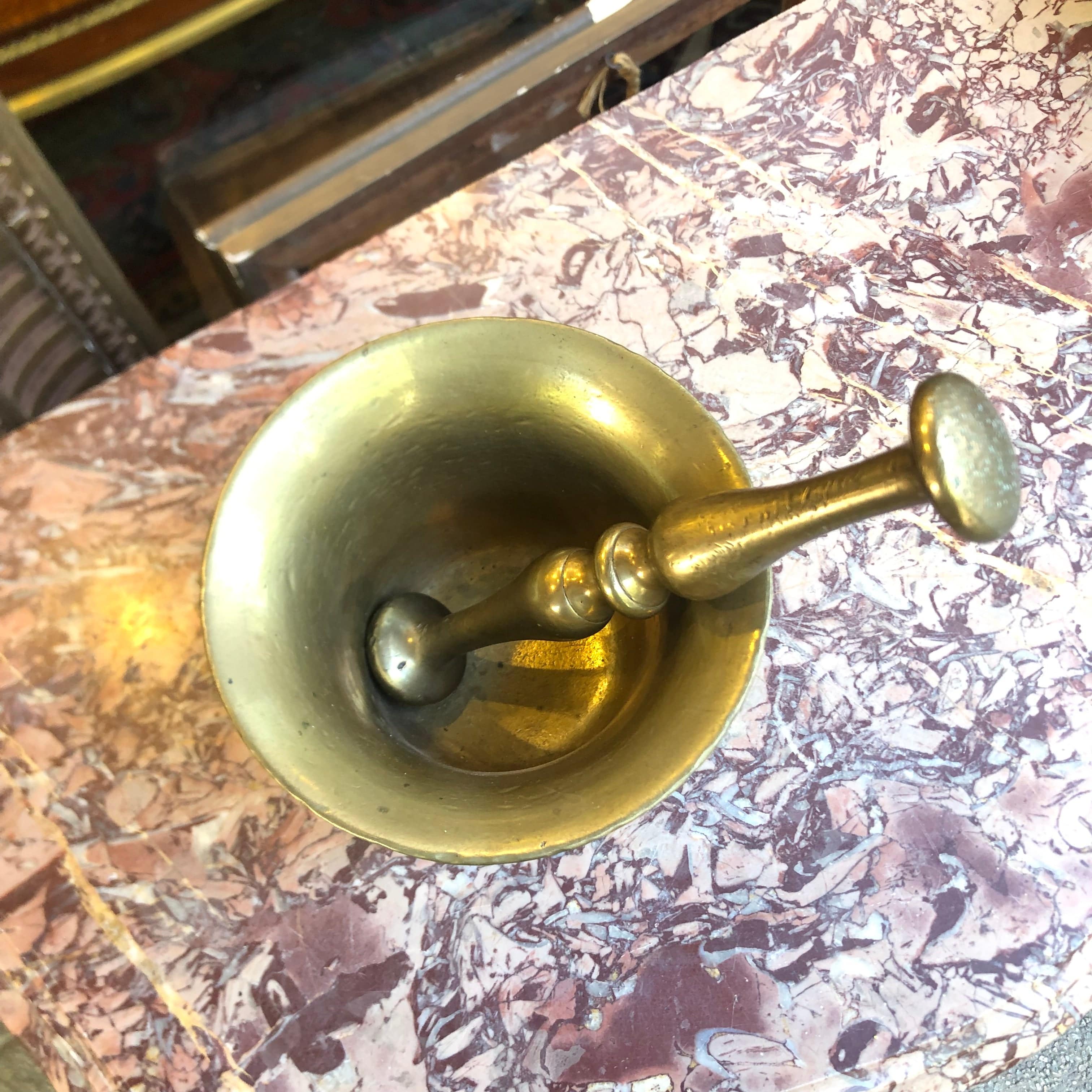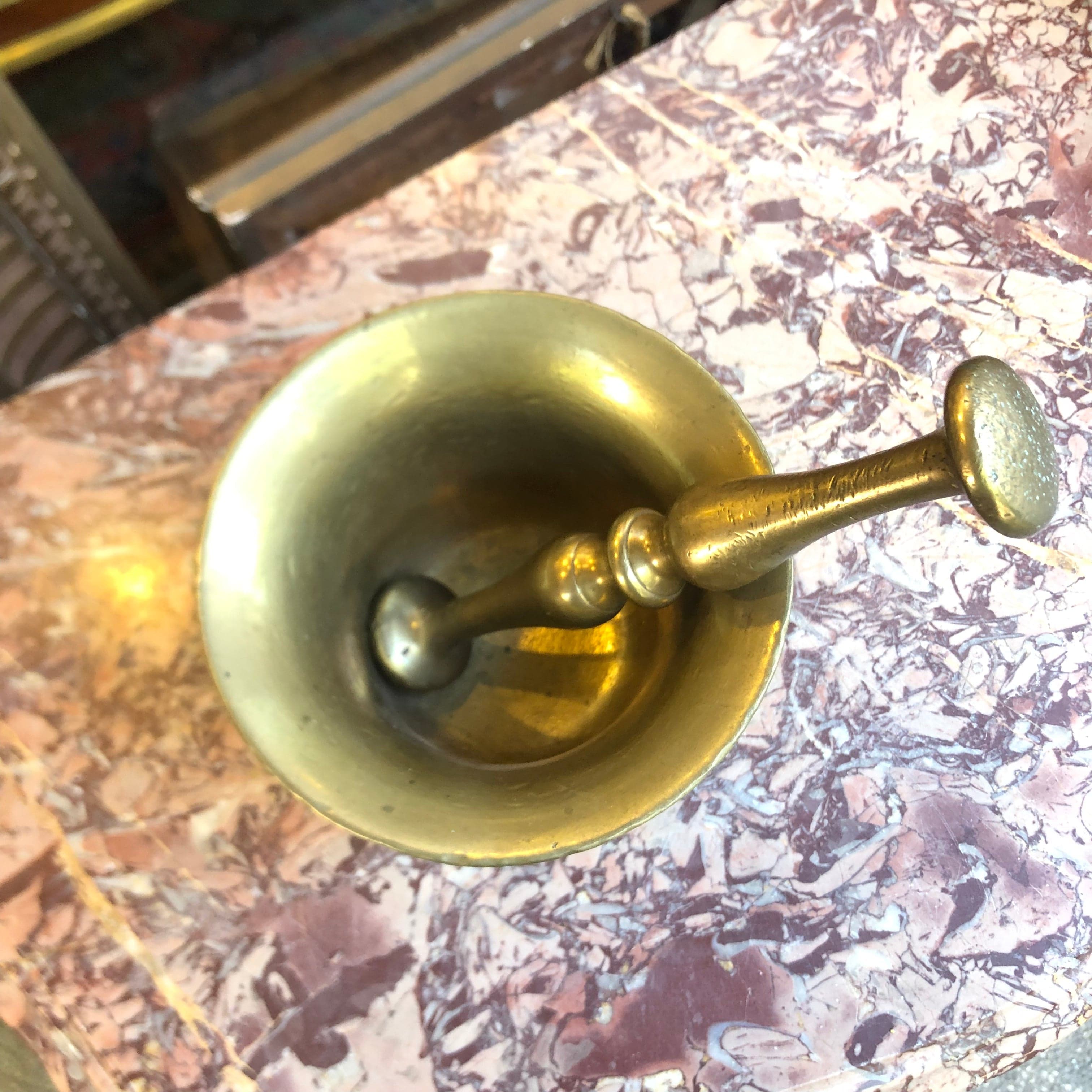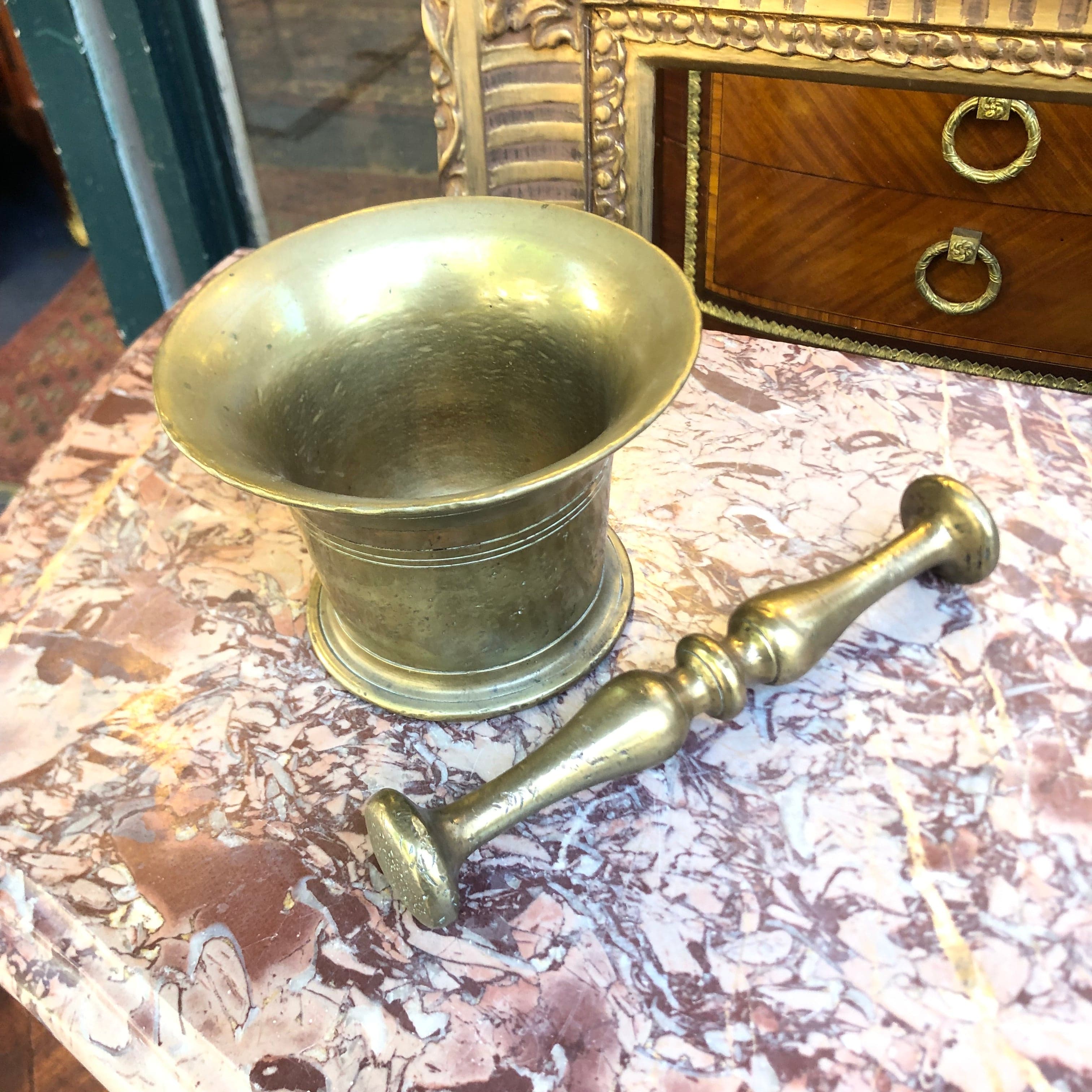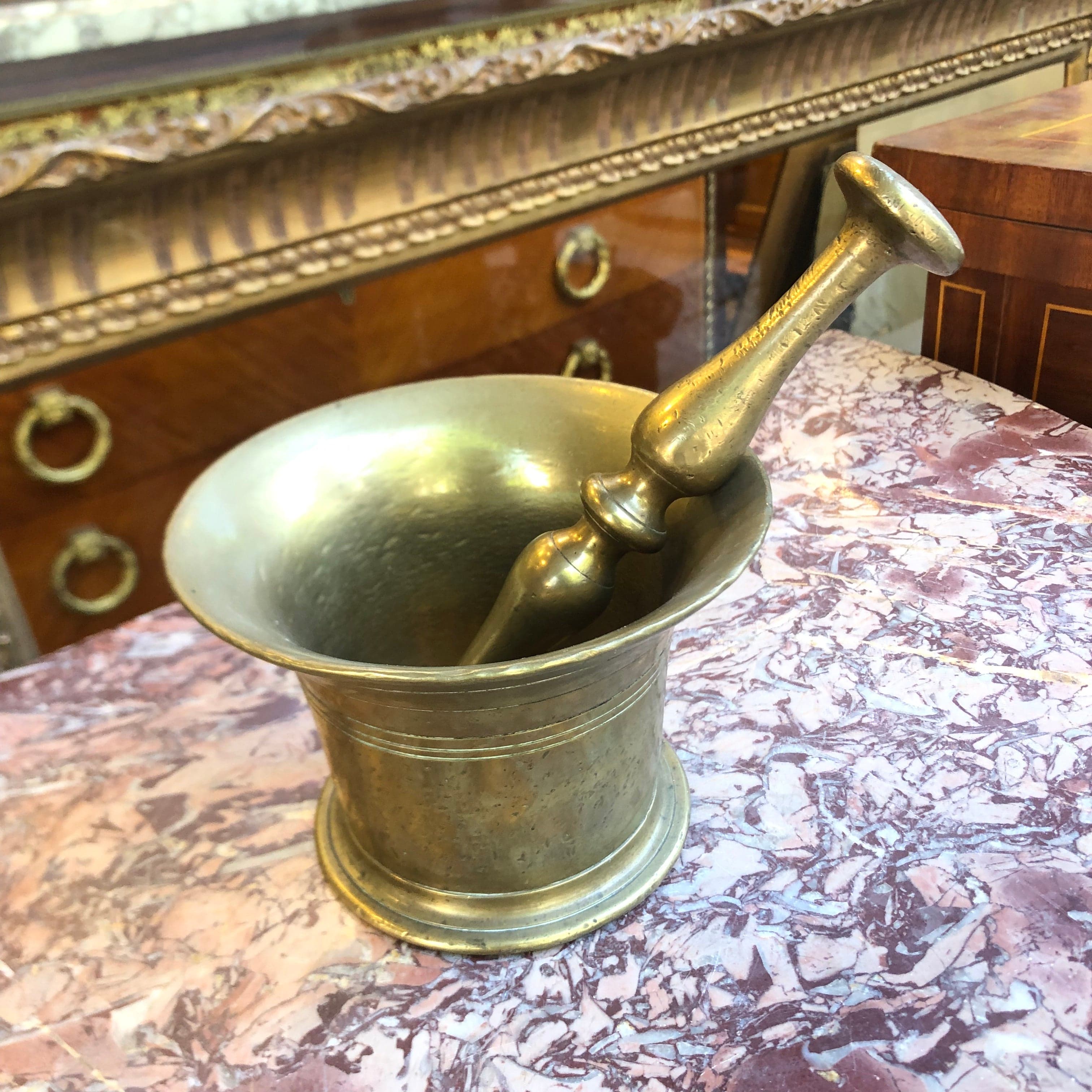 Hermoso y gran mortero de bronce, con un hermoso diseño en forma y tallado.