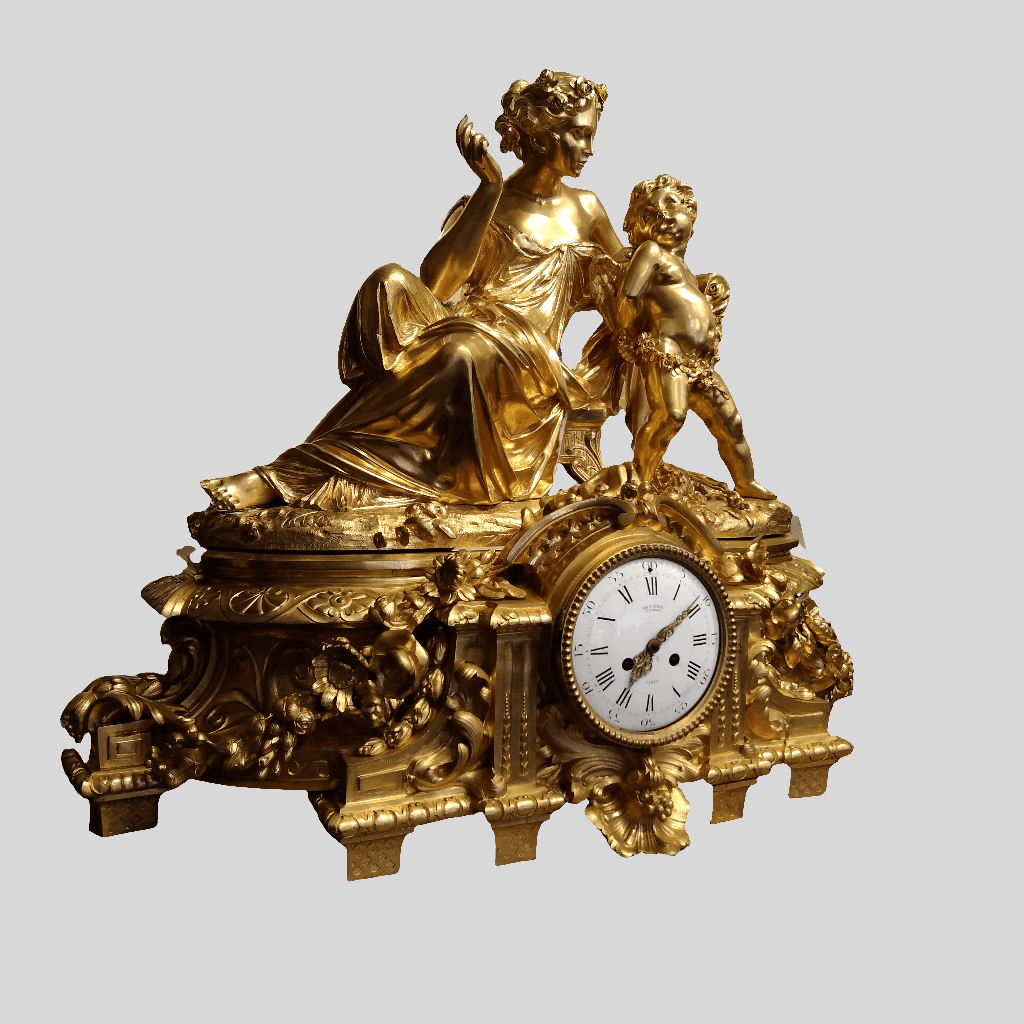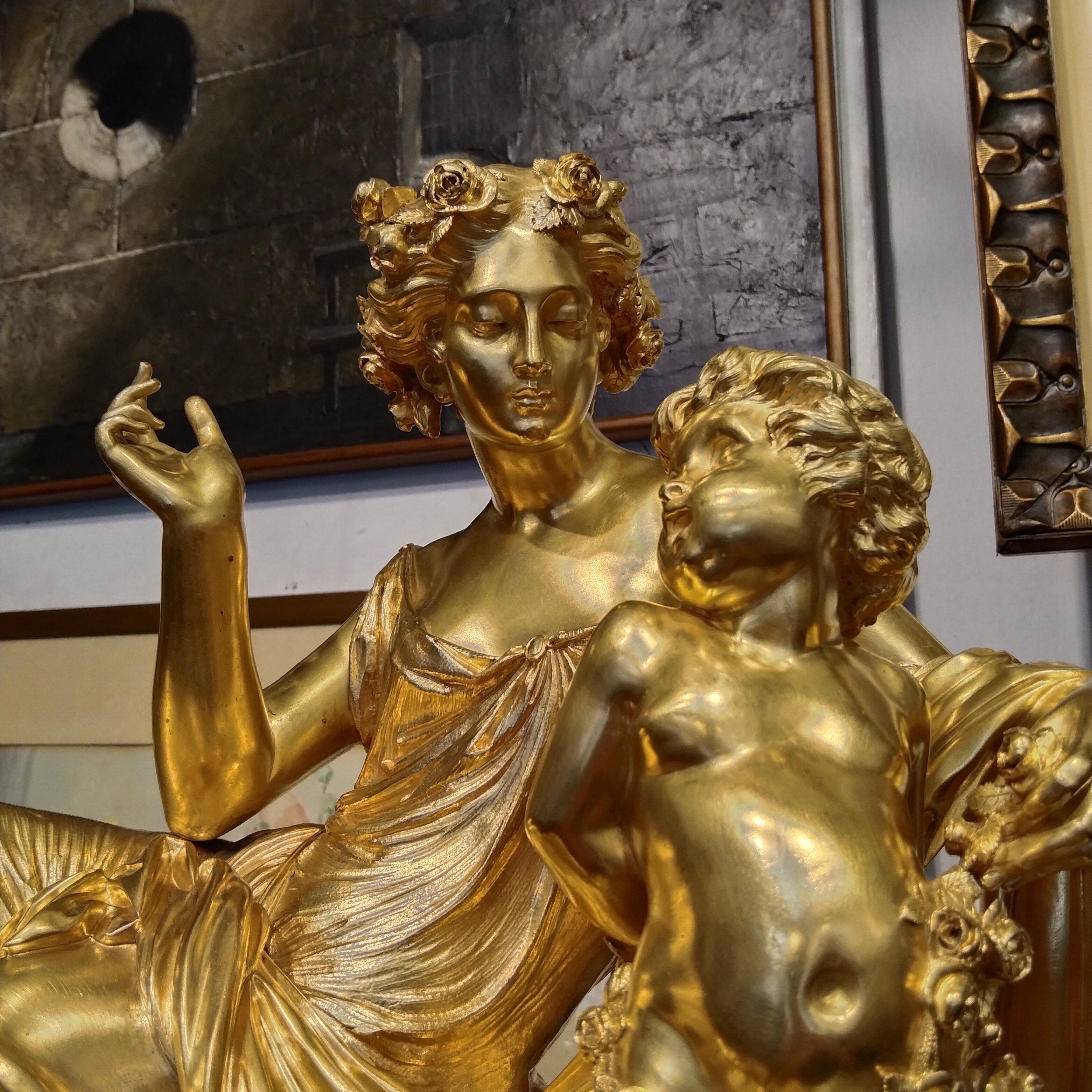 Gran reloj francés de bronce ormolú 'Venus desarmando a Cupido'
