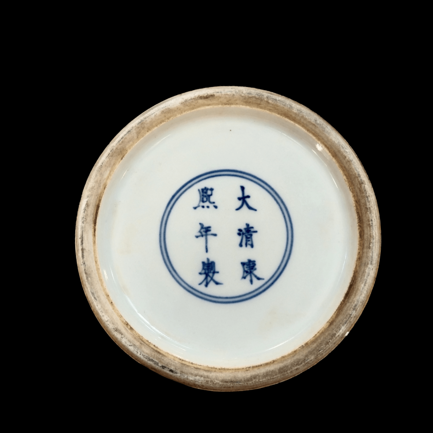 Jarrón chino Qing Kangxi 'Señor y sirvientes'