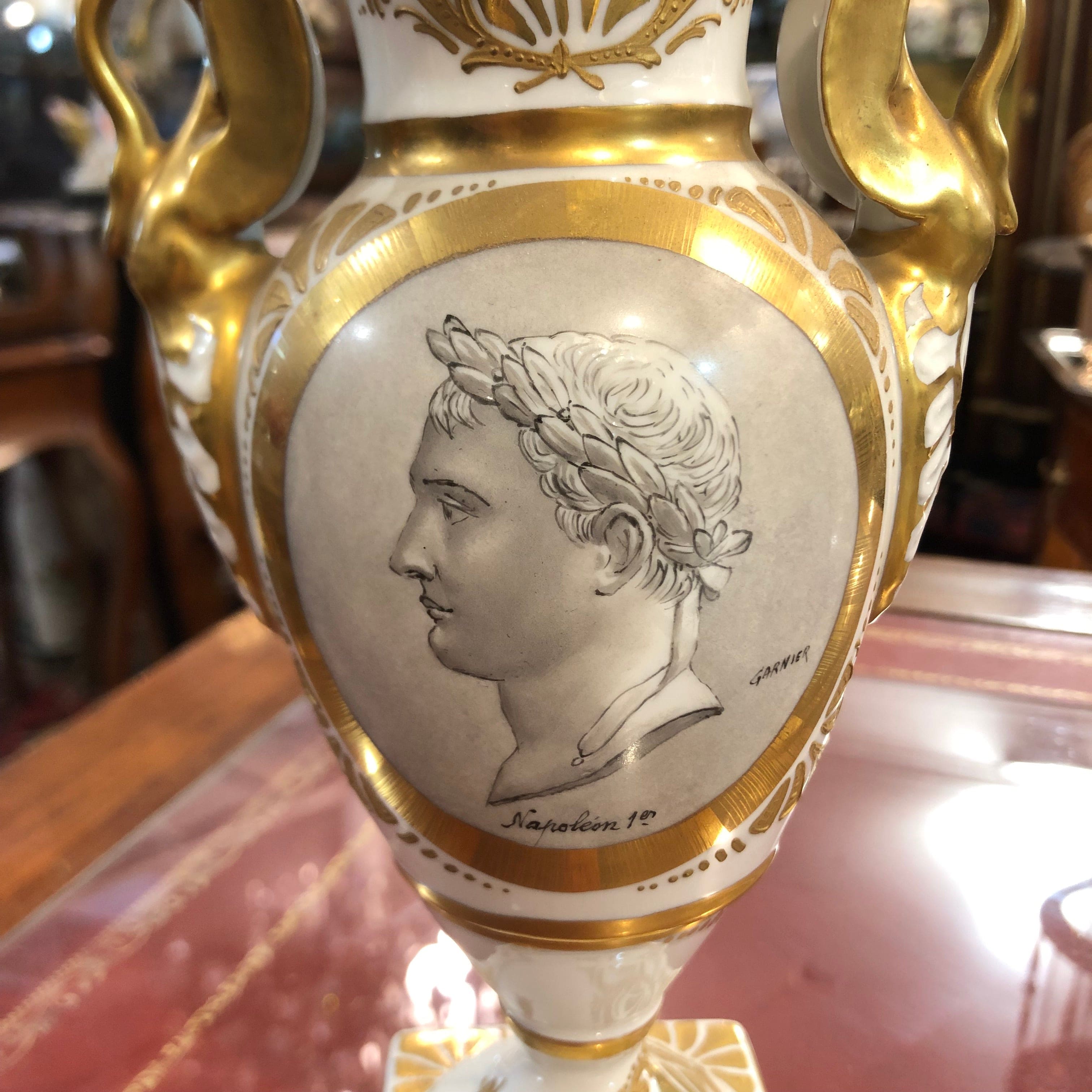 Jarrón francés porcelana Napoleón I Garnier s.XIX