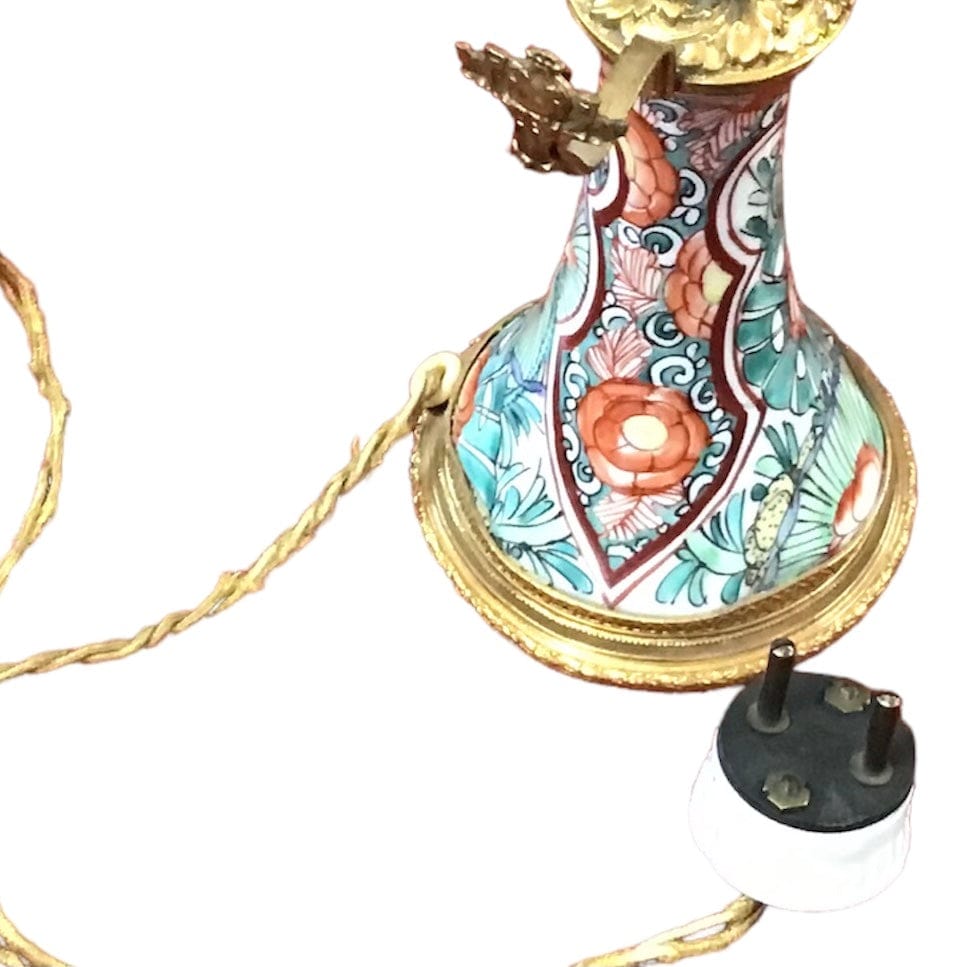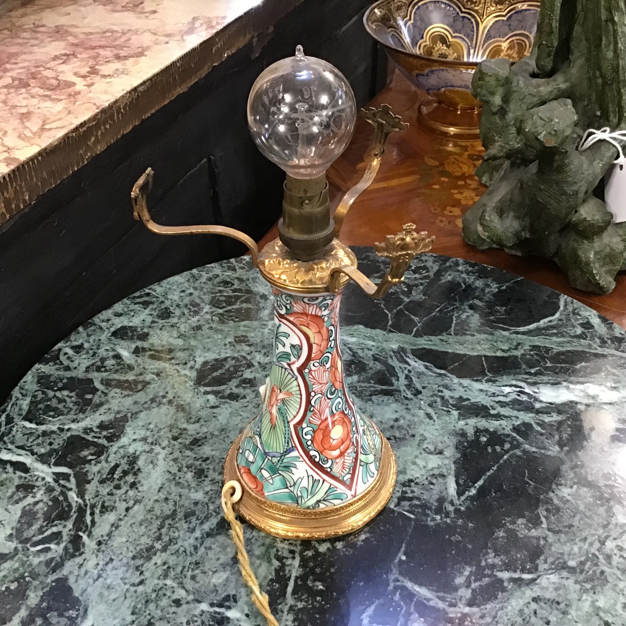 Lámpara china con base de porcelana Imari y detalles en bronce.
