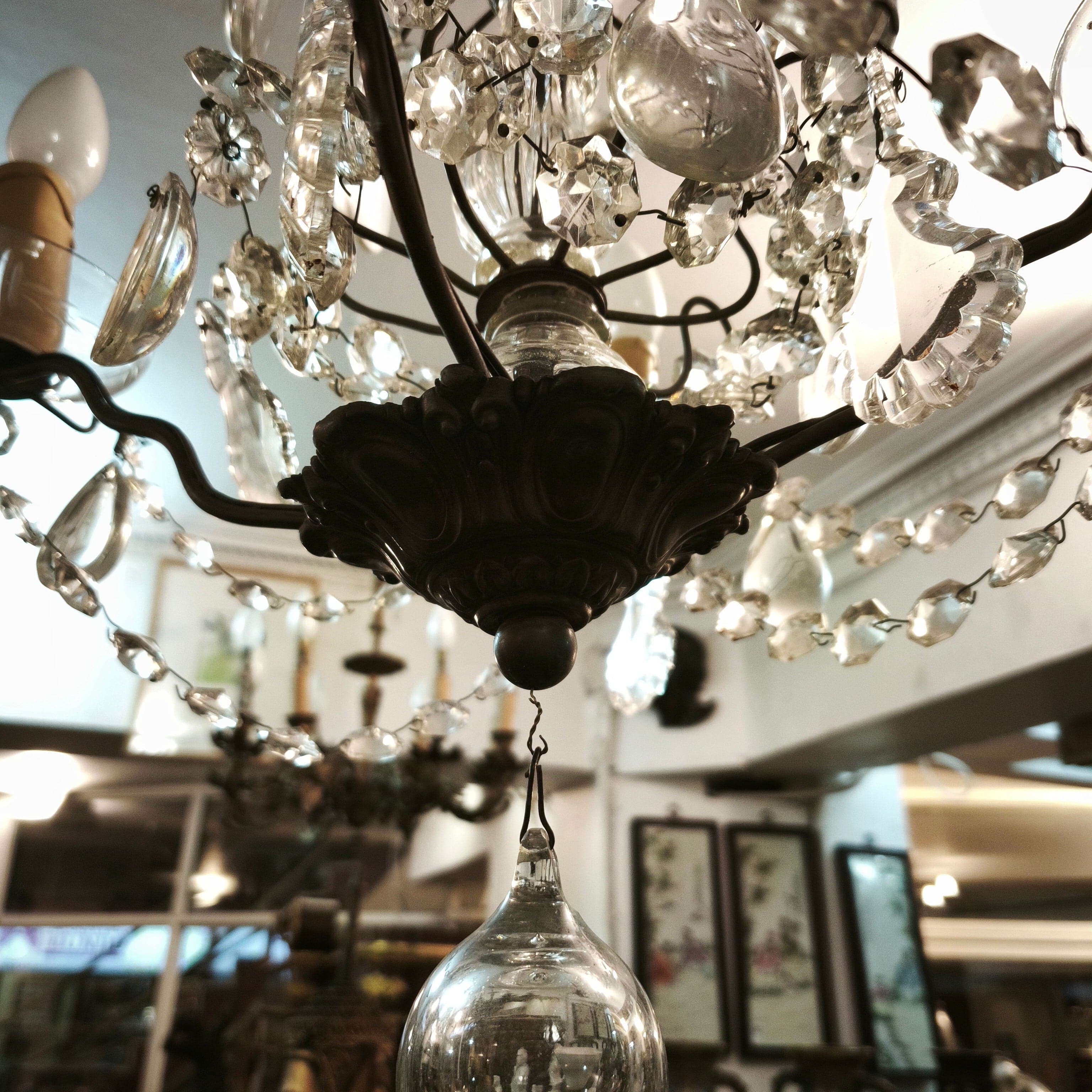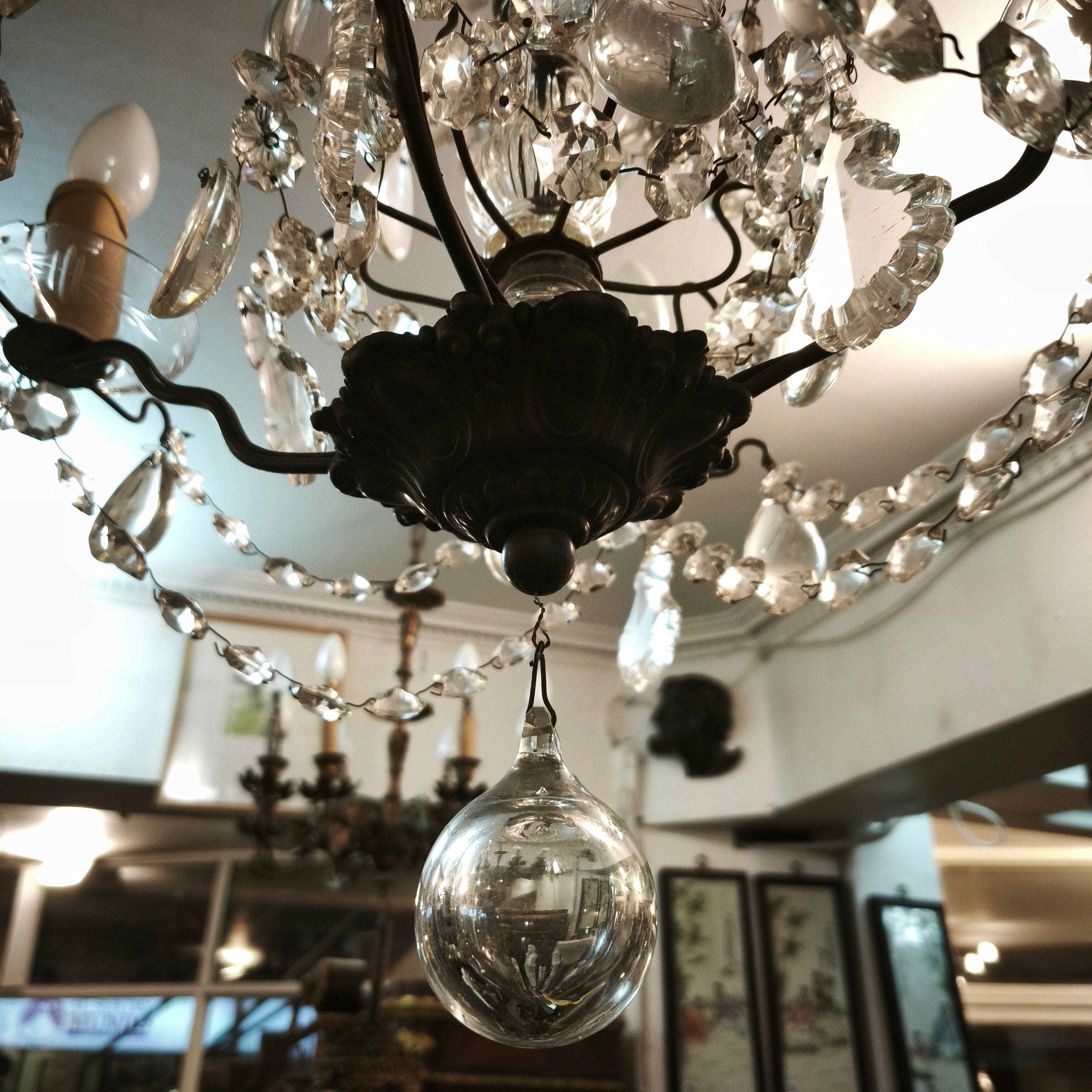 Lámpara de lágrimas de bronce cristal cuatro luces y esfera cristal