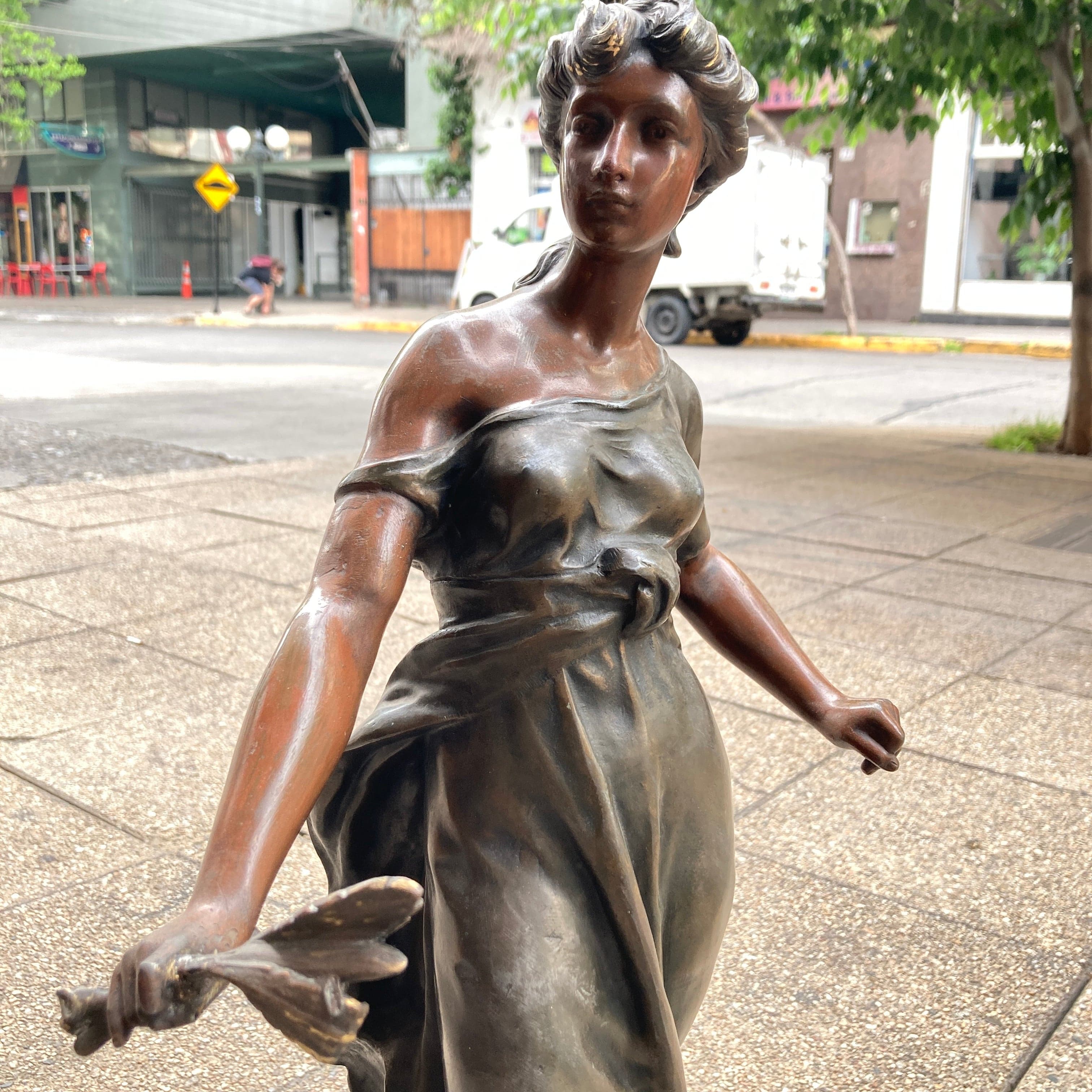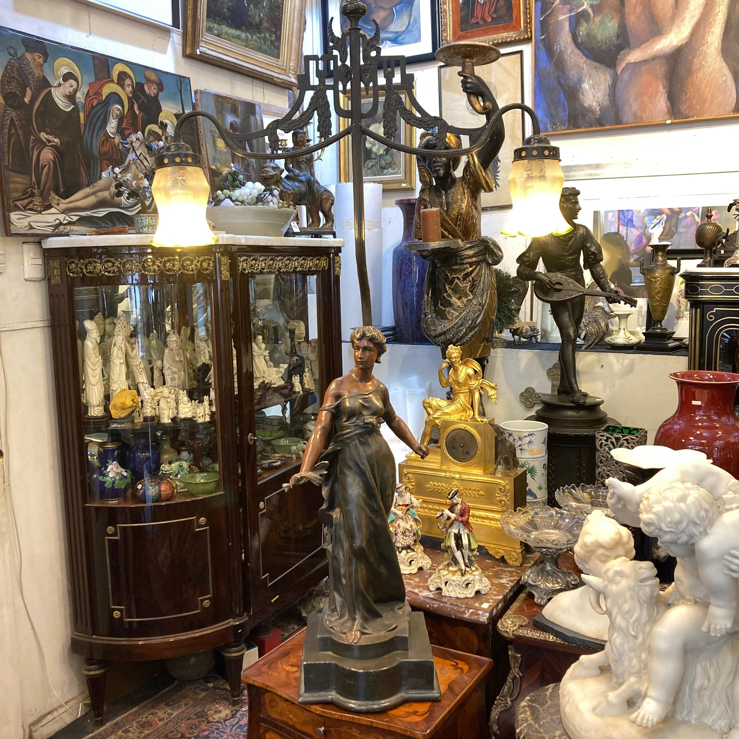 Lámpara estatuilla de peltre mujer