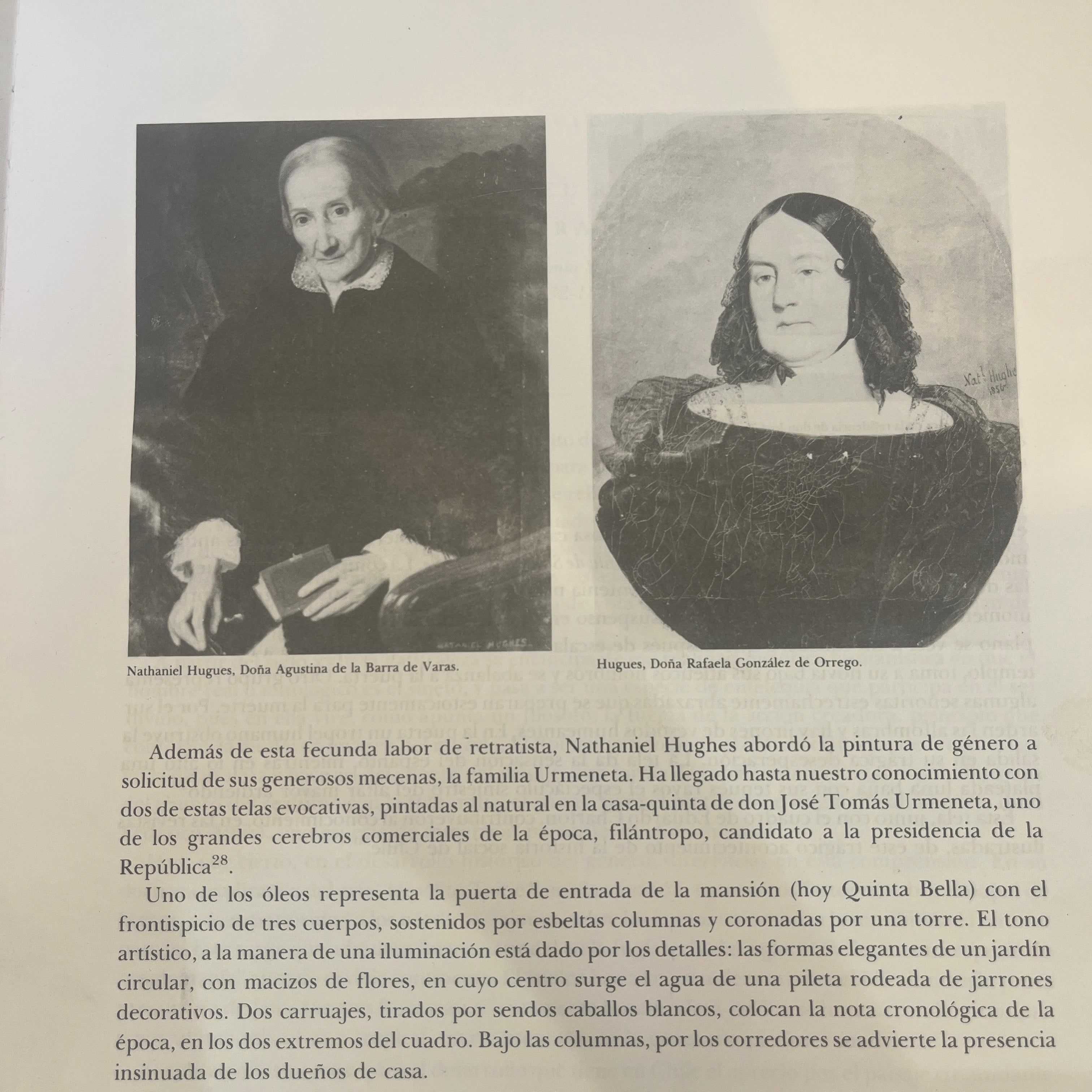 Retrato de Doña Rafaela González de Orrego, obra del artista inglés Nathaniel Hughes en óleo sobre tela. La pintura se presenta en un marco de madera y yeso en dorado mate. El retrato es parte además de los registros de grandes retratistas en el libro "Estudios sobre la Historia del Arte en Chile Republicano" de Eugenio Pereira Salas.