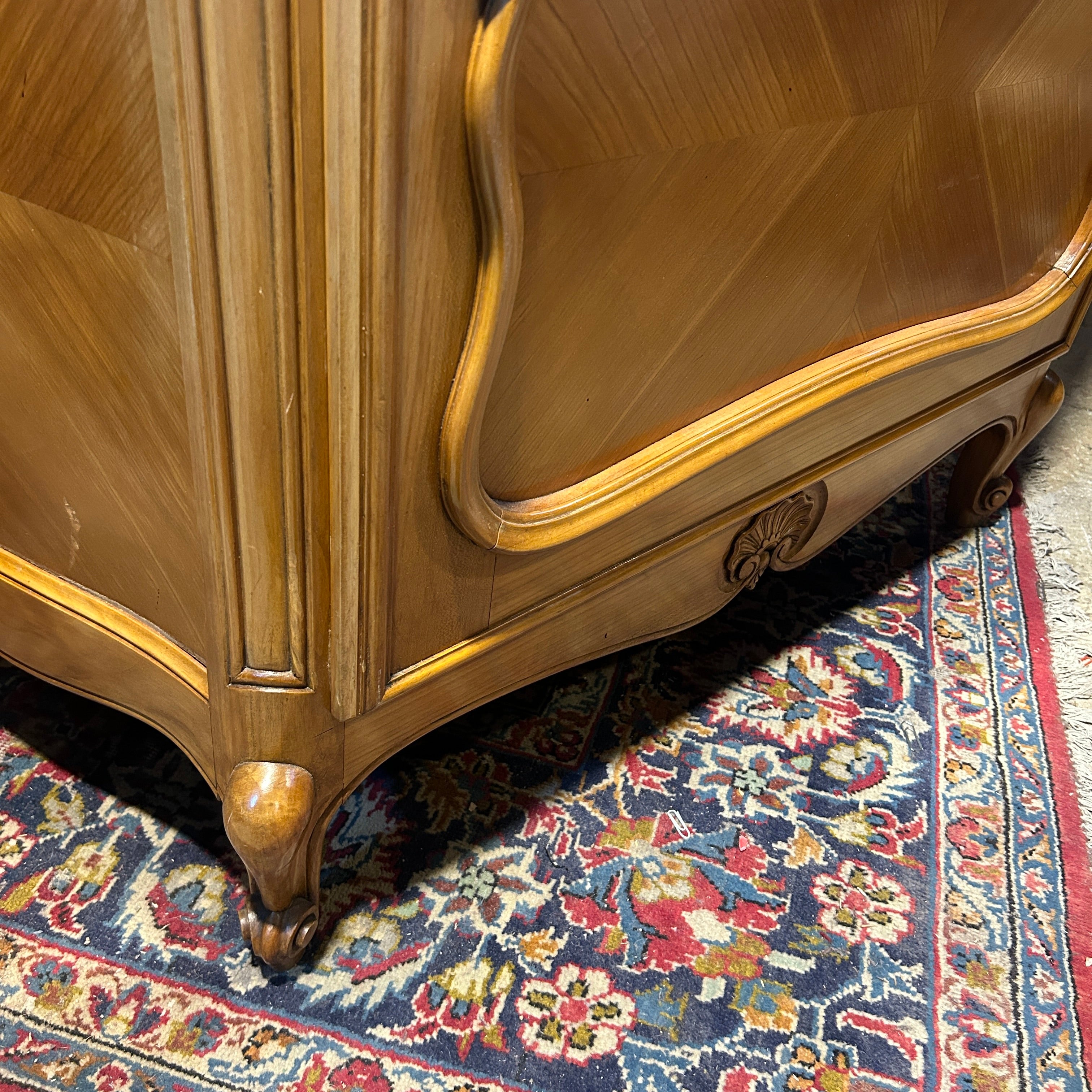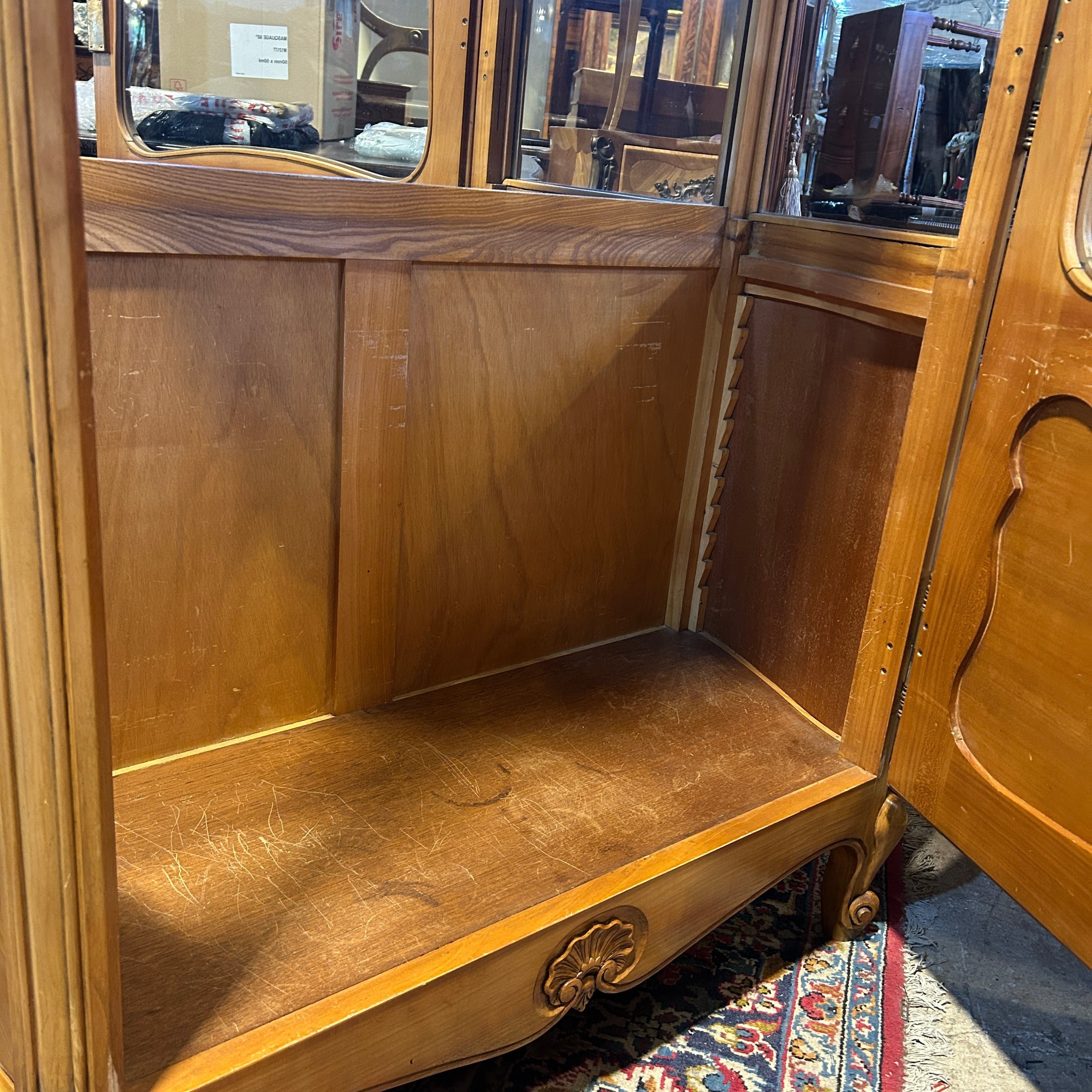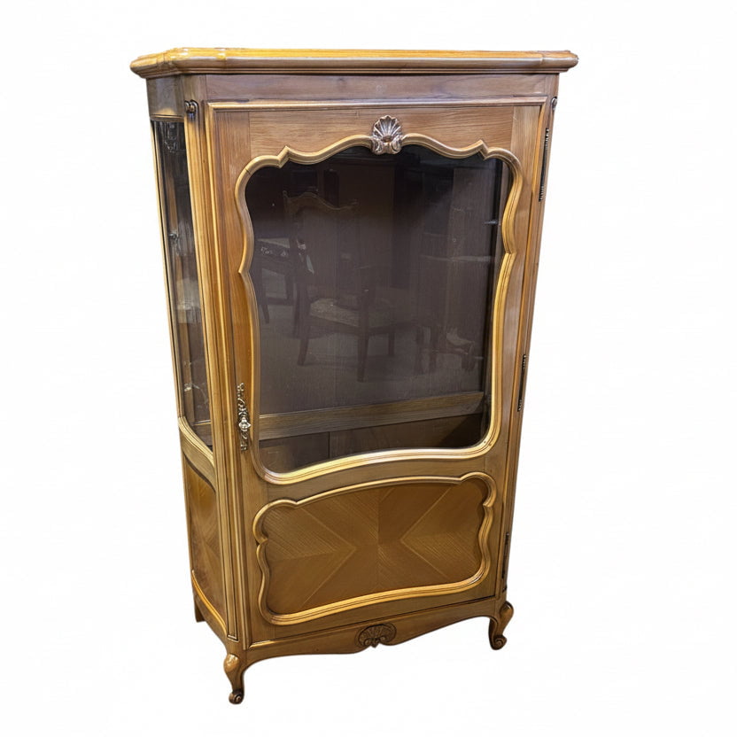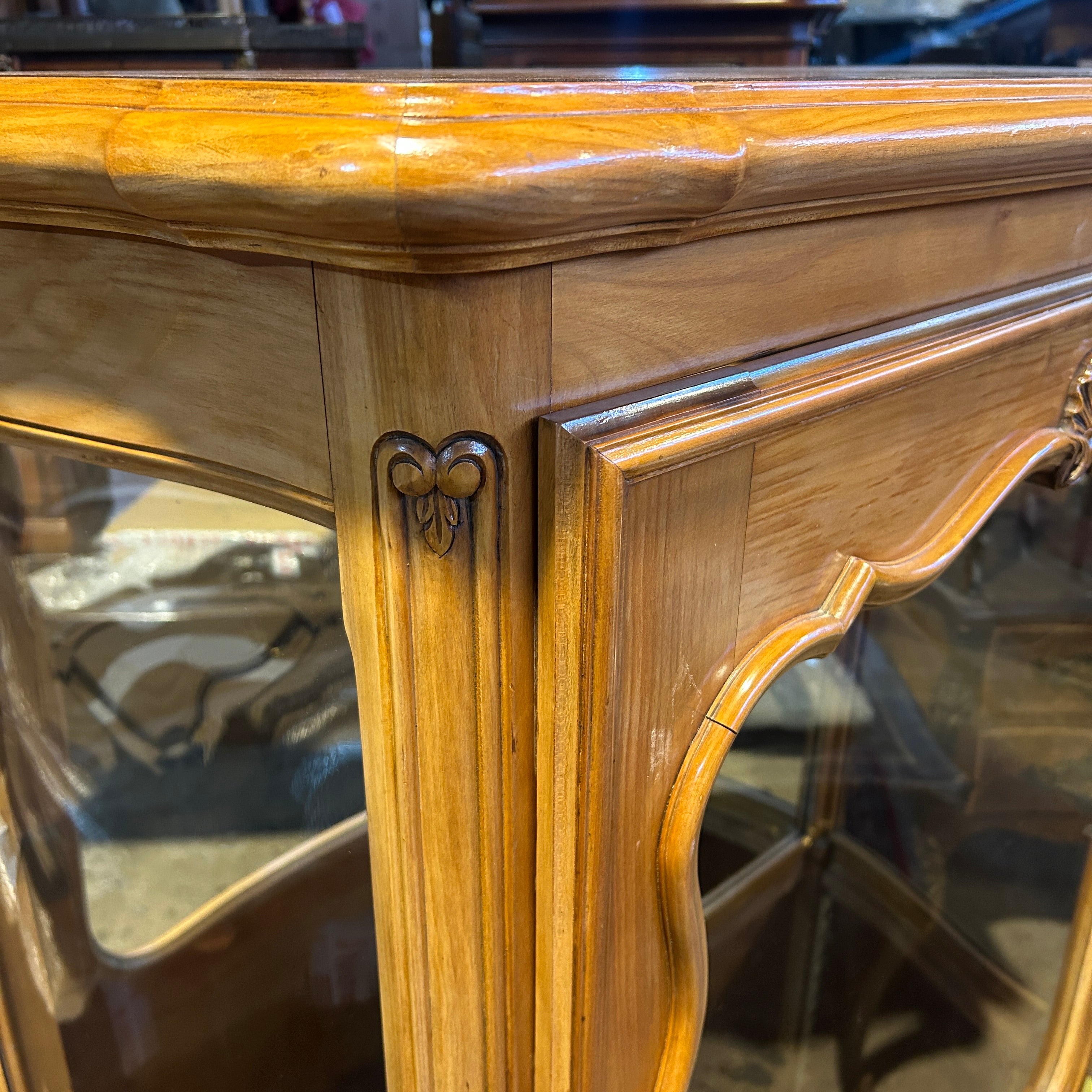 Vitrina francesa contemporánea Luis XV bombé madera tallada y espejo interior