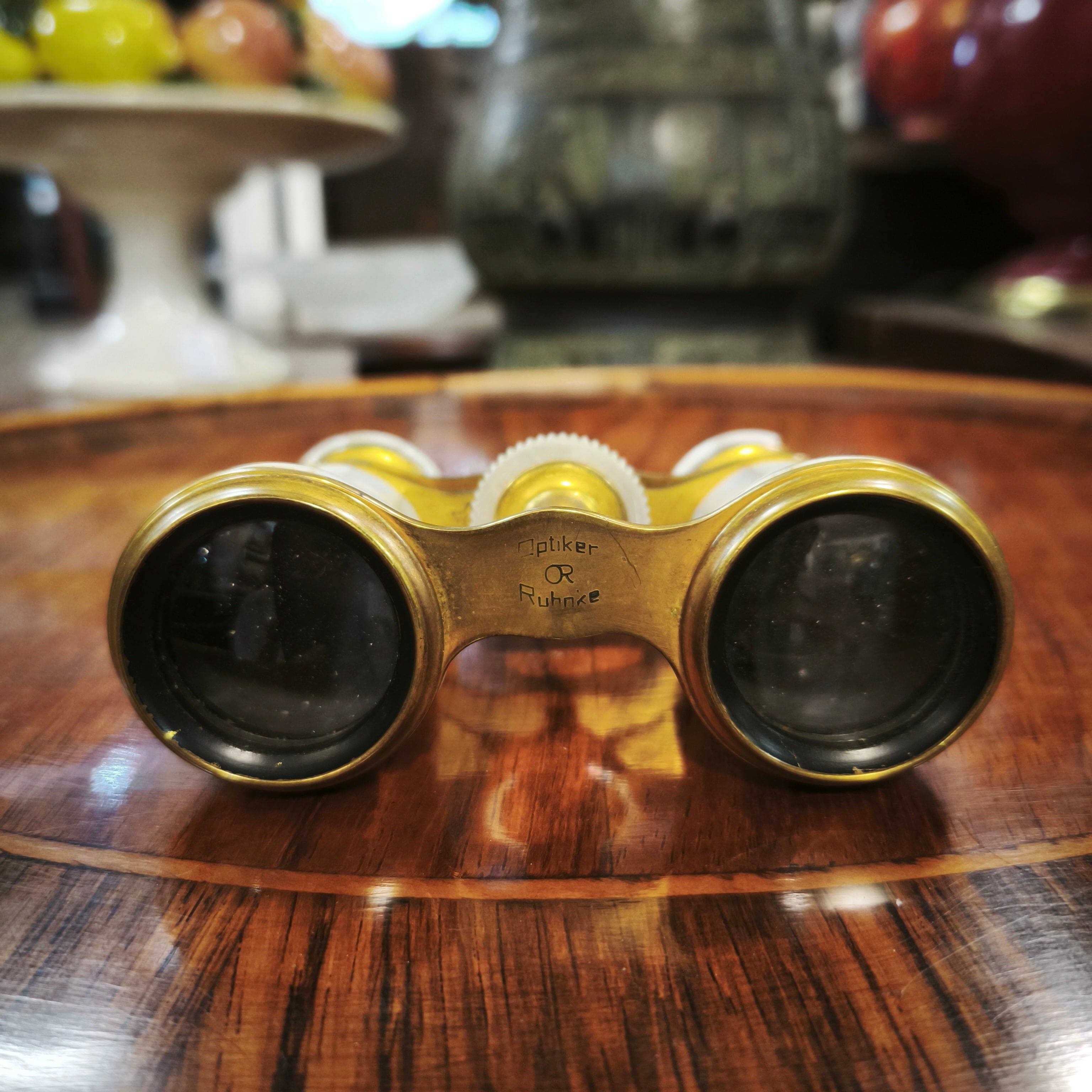 Binoculares alemanes Optiker Ruhnke de nácar blanco y metal dorado
