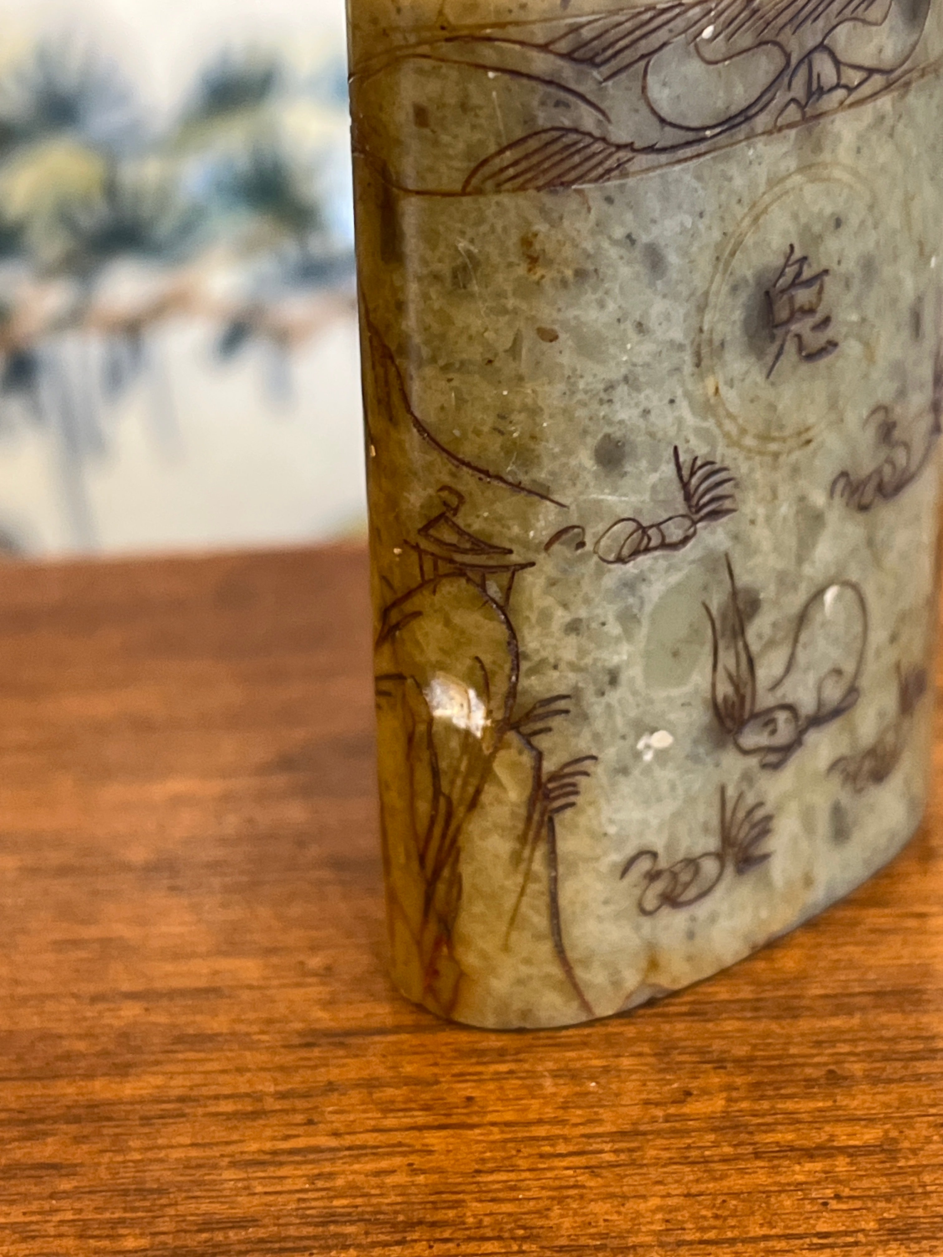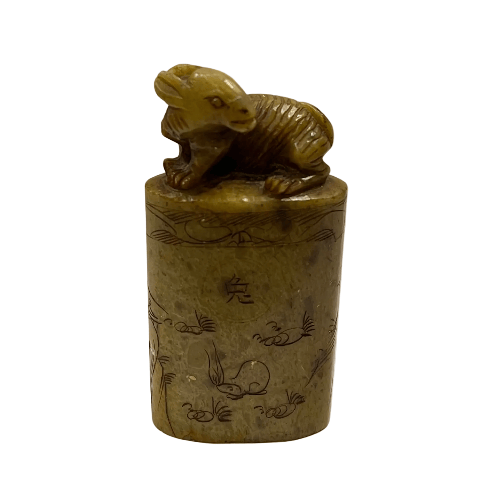 Sello chino en piedra dura figura de conejo y tallados
